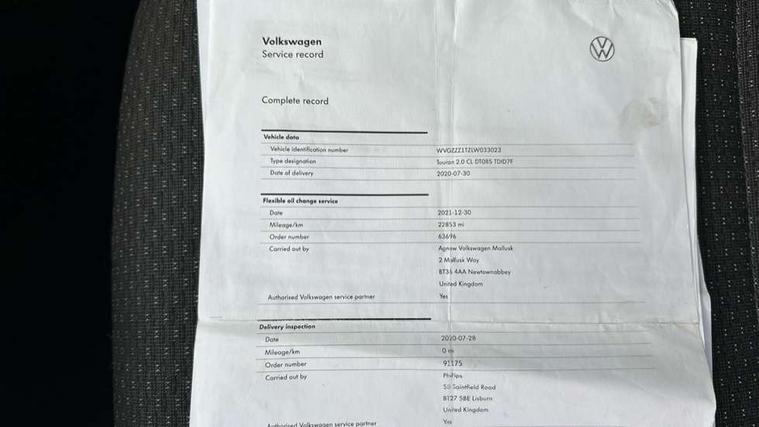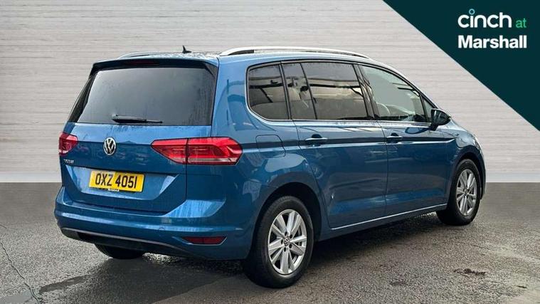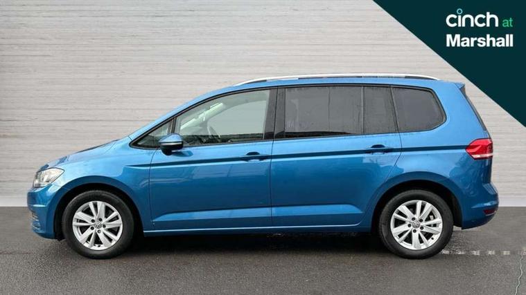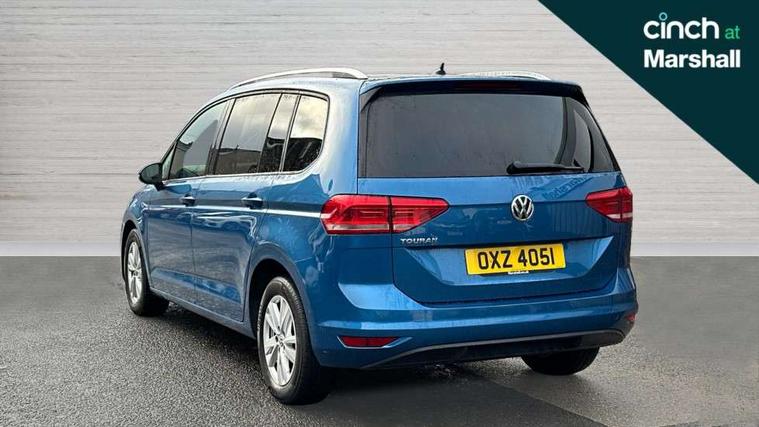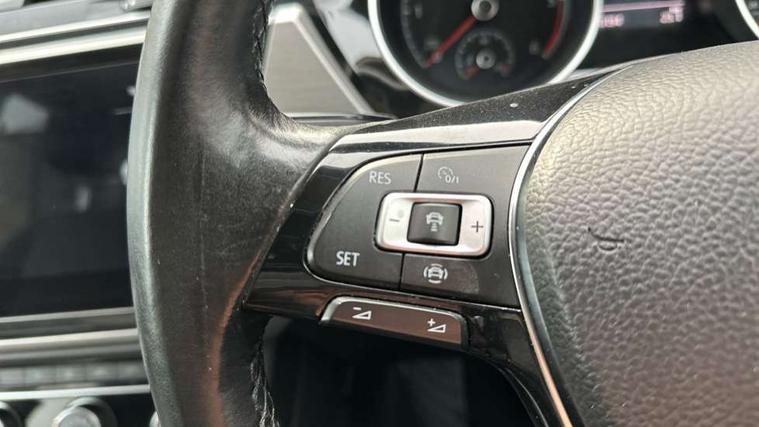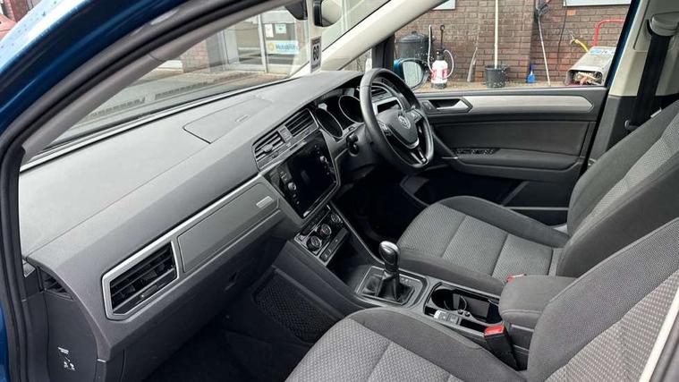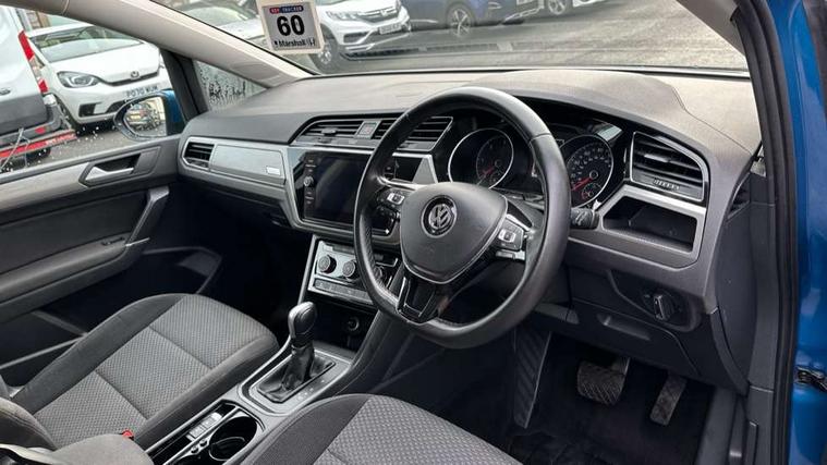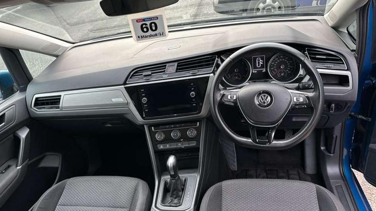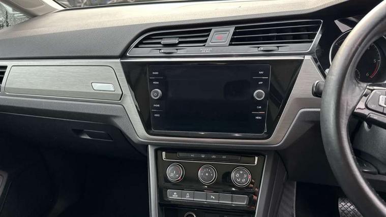 Adaptive cruise control, Audible lights on warning, Bluetooth telephone connectivity, Car information display, Driver electronic voice amplification function, Electronic odometer, External temperature gauge, Flat tyre indicator, Misfuelling protection device, Mobile pairing with SMS function, Multi function display, Rev counter with fuel gauge, Speed limiter, Speed sensitive power steering, Stop/start system, Think blue trainer driver tips and journey analysis, Trip and service interval display, We Connect Go Dongle, Diesel particulate filter, XDS electronic differential lock, 4x20 watt output, Audio Connectivity System, DAB Digital radio, MP3/WMA compatability, SD card slot, Title and cover art display, USB connection, Aerial integrated into side window, Auto dimming rear view mirror/rain sensor, Automatic coming/leaving home lighting function, Black front air intake and radiator grilles, Body colour bumpers, Body colour door handles, Body colour door mirrors with integral indicators, Chrome trimmed radiator grille louvre inserts, Dusk sensor + auto driving lights, Electric heated + adjustable door mirrors, Electric, glass sliding/tilting panoramic sunroof including integrated roller blind, Front and rear electric windows, Fully galvanised body, Gloss black finish B pillar, Green tinted heat insulating glass, High level third brake light, Rear tinted glass from B-pillar backwards approx 65% tinted, Rear wash/wipe with intermittent wipe setting, Silver roof rails, Tailgate wiper- reverse gear activation, Twin chrome exhaust tailpipes, Volkswagen roundel, Windscreen wipers intermittent wipe, 12V power point for Row 2, 12V socket in luggage compartment, 2 individual fold flat 3rd row seats, 2 three point seatbelts in 3rd row, 2nd row centre armrest, 2nd row centre seat converts into table, 3 single slide/fold/removable 2nd row seats, 3 spoke steering wheel, 3x3 point seatbelts on 2nd row with height adjust on outer seats, 4 boot load lashing points, 4 way adjustable front head restraints, 5 headrests, Driver and front passenger under seat drawer, Dust/pollen filters, Foldable front passenger seat backrest, Front and rear reading lights, Front centre armrest with storage compartment, Front cupholders x 2, Front seat storage pockets, Front seatback folding tables, Height adjustable driver's seat, Height/reach adjust steering wheel, Illuminated glovebox, Illuminated vanity mirrors, Instrument lighting white adjustable panel illumination with red night time illumination, Interior light with delay, Isofix on 2nd row outer seats, Isofix on 3rd row seats, Large storage compartment in roof console, Leatherette on rear of front seats, Low tunnel 2nd row seat, Media box in dashboard on passenger side, Multi storage in passenger/luggage areas, Multi-function centre console with storage facilities, Retractable luggage cover, Split folding rear seat backrests, Storage bins on all doors, Family Pack - Touran, 3 point height adjustable front seatbelts, Auto hold function, Automatic post collision braking system, Door open warning reflectors, Driver/Front Passenger airbags, Drivers knee airbag, EDL + ASR, Electronic parking brake, Energy recovery system, ESC with ABS, First aid kit, Front and rear (row 2) curtain airbags, Front assist including city emergency braking, Front seat side impact airbags, Front/rear disc brakes, HBA (Hydraulic Brake Assist), Hill hold control, Loose wheel warning function, Passenger airbag deactivation system, Pre crash preventive occupant protection, Seatbelt warning lamp and buzzer, Traction control, Two tone horn, Warning triangle, Alarm with remote central locking and interior protection, Electronic engine immobiliser, Brushed design decorative inserts,
