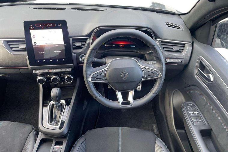 10" TFT Driver information display, Adaptive cruise control with Stop and Go, Blind spot warning, Bluetooth system, Driver drowsiness alert system, EASY LINK 9.3" portrait touchscreen with 3D navigation, hybrid voice recoginition and applications store, Eco mode, EV button to activate pure mode, Fixed speed limiter 180km/h, Front and rear parking sensors, Gear change indicator, Lane departure warning, Lane keep assist, Multi-sense - 3 driving modes and 8 ambient lighting, Rear cross traffic alert, Rear view camera, Renault automatic emergency assist, Start/stop system, Traffic sign recognition with over speed prevention, Trip computer, Variable assistance electric power steering, Wireless phone charger, Wireless Smartphone Integration includes Apple CarPlay and Android auto, Arkamys classic sound system with 6 speakers, DAB radio, USB port, 3rd brake light, Auto dimming rear view mirror, Automatic full LED headlights, Automatic high / low beam, Automatic windscreen wipers with rain sensor, Black door mirrors, Black side door protection with chrome insert, Body colour rear boot spoiler, Body coloured bumpers, C-shaped LED front signature lighting (333 high), Chrome decopart on wing (fender molding), Chrome window lower lining, Double exhaust glossy black tailpipes elements, Electrically adjustable and foldable door mirrors with defrosting, temperature sensor and automatically fold when vehicle closure, Esprit alpine exterior styling, Esprit alpine F1 blade bumper, Exterior chrome enhancement, Extra tinted rear windows and tailgate, Frameless rear view mirror, Front and rear electric windows, Front driver window with one touch facility and anti-pinch function, Front grille with chrome on upper part, Grey front and rear skid plates, Heated rear window, Rear windscreen wiper, Shiny black shark fin antenna, Variable front intermittent wipers, 1/3-2/3 foldable fixed bench, 3 seat bench in 2nd row, Automatic climate control with combined filter, humidity sensor and AQS, Black interior roof lining, Central console with storage, Esprit alpine interior styling, Esprit alpine TEP artificial leather/suede upholstery, Foldable armrest with 2 cup holder in rear passenger seats, Front and rear head restraints, Heated front seats, Heated steering wheel, Height and reach adjustable steering wheel, ISOFIX child seat fixing points on rear outermost seats, LED front and rear roof lights, Power adjustable driver and passenger seat with lumbar adjustable drivers seat, Rear air vents, Single front passenger seat, Sun visor with enlighted vanity mirror, Synthetic leather steering wheel, Variable boot floor, 3x3 point rear seat belts, Active emergency braking system, Anti-lock braking system (ABS), B Brake Mode - One pedal driving with increased regenerative braking, Distance warning alert, Driver airbag, Driver and passenger front and side airbag deactivation, Driver and passenger side airbags, Driver height adjustable seat belt, Electronic brake distribution, Electronic parking brake with auto hold, ESC (Electronic Stability Control), Front and rear no seatbelt warning sound, Front curtain airbags, Front head airbags, Front seatbelt pretensioner, Hill start assist, Passenger airbag, Sound for pedestrian (1 to 30 kph), Tyre pressure warning light, Anti drill door locks and locking fuel cap, Central door locking, Deadlocking system, Hands free keycard with Keyless access and start, RAID (Renault Anti-Intruder Device) automatic door locking, Rear side wing door and window child locking function (front driver door control panel), Thatcham alarm, 19" Esprit alpine(elixir) diamond cut alloy wheels,