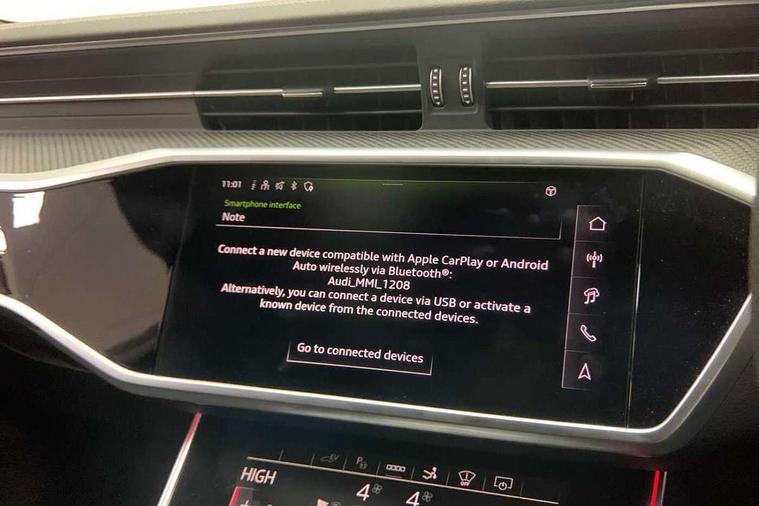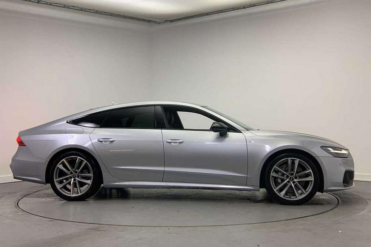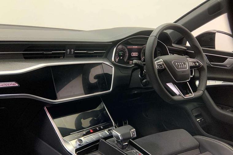Audi connect safety and service (e-call), Audi connect with Amazon Alexa Integration, Audi drive select, Audi parking system plus - acoustic and visual park assist system for front and rear, Audi smartphone interface includes wireless Apple carplay/Android Auto, Audi virtual cockpit, Automatic start/stop system with coasting functionality, Bluetooth interface, Camera based traffic sign recognition, Colour driver's information system display, Lane departure warning system, MMI nav plus with MMI touch + 10.1" and 8.6" HD haptic touch screen/3D city models/country information/online map/route info and personal route assist, Operating buttons in black, glass look with haptic feedback, Progressive steering, Rear view camera, Service indicator, Voice control system, 3 pin 10 amp domestic charging cable, 52 litre fuel tank, 7.4 kW onboard charger, Compact e-tron charging system, Hybrid propulsion system, Industrial connector CEE 32A, 230V, long and straight for the e-tron charging system, Mode 3 charging cable for public charging (AC), Quattro on demand, Sports suspension, Type 2 socket for AC charging, Audi music interface, Audi sound system with 6 channel amplifier, 180 watt amplifying capacity and 10 loudspeakers including subwoofer, Auxiliary input socket, DAB digital radio module, Audi beam, Audi rings, front and rear as well as A7 at the rear in black, Black rear diffuser with chrome inlays, Electrically adjustable heated and folding + automatically dimming exterior mirrors with memory function, Frameless auto dimming interior rear view mirror, Front and rear electric windows, Gloss black highlights on the exterior area of the Audi Single frame, Gloss black highlights on the front and rear bumpers, Gloss black highlights on the radiator grille, Gloss black highlights on the side windows trim strips, HD Matrix LED headlights, Heat insulating darkened glass in side and rear windows, High gloss black air inlets, LED 3rd brake light, LED rear lights with dynamic indicators, Omission of output/technology badging, Privacy glass with side and rear windows, Rain and light sensors, Rear side wing doors, Rear wiper, Retractable rear boot spoiler, Signature LED daytime running lights, Towbar preparation, Windscreen with heat-insulating glass, 4 zone deluxe automatic climate control, 4-way electric lumbar support, 40/20/40 split folding 3 seater rear seat bench with rear centre armrest, Audi phone box light, Black cloth headlining, Electrically adjustable front seats - driver seat with memory, Front and rear headrests, Front centre armrest, Heated front seats, Height/reach adjust steering wheel, Illuminated door sill trims with S logo, Illuminated sun visors with vanity mirrors, ISOFIX child seat mounting and top tether in front and outer rear seats with front passenger airbag deactivation, Leather gear knob, Leatherette upper instrument panel and door shoulders, Luggage compartment lid, electrically opening and closing, S line front and rear floor mats with contrast stitching, Single front passenger seat, Stainless steel pedals and foot rest, Tool kit, LED interior ambient lighting pack - A7, Non smoking pack - A7, 3 point seatbelts on all seats, Audi pre-sense front, Driver and passenger airbags, Electromechanical parking brake, Electronic stabilisation control including ABS, ASR and EDL, Extended pedestrian protection measures, Hill hold assist, Manual child lock in rear doors, Seatbelt monitoring, Tyre pressure warning light, Warning triangle and first aid kit, Anti theft alarm with tow away protection, Anti-theft wheel bolts and wheel loosening detection, Immobiliser, Keyless Go, Preparation for tracking system, Remote central locking, Carbon twill inlays, 20" Audi sport cast aluminium wheels in 5 double arm design with high sheen matt look, Tyre repair kit,