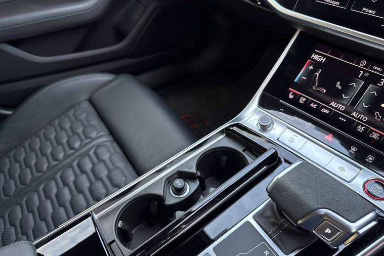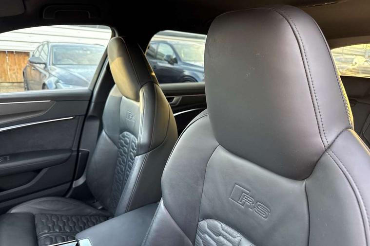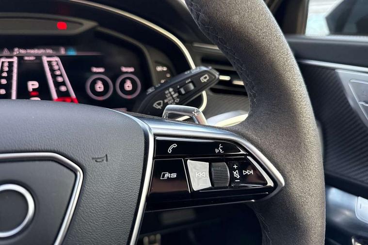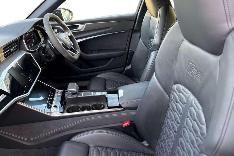 Audi connect safety and service (e-call), Audi connect with Amazon Alexa Integration, Audi drive select, Audi smartphone interface includes wireless Apple carplay/Android Auto, Audi virtual cockpit plus with RS specific design and 12.3" display with additional graphic display options, Automatic start/stop system, Bluetooth interface, Dynamic all wheel steering, Lane departure warning system, MMI navigation with MMI touch + twin touch screens 10.1" and 8.6" with haptic and acoustic feedback, Operating buttons in black, glass look with haptic feedback including extended aluminium look, Power operated tailgate, Rear view camera, Service interval indicator, Voice control system, 73 litre fuel tank, Quattro sports differential, Audi music interface, Audi sound system, DAB Digital radio, 3rd brake light, Adaptive windscreen wipers with integrated washer jets, Black mirror caps, Body colour rear roof spoiler, Electric front/rear windows, Electrically adjustable, heated and folding door mirrors with integrated LED indicators and kerb view function for passenger side, Frameless auto dimming interior rear view mirror, HD Matrix LED headlights with Audi laser light with dynamic light design and dynamic turn signal, Headlight washers, Heat insulating darkened glass in side and rear windows, Illuminated door sill trims with RS lettering, LED daytime running lights, LED rear combination lamps with dynamic light design and dynamic turn signal, Privacy glass with rear/side windows and acoustic glazing side windows, Radiator grille in honeycomb structure, large front air inlets and rear diffuser in gloss black, Rain and light sensors, Rear side wing doors, Rear wiper, RS front bumper with air inlets on both side, Wheel arch extensions, 2 seat bench in 2nd row, 4 way electric lumbar support for driver and front passenger, 4 zone deluxe automatic climate control, Aluminiium gear shift paddles, Audi Sport logo projection (Audi Beam) in front and rear, Black cloth headlining, Electric steering wheel adjustment, Electrically adjustable front seats with driver memory, Front and rear headrests, Front centre armrest, Front seat ventilation, Front/rear floor mats, Heated front seats, ISOFIX child seat mounting and Top Tether with front passenger airbag deactivation, Leatherette on upper instrument panel and door shoulders, RS Front sports seats, Single passenger seat, Stainless steel pedals and foot rest, Valcona leather upholstery with perforated honeycomb and RS lettering, Air quality pack - RS6, Extended LED interior multi coloured lighting pack - RS6, Gloss carbon black styling pack - RS6, RS Grey design pack - RS6, Storage pack - RS6, 2 x 3-point rear seatbelts, Airbags - Front side, front and rear including head, Audi pre-sense front, Direct tyre pressure monitoring system, EBD - Electronic brakeforce distribution, Electromechanical parking brake, Electronic Stability Control (ESC) including ABS, ASR and EDL, Extended pedestrian protection measures, Manual child lock in rear doors, Warning triangle and first aid kit, Anti theft alarm with tow away protection, Anti-theft wheel bolts and wheel loosening detection, Immobiliser, Keyless Go, Remote central locking, Carbon twill inserts, 22" Gloss black turned finish alloy wheels, Tyre repair kit,
