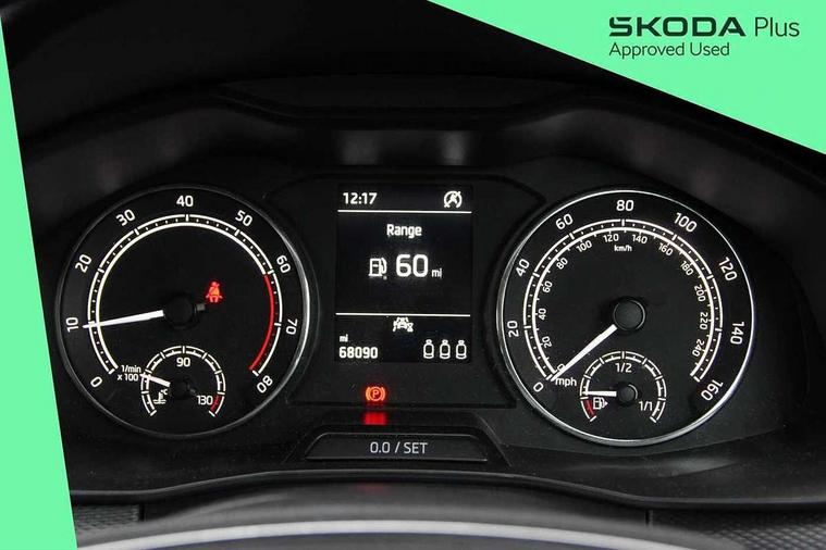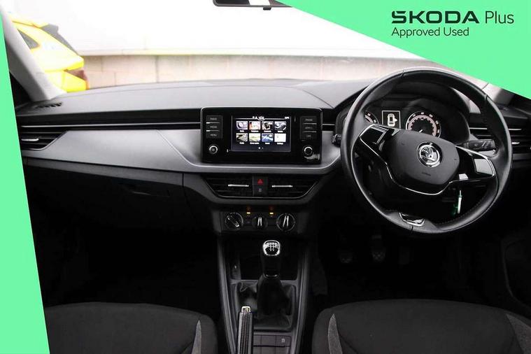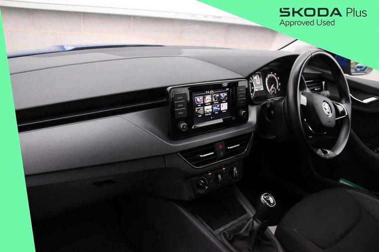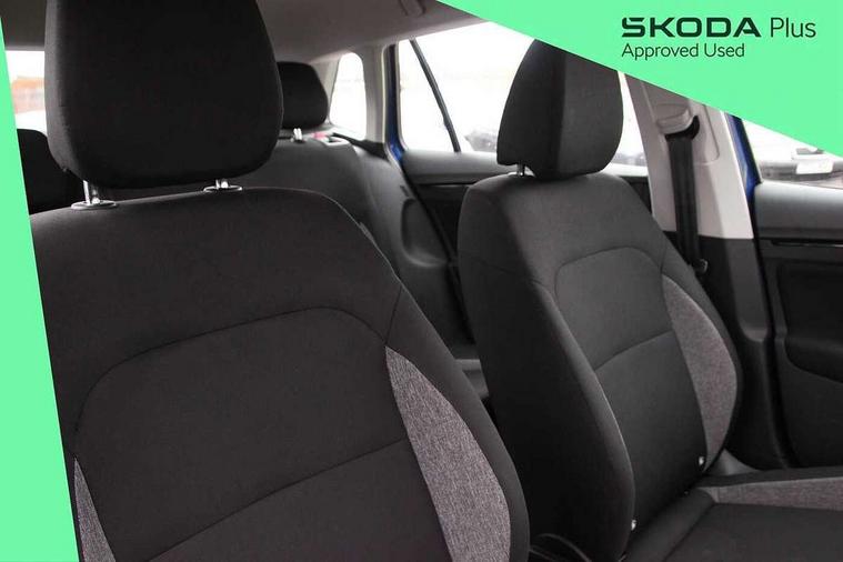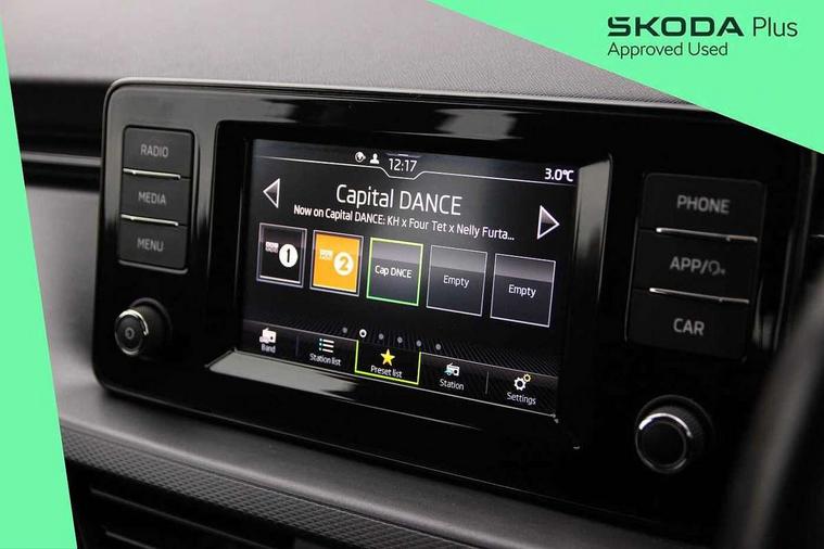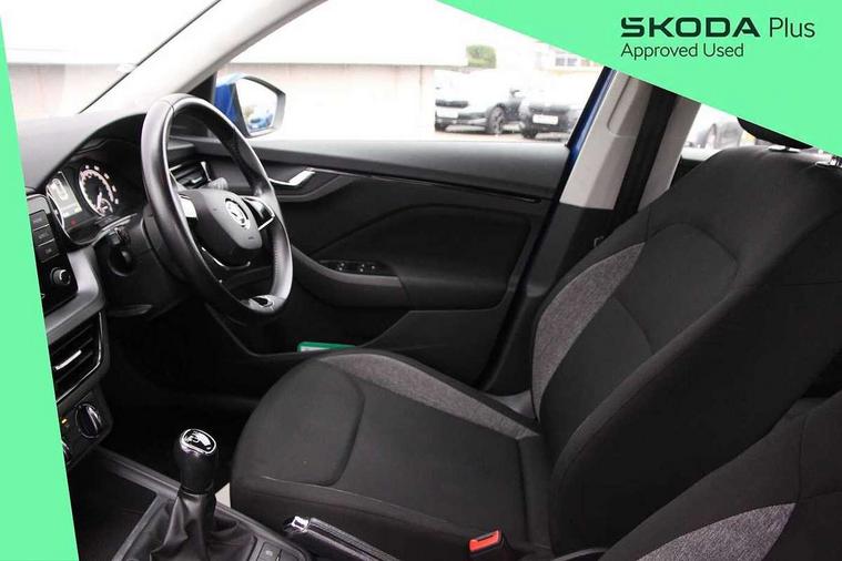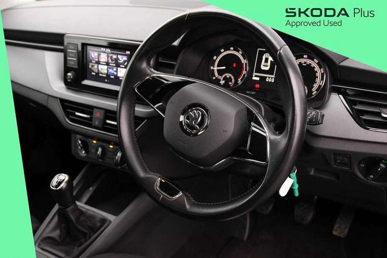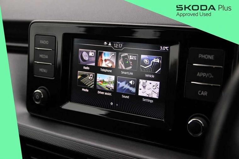 Bluetooth system, E-call, Front assist system, Lane assist, PAS, Service indicator, Speed limiter, Trip computer, 2 USB - C ports with 1x adaptor cable, 4 speakers, Auxiliary input socket, DAB Digital radio, Basic LED headlights with LED daytime running lights, Black roof rails, Body colour door mirrors and handles, Chrome grille surround, Electrically adjustable and heated door mirrors, Front and rear electric windows, Headlight range control, Heated rear window, LED rear lights - low functionality, Rear fog lights, Rear wiper, 12V Accessory socket in centre console, 2 spoke leather steering wheel and gear shift, Chrome inner door handles, Cloth upholstery, Front head restraints, Glove compartment, Height adjustable driver seat, Ice scraper, Isofix child seat fittings on outer rear seats, ISOFIX on front passenger seat, Manual air conditioning + Pollen filter, Rake/reach adjustable steering wheel, Textile floor mats, Third rear headrest, Top tether for front passenger seat, 3x3 point rear seatbelts, Airbags - driver and front passenger, ESP, Front passenger airbag deactivation switch, Front side airbags with curtain airbags, Hill hold control, Manual parking brake, One tone horn, Rear disc brakes, Seatbelt reminder for driver an co-driver, Traction control, Tyre pressure monitor, Alarm with interior monitoring, back up horn and tilt sensor with safe function and towing protection, Anti-theft wheel bolts, Immobiliser, Remote central locking with SAFE system, Grained black decorative insert with glossy black hot stamping,