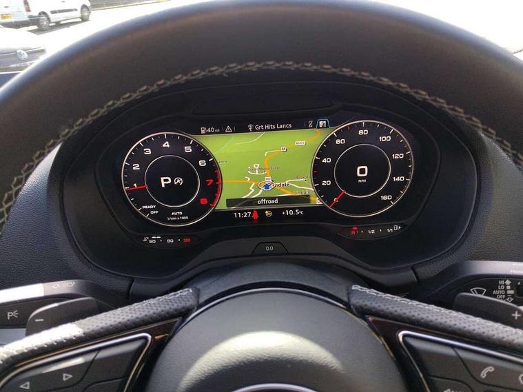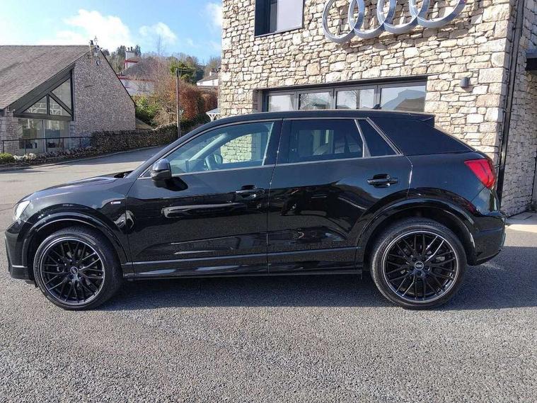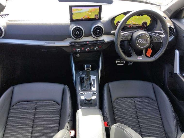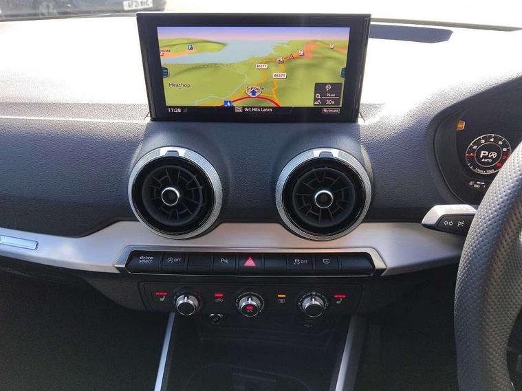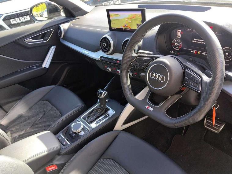 3D map display, Audi connect navigation and infotainment includes innovative services, Audi connect remote and control connects your vehicle to your smartphone, Audi drive select: S tronic - power steering assistance + engine + gearshift (modes: comfort, auto, dynamic, efficiency, individual), Audi smartphone interface - Apple carplay/Android Auto, USB connect, 2xSDXC card readers, voice control for navi, telephone, music and 3rd party apps, Audi virtual cockpit, Automatic start/stop system with recuperation, Bluetooth interface includes bluetooth audio streaming, Cruise control, Distraction and Fatigue warning, E-call, Jukebox hard drive memory for music (10GB), Lane departure warning, MMI navigation plus with 8.8" touchscreen, Natural voice recognition, Power operated tailgate, Progressive steering, Rear parking sensors, Sport suspension, 6 passive loudspeakers, DAB Digital radio, USB type C port, Audi beam, Auto dimming rear view mirror, Black window trims, Bumper in full body colour paint finish, Electrically adjustable, folding, auto dimming and heated door mirrors with integrated LED side indicators, Front windscreen with grey tinted sunband, LED daytime running lights, LED headlights with dipped beam, high beam, position lights, indicators, LED rear lights, LED third brake light, Privacy glass - dark tinted rear and rear side windows from B-pillar backwards, Rear side wing doors, Rear wiper, Variable front intermittent wipers, Wheel arch trims in manhattan grey, 12v socket in front, 3 seat bench in 2nd row, 3 spoke flat bottomed multi-function leather sport steering wheel with gear shift paddles, 4-way electric lumbar support for front seats including manual seat height adjustment for both front seats, 60/40 split folding rear seat bench, Black carpets, Black cloth headlining, Front and rear head restraints, Front centre armrest, Front sport seats, Front/rear floor mats, Height/reach adjust steering wheel, Illuminated door sill trims with S logo, ISOFIX child seat mounting in front passenger and rear outer seats, Manual air conditioning, Single front passenger seat, Stainless steel pedals, Tool kit, Black styling pack - Q2, 3x3 point rear seatbelts, 6 airbags - Front, curtain and front side airbags, Electromechanical parking brake, Electronic stabilisation control including ABS, ASR and EDL, Front passenger airbag deactivation, Hill hold assist, Pre-sense front with pedestrian recognition, Seatbelt monitoring, Tyre pressure warning light with visual and acoustic warning, Warning triangle and first aid kit, Anti theft alarm, Anti theft wheel bolts, Electronically operated child locks, Remote central door locking, Aluminium interior element, Black dashboard, Gloss black centre console, Matt brushed aluminium trim inlays,