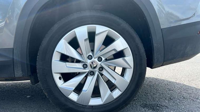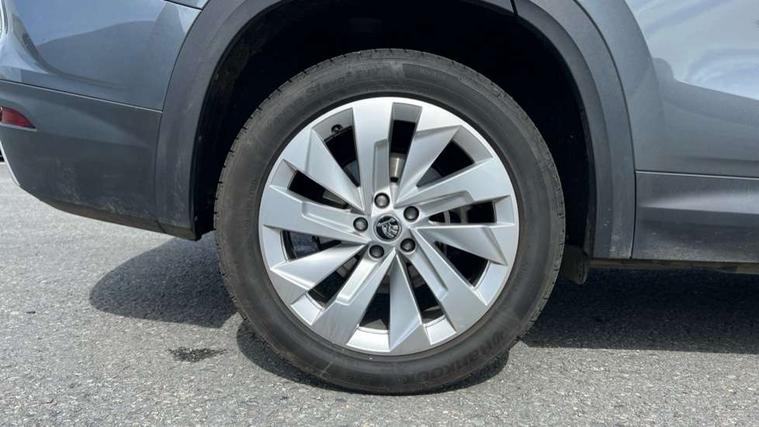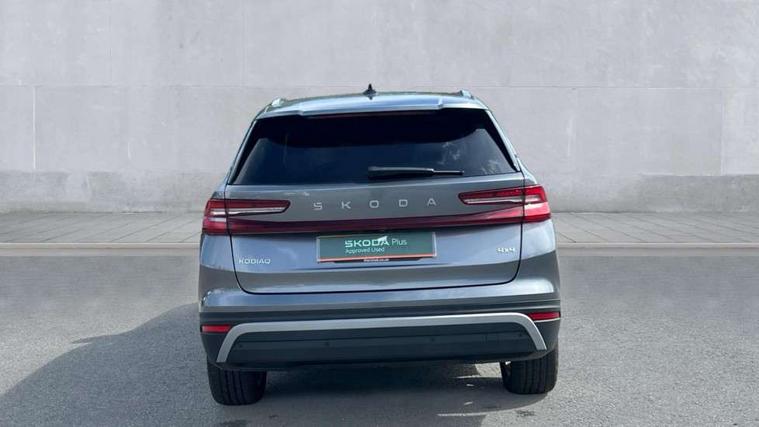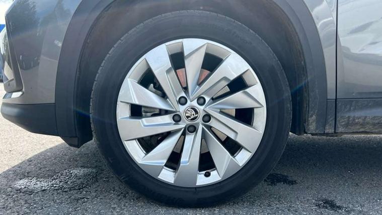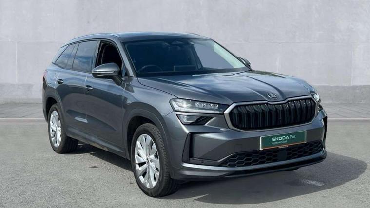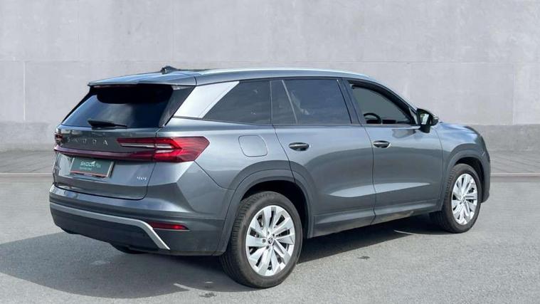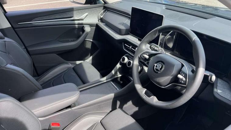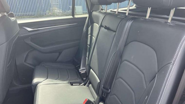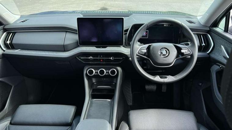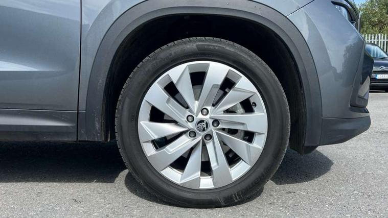 13" satellite navigation touchscreen display, Blind spot detection with door exit warning, Bluetooth system, ChatGPT functionality, Drive mode selector, Driver alert with fatigue sensor, Driver drowsiness alert system, Dry display cleaner, e call+, Front cross traffic assist, Lane assist, PAS, Rear traffic assist, Tailgate unlocking from outside, Traffic sign recognition, USB C Port x 2 in front centre console, Virtual Cockpit - 10.25" digital display, Voice control system, Wireless charging for two smartphones (15W) with cooling function, Wireless SmartLink for Apple CarPlay and Android Auto, Stop/start function, 2x USB-C in the rear, DAB Digital radio, Aero front windscreen wipers with intermittent function, Auto dimming rear view mirror, AWL (all weather lighting) and all weather light with cornering function, Black wheel arch surrounds, Body colour bumpers, Body colour door mirrors and handles, Cornering light and poor weather light, Electric folding /adjustable/separted heated/folding door mirrors, auto dimming with boarding sports and memory function, Electric front and rear windows, Exterior black decorative trims, Heat insulating glass in windshield, Heated rear window, Ice scraper in fuel tank cap, Invisible tailpipe, LED daytime running lights, LED third brake light in rear spoiler, Light assistant with automatic headlight control and coming home feature, Logo projection in door mirrors, Privacy glass, Rear side wing doors, Rear spoiler, Rear window wiper, Red decorative strip between rear LED lights, Safety reflectors on front and rear doors, Unique dark chrome design logo on alloy wheels, Window control switches with black trim, Windscreen wipers with rain sensor, Without engine designation, 1.5l bottle holder points in all door, 12V socket in boot, 1x centre rear reading light, 2 seat bench in 3rd row, 3 configurable smart dials with 32mm coloured display, 3 seat bench in 2nd row, 4 foldable roof handles with rear coat hooks, Ambient interior lighting - Dashboard, front-door stowage compartments, front and rear door panels and footwell lighting, Automatic gear selector on steering wheel, Chrome interior door handles, Driver/front passenger reading lights, Fabric headlining, Fixed bench 40:60:40 split folding backrests, Front and rear floor mats, Front centre armrest with jumbo box storage compartment, cup holder and 12V socket, Front courtesy lights, Height adjustable front headrests, Isofix child seat fittings in outer middle row rear seats and front passenger with top tether, Manually adjustable steering column, Pollen filter, Rear centre armrest with cupholders, Rear seat boot backrest release, Retractable luggage compartment cover, Single front passenger seat, Skoda lettering on steering wheel, Sliding trunk cover, Small Bags on the inner sides of the front backrests, Storage pocket including mobile phone pockets on the backs of the front seats, Sunvisors with illuminated vanity mirrors, Three rear height adjustable headrests, Ticket holder on A Pillar, Tri zone climate control, Umbrella in door panel x1 made from sustainable materials, Upper and lower glovebox with card holder and coin compartment, USB C port by rear view mirror for charging only (15W), Exterior styling pack - Kodiaq, Auto door release and activation of warning lights, Driver and front passenger airbag with knee airbag and front passenger airbag deactivation, Electric child locks, Electronic parking brake, ESC (incl. ABS+EMD+MSR+ASR+EDL+HBA+DSR+RBS+ESBS+MCB+TSA+XDS), Front assist with braking reaction to vehicles, pedestrians and cyclists, Front disc brakes, Fuel cut off safety device, Height adjustable front 3 point seatbelts + pretensioners, Hill hold control, Junction assist with automatic emergency braking, Rear disc brakes, Safety vest holder in door, Seat belt reminder for all seats, Three point rear seat belts, Two tone horn, Tyre pressure monitor, Anti-theft wheel bolts, Immobiliser, Remote central locking with 2 keys, Breakdown kit,