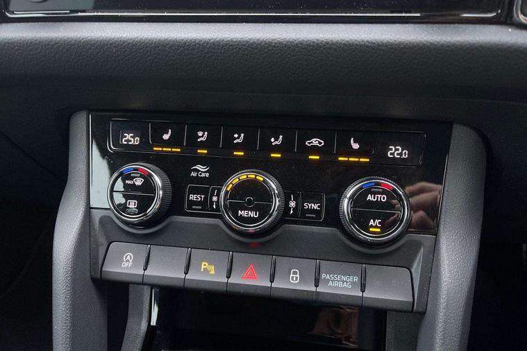 Bluetooth system, E-call, ECO Stop/start function, Exterior temperature indicator, Smartlink wireless for apple carplay and wired for android auto, Speed limiter, Tailgate unlocking from outside, USB C Port x 2 in front centre console, Wireless charging, 8 speakers, DAB Digital radio, Aero front windscreen wipers with intermittent function, Aero rear window wiper, Auto dimming rear view mirror, Black wheel arch surrounds, Body colour bumpers, Body colour door mirrors and handles, Chrome front grille, Chrome roof rails with chrome window surround, Electric front and rear windows, Extended rear spoiler with finlets in gloss black, Front fog lights, Full LED matrix headlights with AFS (adaptive front light system), cornering function and AWL (all weather lighting system), Headlight washers, Heated rear window, Invisible tailpipe, LED daytime running lights, LED rear fog light, LED third brake light in rear spoiler, Light assistant (coming/leaving home/tunnel light), Off-road style lower front bumper element, Privacy glass, Rain and light sensors, Rear LED lights (high functionality) with welcome effect and dynamic indicators, Rear side wing doors, Safety reflectors on front and rear doors, Window control switches with black trim, 12V socket in boot, 2 rails with 2 hooks, 2 seat bench in 3rd row, 3 seat bench in 2nd row, 4 foldable roof handles with rear coat hooks, 60:40 foldable rear seat with sliding adjustment and backrest angle adjustment, Bottle holders in door panel in the 1.5 litre front and 1 litre rear, Cargo storage compartments, Chrome headlight control button, Chrome interior door handles, Coat hooks on B pillar, Covered storage compartment on driver side, Decorative door sills in the front and rear, Front centre armrest with storage compartment, cup holder and 12V socket, Front courtesy lights, Gear shift lever with chrome frame and black gloss insert, Grey stitching in front and rear armrests and door armrests + door inserts, Height adjustable front headrests, Illuminated and cooled glovebox, Illuminated luggage compartment, Isofix child seat fittings in outer rear seats with top tether, Manually adjustable steering column, Net programme in boot (1x horizontal Net, 2x vertical Nets), Overhead glasses storage compartment, Pollen filter, Rear centre armrest with cupholders, Single front passenger seat, Sliding trunk cover, Small Bags on the inner sides of the front backrests, Sunvisors with illuminated vanity mirrors, Three rear height adjustable headrests, Ticket holder on A Pillar, Umbrella in door panel, Variable boot floor, Auto door release and activation of warning lights, Child locks on rear doors, Driver and front passenger airbag with knee airbag and front passenger airbag deactivation, Electronic parking brake with hill start assist, Emergency rear braking signal, ESC (incl. ABS+MSR+ASR+EDS+HBA+DSR+RBS+MKB), Front assist with autonomous emergency braking, Front side airbags with curtain airbags, Fuel cut off safety device, Height adjustable front 3 point seatbelts + pretensioners, Hill hold control, Rear disc brakes, Safety vest holder in door, Seat belt reminder for all seats, Three point rear seat belts, Two tone horn, Tyre pressure monitor, Alarm with interior monitoring and tilt sensor with safe function, Anti-theft wheel bolts, Immobiliser, Keyless entry and start system (KESSY), Remote central locking with 2 keys, Grey stitching in dashboard, Linear diamonds decorative inserts, Temporary spare wheel (space saver),