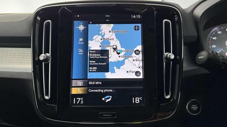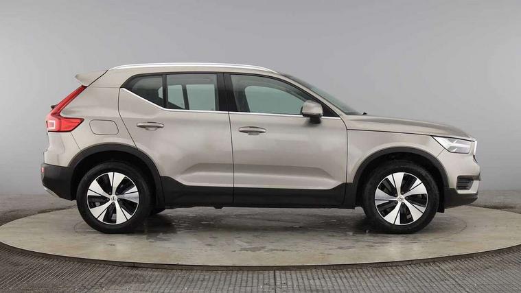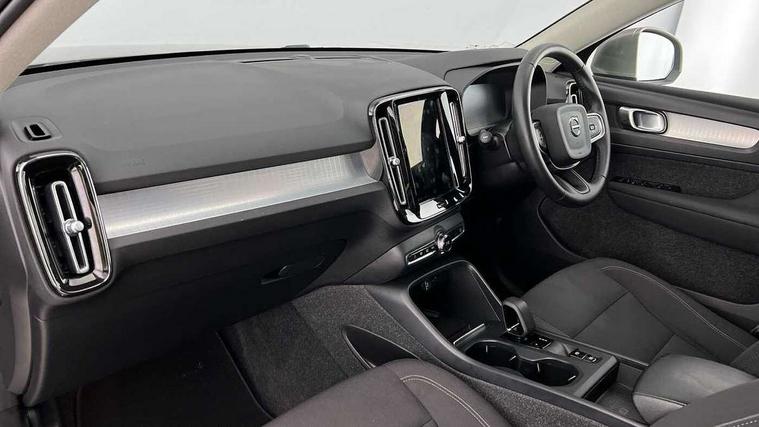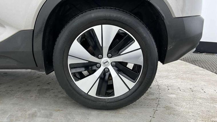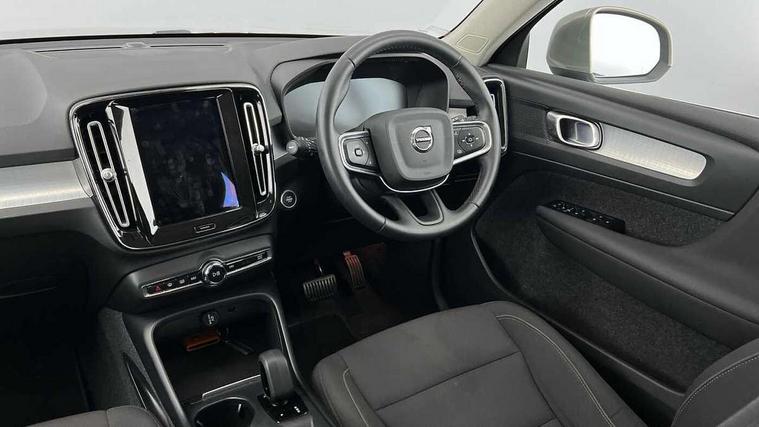 12.3" Active TFT crystal driver's instrument display, 9" centre console portrait touch screen, Adjustable steering wheel force, Bluetooth hands free telephone kit, Drive mode selector, E-call, Lane keep assist with driver alert control, Oncoming Lane Mitigation, Power operated tailgate, Sensus navigation with European mapping and traffic information, Speed limiter, Speed sensitive steering, Voice activated control for key functions, Volvo on call, 7m 10amp charge cable with 3 pin plug and 7m 1 phase 16amp type 2/mode 3 charge cable, Dynamic chassis, Electric front axle drive, Recharging port located in nearside front wing, DAB Digital radio, Low speed exterior sound speaker, Steering wheel mounted remote controls, Adaptive brake lights with high level LED brake lights, Auto dimming interior mirror, Automatic headlamp levelling, Chrome window surround, Colour coordinated auto folding and heated power door mirrors, Front aluminium tread plates, Front and rear electric windows, High gloss black front grille with chrome inserts, High gloss black sensus surround deco, High Gloss silver front and rear skid plate, Home safe and approach lighting, Integrated roof rails in silver, LED Headlights + Active high beam incorporating daytime running lights, Rain sensor with automatic windscreen wiper activation, Rear side wing doors, Rear wiper, Roof antenna, Roof spoiler, Visible VIN plate, 12V socket in front tunnel console and cargo compartment, 2 zone electronic climate control and rear air vent, 3 seat bench in 2nd row, 3 Spoke tailored steering wheel with chrome trim, 60/40 versatile split folding rear seat, A-pillar parking ticket holder, Bright metal luggage threshold, Centre console cupholders and storage, Floor mats, Front footwell illumination, Front headrests, Front reading light and theatre lighting, Glovebox bag hook, Height/reach adjustable steering column, Height/tilt adjustable driver's seat, High gloss centre tunnel deco, Illuminated glovebox, Illuminated luggage compartment, Illuminated vanity mirrors, Isofix attachments on rear seats, Leather faced upholstery, Load protection net, Multi directional lumbar support, Orrefors Crystal Gear Lever Knob, Power driver seat with memory + exterior mirrors memory, Rear armrest / integral cup holders / storage tray, Rear coat hook, Single front passenger seat, Underfloor cargo storage, Vanity mirror with ticket holder, Park assist pack - XC40, 3x3 point rear seatbelts, City safety includes pedestrian, cyclist and large animal detection and front collision warning with full auto brake, Drivers knee airbag, Dual stage driver/passenger airbags, Electronic parking brake with auto hold, First aid kit, Front and outer rear seatbelt reminder and pretensioners, Front seats SIPS airbags, Hill descent control, Hill start assist, Inflatable curtain, Passenger airbag cut-off device, Road sign information display, Run off Road Mitigation, Run off Road Protection, SIPS (Side Impact Protection System), Slippery road and hazard light alert, Stability and Traction Control with Spin control, Engine Drag Control and Corner Traction Control, Tyre pressure monitoring system, Vehicle deceleration control with Anti-lock Brake System, Electronic Brake Distribution and Emergency Brake Assist, Warning triangle, WHIPS whiplash protection system - front, Anti-theft alarm including immobiliser/volume sensor + level sensor, Care key with user defined top speed, Key integrated remote control central locking + fuel flap with deadlocking system and auto open/close power windows, Locking wheel nuts, Private locking for tailgate, Driftwood inlays,
