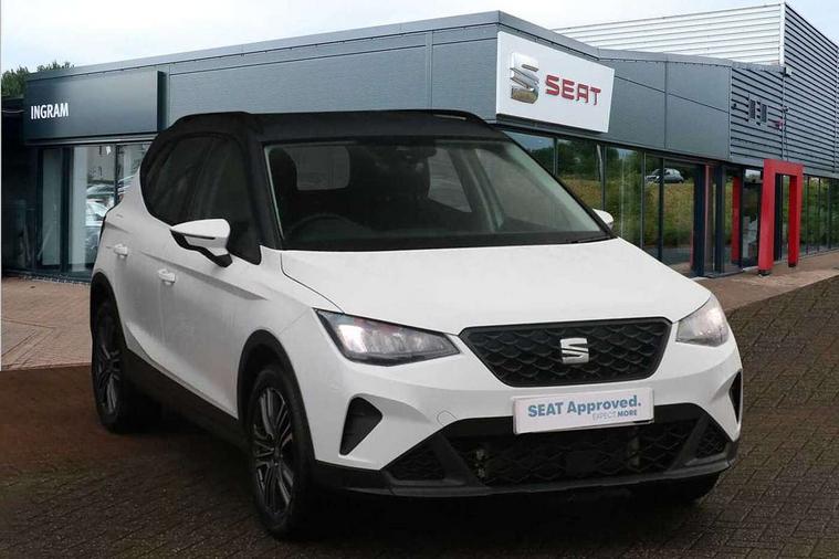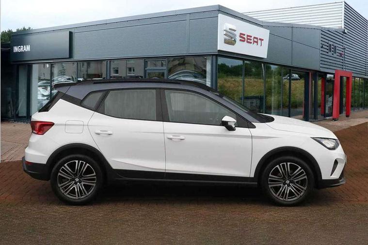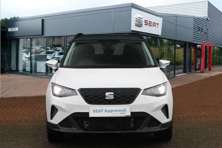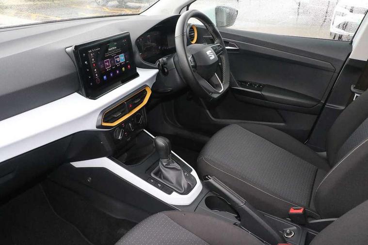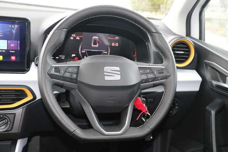 'Lights On' Reminder warning buzzer, 8" Digital cockpit, Cruise control and speed limiter, Digital clock, E-call, Electric speed sensitive power steering, Full Link Smartphone Integration with Mirror Link, Apple Car Play, Google Android Auto with USB Type C cable for Apple and Android compatibility, Lane keeping system, Low fuel warning light, Outside temperature display, Rear parking sensor, RPM counter, Seat connect with safety, service, remote and online, Trip computer, Wireless phone charger, 9.2" colour touchscreen with navigation system, voice control and USB port (type c), Bluetooth interface for hands free and audio streaming, DAB digital radio and AM/FM radio, Steering wheel mounted audio controls, Anti theft roof antenna, Automatic activation of hazard warning lights, Black roof rails and window surrounds, Body coloured bumpers, Body coloured door handle inserts, Body coloured door mirrors, Dimming rear view mirror, ECO LED automatic headlights and LED daytime running lights, Electric adjustable door mirrors, Electric front/rear windows, Hidden exhaust pipe, Licence plate lights, Protective side mouldings, Rain sensing wipers, Rear fog lights, Rear side wing doors, Rear spoiler, Rear window wash/wipe, Third brake light, Visible VIN plate, Windshield wiper with intermittent control and potentiometer, 2 cupholders, 3 seat bench in 2nd row, 60/40 split folding rear seat, Air conditioning, Cloth upholstery, Double boot floor, Driver sunvisor with covered mirror + card holder, Dust/pollen filter, Gear shift indicator, Grey interior roof, Height adjustable front seats, Height/reach adjustable steering column, Illuminated boot, Instrument lighting with brightness control, ISOFIX points in outer rear seats with top tether anchorage points, Leather steering wheel/gear knob/handbrake, Passenger sunvisor with vanity mirror, Single front passenger seat, Two front and three rear height adjustable headrests, Interior chrome pack - Arona, 3 point seatbelts on all rear seats, ABS, Active front headrests, Child locks on rear doors, Driver and front passenger airbags with front passenger airbag de activation, front side and curtain airbags, Electronic stability control, Emergency Brake Assist (EBA) and front assist, Front and rear seatbelt reminder, Hill hold control, Multi-Collision braking, Tiredness recognition system, Traction control, Tyre pressure monitoring system, Electronic engine immobiliser, Locking wheel bolts, Remote central locking + deadlocks, Titan black dashboard, 17" Dynamic machined alloy wheels,