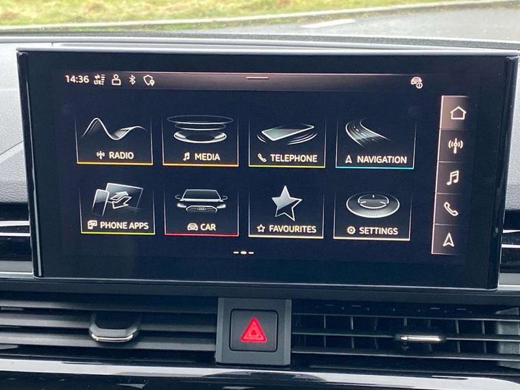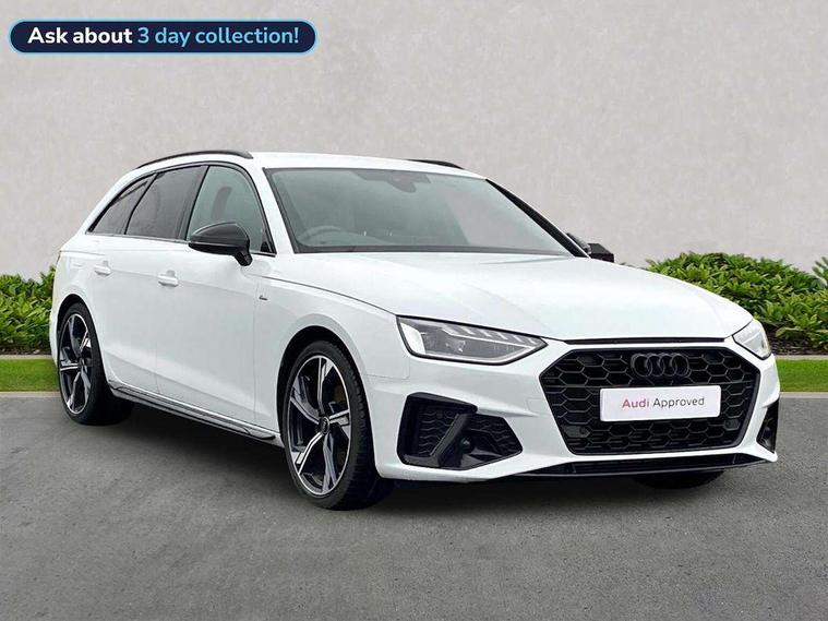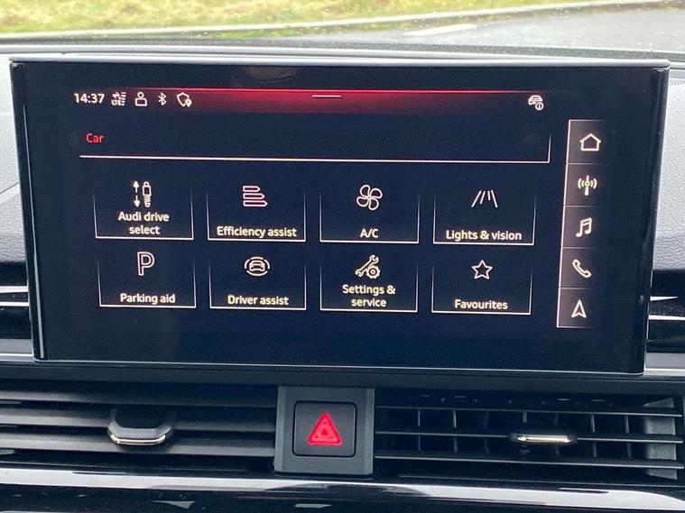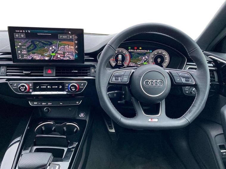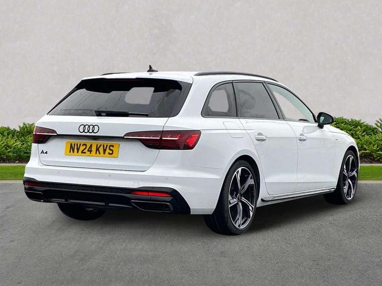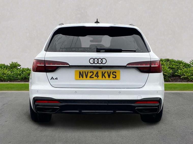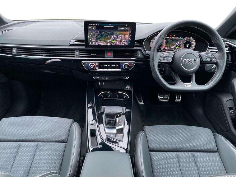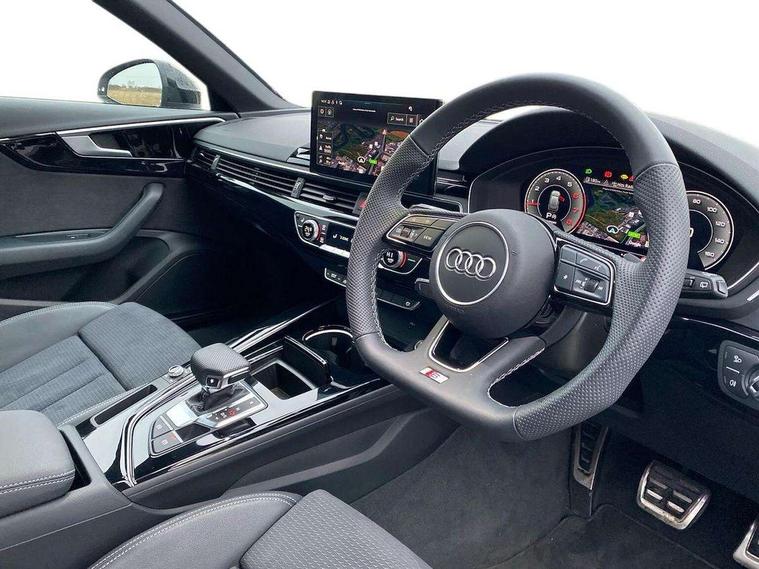 Audi connect safety and service (e-call), Audi drive select, Audi smartphone interface, Audi virtual cockpit, Automatic start-stop system with coasting functionality and efficiency programme, Bluetooth interface, Camera based traffic sign recognition, Electromechanical power steering, Email, calendar and text messages displayed via MMI, Front and rear parking sensors, Lane departure warning, MMI Navigation plus with MMI touch includes 10.1" high resolution colour MMI display, 3D map, Power operated tailgate, Rear view camera, Voice control system, 54 litre fuel tank, Sports suspension lowered by 23mm, 2 USB charging ports, 8 passive loudspeakers, DAB digital radio reception, Audi beam uses LEDs to project the audi logo onto the ground as you exit your A4, Auto dimming rear view mirror, Black Audi rings and black badging (with removed engine badging), Body colour door handles, Body colour front spoiler lip, Body colour side sill trim, Electric adjustable/heated/folding door mirrors with auto dimming, Exhaust tailpipes in dark chrome, Grained matt black side air inlets with matt aluminium silver inlay, High beam assistant, High gloss black B pillar trims and triangular rear door trim, LED headlights with LED rear lights + dynamic rear indicators + headlight adjustment and high beam, turning light + LED daytime running lights, LED third brake light, Privacy glass, Rain and light sensors, Rear diffuser in matt black with trim strip in matt aluminium silver, Rear side wing doors, Rear wiper, RS4 rear spoiler in body colour, S Line roof edge spoiler, Sport front and rear bumpers with side skirts, Variable intermittent front wash/wipe, Windscreen with acoustic glazing, 4 way electric lumbar support for driver and front passenger, 40/20/40 split folding 3 rear seat bench in 3 parts with rear centre armrest, Black carpets, Black cloth headlining, Black perforated leather gearknob, Contrast stitching on seats, steering wheel and gear lever gaiter, Deluxe 3 zone electronic climate control, Electric load area cover, Front and rear head restraints, Front centre armrest, Heated front seats, Illuminated door sill trims with S logo, ISOFIX child seat mounting and top tether, Manual seat adjustment, Single front passenger seat, Stainless steel pedals and foot rest, Tool kit, Black styling pack - A4 Avant, LED Interior light pack - A4/S4, 3 rear seatbelts, 6 airbags - Driver, front passenger, curtain and side windows, Attention and drowsiness assist, Electronic Stabilisation Control (ESC) including ABS, ASR and EDL, Hill hold assist, Multi collision brake assist, Pop-up bonnet for pedestrian protection, Pre sense city, Rear door child safety locks, Seatbelt monitoring, Warning triangle and first aid kit, Anti theft alarm, Anti theft wheel bolts, Central locking, Keyless Go, Piano black finish inlay, Tyre repair kit,