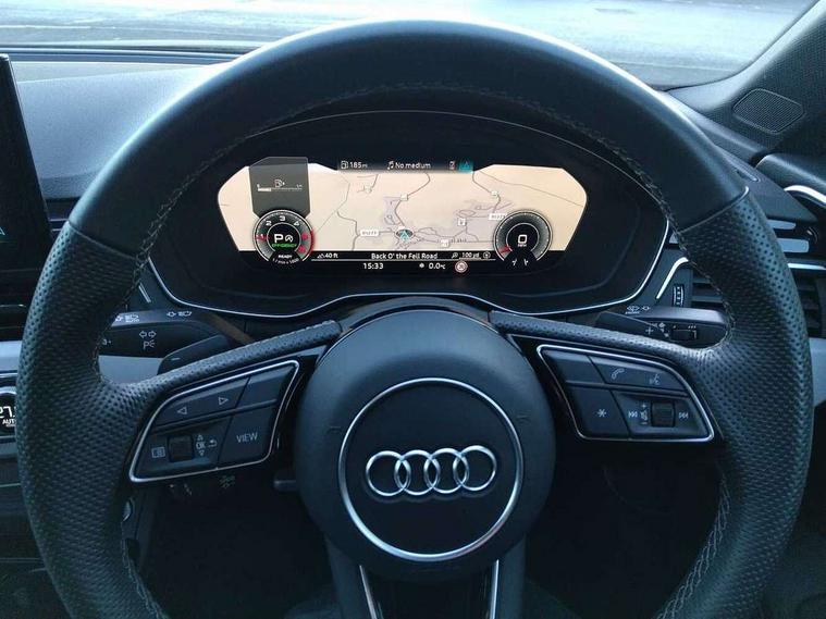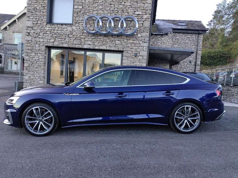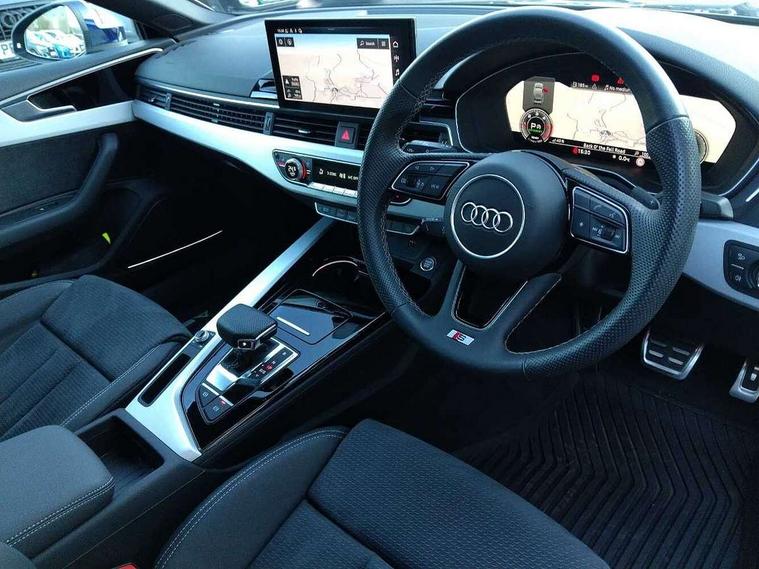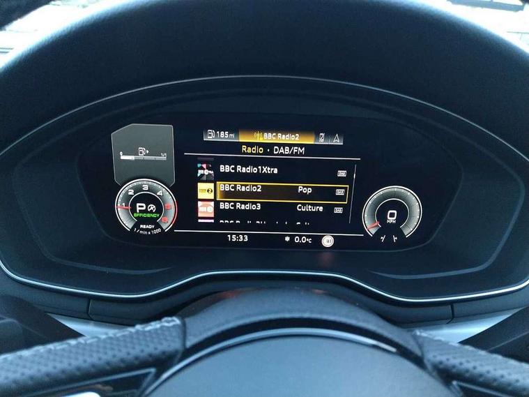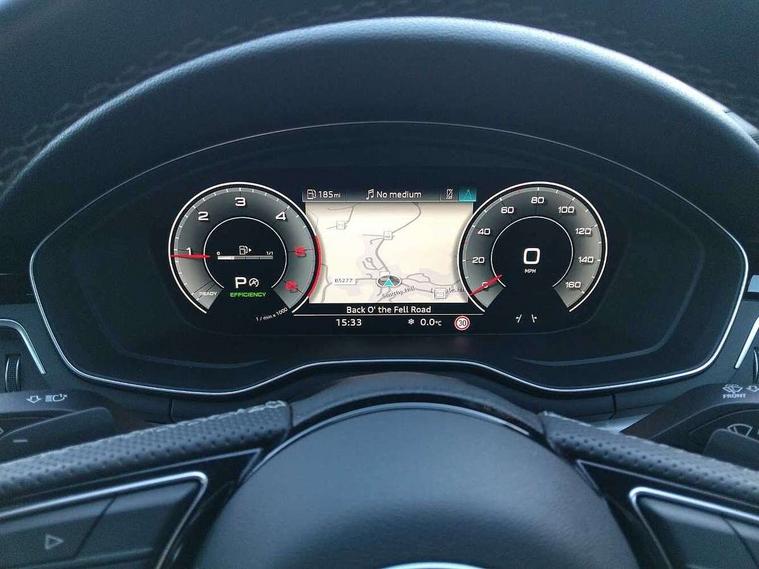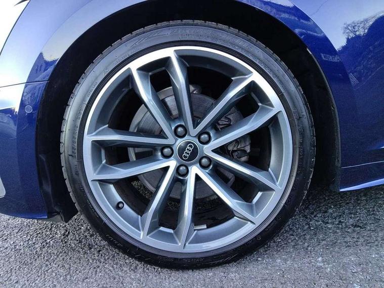 Audi connect safety and service (e-call), Audi drive select (Auto, Comfort, Dynamic, Efficiency and Individual), Audi smartphone interface, Audi virtual cockpit - 12.3" full colour digital instrument cluster, vehicle/engine speed, Radio/media information+Driver assistance systems, Automatic start-stop system with coasting functionality and efficiency programme, Bluetooth interface, Camera based traffic sign recognition, Electro-mechanical power steering, Email, calendar and text messages displayed via MMI, Front and rear parking sensors, Lane departure warning, MMI nav+ with MMI touch - 10.1" high resolution MMI display, touch sensitive, 3D map, route/country info, dynamic route guide, personal route assist, Power operated tailgate, Rear view camera, Service interval indicator, Voice control system, Diesel particulate filter, Sports suspension lowered by 23mm, 8 passive loudspeakers, CD player, DAB digital radio reception, Two additional USB ports for rear passenger in rear centre console, Two SDXC card slots, Auto dimming door mirrors, Auto dimming rear view mirror, Body colour bumpers, Body colour door handles, Body colour front spoiler lip, Body colour side sill trim, Body coloured door mirrors, Electric adjustable heated door mirrors, Electric folding door mirrors, Electric front windows, Front fog lights, Honeycomb structure radiator grille in grained matt black, Kerb-view function for passenger side, LED headlights and rear lights with LED daytime running lights, LED side indicator lights integrated into door mirrors, LED third brake light, Matt aluminium silver tailpipe trim, Privacy glass, Rain and light sensors, Rear side wing doors, Rear wiper, S line badges on front wings, S line front and rear bumpers with side skirts, S Line rear diffuser in matt anthracite black with trim strip in matt aluminium silver, Side air inlets in grained matt black with matt aluminium silver inlay, Variable front intermittent wipers, Windscreen with acoustic glazing, 3 seat bench in 2nd row, 3 spoke high multifunction leather sport steering wheel with paddle shfit and S badging perforated leather grips, 4 way electric lumbar support for driver and front passenger, 40/20/40 split folding 3 seater rear bench seat, Adjustable steering column, Black carpets, Black cloth headlining, Black perforated leather gearknob, Contrast stitching on seats, steering wheel and gear lever gaiter, Deluxe 3 zone electronic climate control, Front centre armrest, Front head restraints, Front/rear floor mats, Heated front seats, Illuminated front door sill trim with S logo, ISOFIX child seat mounting and top tether, Luggage compartment mat, Manual seat adjustment, Rear centre armrest, Rear headrests, Single front passenger seat, Stainless steel pedals and footrest, Sunvisors with vanity mirrors, Tool kit, LED interior light pack - A5/RS5, 3x3 point rear seatbelts, 6 airbags - Driver, front passenger, curtain and side airbags, Attention and drowsiness assist, Electromechanical parking brake, Electronic Stabilisation Control (ESC) including ABS, ASR and EDL, Front passenger airbag deactivation, Height adjustable front seatbelts, Hill hold assist, Manual child lock in rear doors, Multi collision brake assist, Pop-up bonnet for pedestrian protection, Pre sense city, Seatbelt monitoring, Tyre pressure warning, Variable restraint system, Warning triangle and first aid kit, Anti theft alarm system, Anti theft wheel bolts, Immobiliser, Keyless Go, Remote central locking, Matt brushed aluminium inlays, Tyre repair kit,