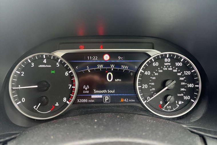 7" full colour TFT screen combimeter, 8" infotainment colour display with touch screen, Apple CarPlay and Google Android auto, Drive modes select (Eco, normal and sport), Emergency and breakdown call, Front parking sensor, Idle start/stop system, Intelligent lane intervention, Lane departure warning system, Nissan connect nav with TomTom traffic, Nissan connect services and Wifi connection, Outside temperature sensor, Power Steering, Rear parking sensor, Traffic sign recognition, Trip computer, Gasoline particulate filter, Bluetooth system, USB, Aux-in and 12V socket, Bose personal plus audio system with 8 speakers(4 speakers and 2 headrest speaker for driver and passenger seats), Bose personal sound stage control, DAB Digital radio, Rear console USB port, Auto dimming interior rear view mirror, Automatic hazard signal with emergency stop signal, Body colour bumpers, Body colour door handles, Electrically adjustable door mirrors with integrated indicators, Follow me home headlights, Front and rear electric window with one touch driver and passenger window, Heated and auto folding door mirrors, High beam assist, LED daytime running lights, LED front fog lights, LED headlamps, LED rear fog lamp, LED rear lamps, Rain sensor windscreen wipers, Rear privacy glass, Rear spoiler, Rear wiper, Thermaclear heated windscreen, Three blink turn signal, 3 height adjustable rear headrests, 60/40 split folding rear seat, Automatic climate control, Card holder on driver sunvisor, Cloth/Synthetic leather upholstery, Door ambient lighting, Driver and passenger sliding and reclining seats, Driver seat back pocket, Driver side rear coat hanger, Driver/passenger sunvisors and illuminated vanity mirrors, Front and rear cabin lights, Front armrest, Front door pockets with bottle holders, Front head restraints, Front passenger isofix child seat anchorage point, Front/rear passenger grab handles, Gear console ambient circle lighting, Grey synthetic leather kneepad, Heated front seats, Height adjustable driver's seat, Height adjustable passenger seat, Internal chrome door handles, Leather gearshift knob, Leather steering wheel, Luggage board, Luggage space lighting, Monoform sporty seats, Multifunction steering wheel, Passenger seat back pocket, Rear door bottle holders, Steering wheel mounted gearshift paddles, Telescopic steering wheel adjustment, Two cupholders in front centre console, Two rear isofix child seat anchorage points with top tether, Voice recognition switch on steering wheel, Welcome light and console tray ambient lighting, ProPilot pack - Juke, ABS with EBD and brake assist, Active ride control, Active Trace Control, Driver and passenger airbags, Driver and passenger side airbags, Electric handbrake with auto hold function, Electronic Stability Programme (ESP), Front and rear curtain airbags, Height adjustable seatbelts, Hill start assist, Intelligent emergency braking with pedestrian and cyclist recognition, Seatbelt reminder for driver/front passenger and rear seats, Single tone horn, Three 3 point rear seatbelts, Traction control, Tyre pressure monitoring system, VDC Dynamic Vehicle Control, Ventilated rear brake discs, Alarm, Immobiliser, Intelligent Key with push button starter, Remote central locking,