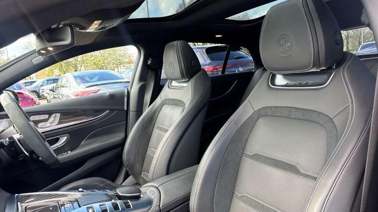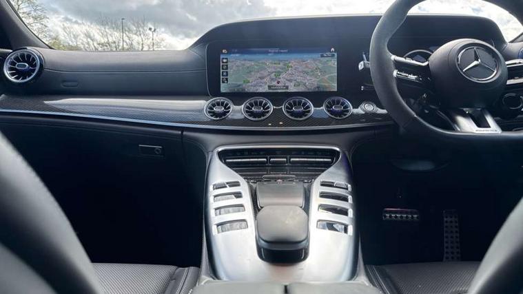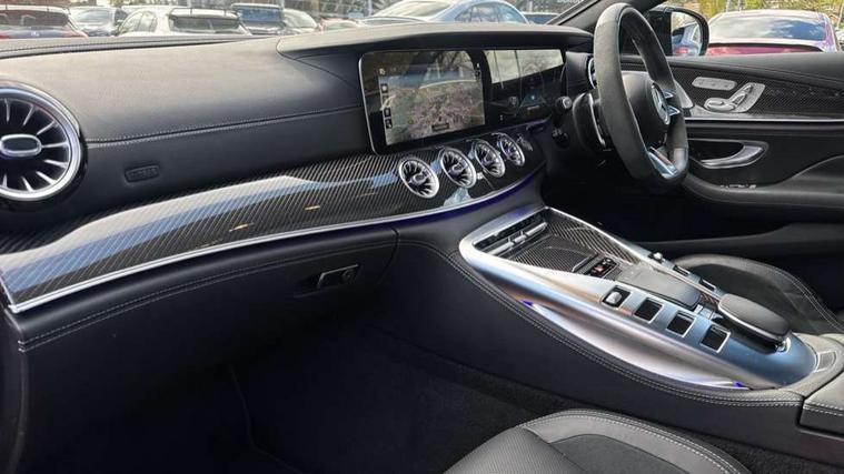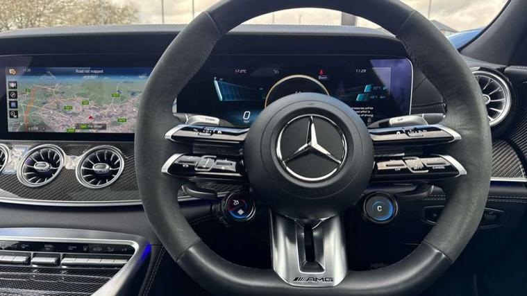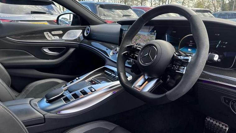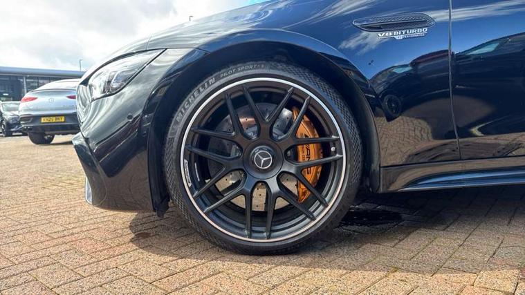 12.3" digital instrument cluster display, AMG DRIVE UNIT in a V8 style, 8 high-resolution display switches, gear selector lever with embossed AMG emblem, AMG DYNAMIC SELECT - drive programs Comfort, Sport, Sport +, Slippery, Individual and race including Drift mode, AMG instrument cluster include AMG main menu with RACE TIMER, analogue round dails with 220 mph scale and Super sport display style, AMG track pace, Attention assist - Monitors steering behaviour and long journey fatigue, Blind spot assist, Cruise control with speedtronic variable speed limiter, Digital operating instructions, ECO start/stop function, Exit warning function, GPS aerial, Head up Display, Instrument and media display and hybrid features including performance graph, electric range or energy consumption, MBUX augmented reality for navigation, MBUX multimedia system with DAB digital radio, Mercedes connect me with remote online, Mercedes me connect, Mercedes-Benz emergency call system, Owners manual and service booklet in English, PAS, Pre-installation for car sharing, Remote and charging services premium, Service indicator (ASSYST), Smartphone integration with Apple CarPlay/Android Auto, Status display for rear seat belts in instrument cluster, Touchpad integrated into the centre console with clear haptic feedback, Traffic sign assist, Widescreen cockpit, Wireless charging system for mobile devices, 150 kW electric motor - All electric driving up to 12km, 6kWh Battery capacity and high performance cooling with high charging and discharging currents, 73 litre fuel tank, AMG rear axle steering, AMG RIDE CONTROL + Suspension, AMG SPEEDSHIFT MCT 9 speed automatic sports transmission, Charging cable for domestic socket (mode 2) - 5m, Charging cable for wallbox and public charging stations (mode 3) - 8m, 16A, Lithium-ion battery, Petrol Particulate Filter, Burmester 14 speaker surround sound system, Active aerodynamics with AIRPANEL in the front apron plus electrically extending rear boot spoiler, Adaptive brake lights, AMG illuminated door sills with AMG lettering and with exchangeable cover, AMG Light display, AMG Performance exhaust, switchable, AMG specific radiator grille, Automatic headlamp activation, Body colour bumpers, Bonnet with powerdomes, Electric windows with pre-safe closing function, Extendable rear boot spoiler, Fixed panoramic glass sunroof, Heat-insulating glass for side windows, rear windows and windscreen, Heated rear window with timer, LED 3rd brake light, LED daytime running lights, LED tail lights with sequential turn signals, Model designation on the front wings and boot lid, Multibeam LED headlights with adaptive highbeam assist plus, Privacy glass, Rain sensor windscreen wipers, Rear apron in the vehicle colour, lower part with diffuser in high-gloss black, Rear boot, Rear side wing doors, Solid roof, V8 BITURBO lettering on front wings with E Performance logo underneath, 12V Accessory socket in centre console, 12V Accessory socket in the load area, 2 cup holders in front and rear, 2 individual seats and stowage compartment in the rear, 3 Stage AMG speed sensitive steering, Ambient lighting with choice of 64 colour settings, AMG floor mats with AMG lettering, AMG sports seats with embossed AMG emblem in the head restraints and bezel in silver chrome with AMG lettering, Automatic child seat recognition sensor, Climatised front seats, Front and rear headrests, Front passenger seat with occupancy sensor (WSS), Glasses stowage compartment, Glove compartment - lockable, air conditioned and illuminated, Heated rear seats, Heated steering wheel, ISOFIX child seat for two outer seats, Pre-entry climate control, Pull out sun visors with vanity mirror, illuminated and pivotable side window, Rear headrests, Stowage compartment in the front with 12V socket and armrest with compartment incl 2 USB ports and SD card slot, THERMOTRONIC automatic climate control, Active multicontour seat package - AMG GT, Air balance pack - AMG GT, AMG Dynamic plus package - AMG GT, AMG Night pack - AMG GT 63 S, ENERGIZING package Plus - AMG GTS 63 E Performance, Keyless go comfort package - AMG GT, Memory package - AMG GT 63, Mirror pack - AMG GT 63 S, Parking package - AMG GT, Stowage space package - AMG GT, 2 three point rear seatbelts, 3 stage electronic stability programme, Acceleration skid control, Active braking assist, Airbags - driver and front passenger, Airbags - kneebag for driver, Airbags - windowbags, AMG ceramic high performance composite brake system, Anti lock braking system (ABS) with brake assist, Automatic front passenger airbag deactivation, Black seat belts, Brake calipers with AMG carbon ceramic lettering painted in bronze, Brake pad wear indicator front brakes, Driver and front passenger side airbags combined thorax/pelvis, Electric parking brake, First aid kit, Front and outer rear seats seatbelt pre-tensioners with belt force limiters and automatic belt height adjustment, Pre-safe system, Predictive pedestrian protection, Radar-based recuperation, Tyre pressure monitoring system, Warning triangle, Alarm system with immobiliser and interior protection -Thatcham category 1, Guard 360 degree vehicle protection plus, Keyless Go starting function, Remote central locking, Soft door close, Trim - AMG carbon fibre, Summer tyres, TIREFIT with tyre inflation compressor,