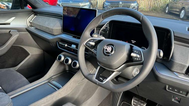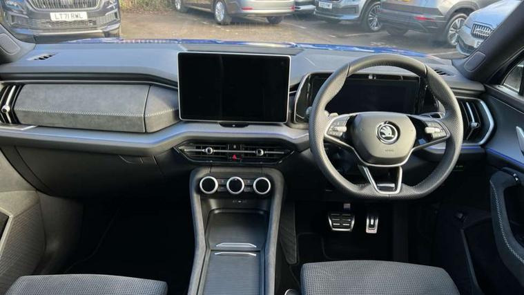 13" satellite navigation touchscreen display, Blind spot detection with door exit warning, Bluetooth system, ChatGPT functionality, Driver alert with fatigue sensor, Driver drowsiness alert system, Dry display cleaner, e call+, Front cross traffic assist, Lane assist, Off road modes, PAS, Rear traffic assist, Tailgate unlocking from outside, Traffic sign recognition, USB C Port x 2 in front centre console, Virtual Cockpit - 10.25" digital display, Voice control system, Wireless charging for two smartphones (15W) with cooling function, Wireless SmartLink for Apple CarPlay and Android Auto, Dynamic chassis control with drive mode select, Stop/start function, 2x USB-C in the rear, DAB Digital radio, Aero front windscreen wipers with intermittent function, Auto dimming rear view mirror, AWL (all weather lighting) and all weather light with cornering function, Black diffuser and decorative tailpipe with a unique dark chrome finish, Black sports styling including front grille and window surrounds, Black wheel arch surrounds, Body colour door handles, Cornering light and poor weather light, Electric folding /adjustable/separted heated/folding door mirrors, auto dimming with boarding sports and memory function, Electric front and rear windows, Front and rear sports bumpers including lower rear chrome strip, Gloss black door mirrors, Heat insulating glass in windshield, Heated rear window, Ice scraper in fuel tank cap, Invisible tailpipe, LED daytime running lights, LED rear fog light, LED third brake light in rear spoiler, Light assistant with automatic headlight control and coming home feature, Logo projection in door mirrors, Privacy glass, Rear side wing doors, Rear spoiler, Rear window wiper, Red decorative strip between rear LED lights, Safety reflectors on front and rear doors, Sportline badge on front fenders, Tailgate lettering in Black, Window control switches with black trim, Windscreen wipers with rain sensor, Without engine designation, 1.5l bottle holder points in all door, 12V socket in boot, 1x centre rear reading light, 2 seat bench in 3rd row, 3 configurable smart dials with 32mm coloured display, 3 seat bench in 2nd row, 4 foldable roof handles with rear coat hooks, Aluminium pedals, Ambient interior lighting - Dashboard, front-door stowage compartments, front and rear door panels and footwell lighting, Automatic gear selector on steering wheel, Chrome interior door handles, Driver/front passenger reading lights, Fabric headlining, Fixed bench 40:60:40 split folding backrests, Front and rear floor mats, Front centre armrest with jumbo box storage compartment, cup holder and 12V socket, Front courtesy lights, Front sports comfort seats, Height adjustable front headrests, Interior black decorative trims, Isofix child seat fittings in outer middle row rear seats and front passenger with top tether, Manually adjustable steering column, Pollen filter, Rear centre armrest with cupholders, Rear seat boot backrest release, Retractable luggage compartment cover, Single front passenger seat, Sliding trunk cover, Small Bags on the inner sides of the front backrests, Storage pocket including mobile phone pockets on the backs of the front seats, Sunvisors with illuminated vanity mirrors, Three rear height adjustable headrests, Ticket holder on A Pillar, Tri zone climate control, Umbrella in door panel x1 made from sustainable materials, Upper and lower glovebox with card holder and coin compartment, USB C port by rear view mirror for charging only (15W), Acoustic package - Kodiaq, Performance package - Kodiaq, Sportline design selection pack - Kodiaq, Auto door release and activation of warning lights in the event of an accident, Driver and front passenger airbag with knee airbag and front passenger airbag deactivation, Electric child locks, Electronic parking brake, ESC (incl. ABS+EMD+MSR+ASR+EDL+HBA+DSR+RBS+ESBS+MCB+TSA+XDS), Front assist with braking reaction to vehicles, pedestrians and cyclists, Front disc brakes, Fuel cut off safety device, Height adjustable front 3 point seatbelts + pretensioners, Hill hold control, Junction assist with automatic emergency braking, Rear disc brakes, Safety vest holder in door, Seat belt reminder for all seats, Three point rear seat belts, Two tone horn, Tyre pressure monitor, Alarm with interior monitoring and tilt sensor with safe function, Anti-theft wheel bolts, Immobiliser, Remote central locking with 2 keys, 20" Rila anthacite polished alloy wheel with black matte aero covers, Breakdown kit,