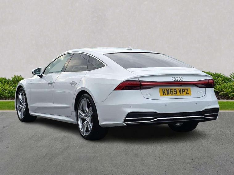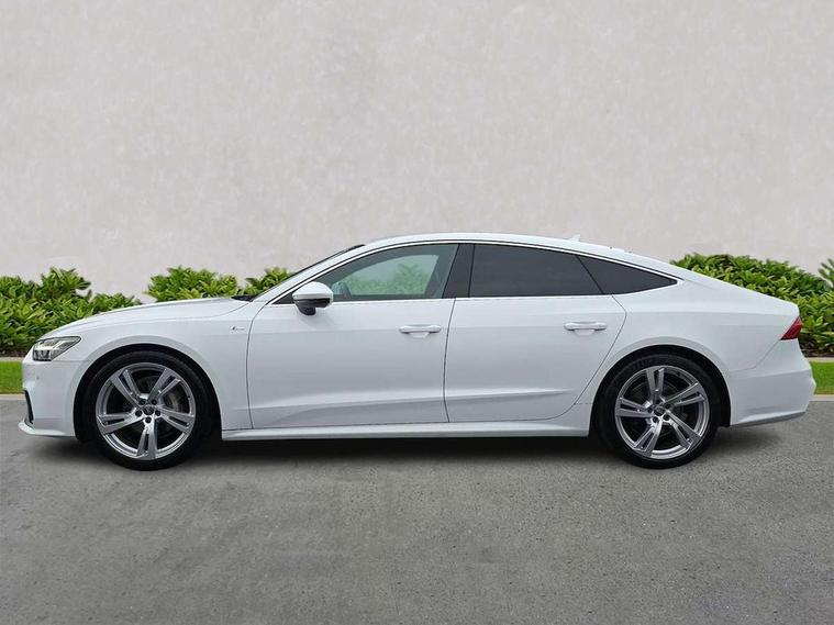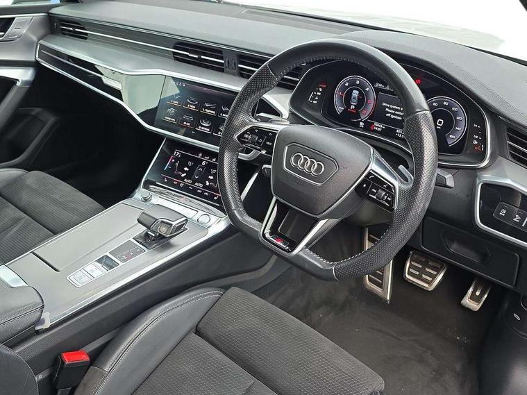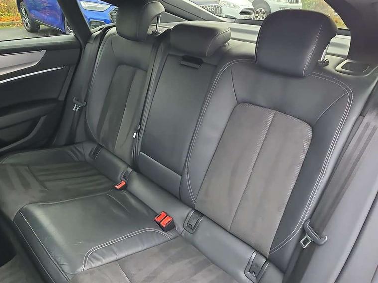 Amazon alexa Integration, Audi connect safety and service (e-call), Audi drive select, Audi parking system plus with front and rear sensors, Audi phone box with wireless charging, Audi smartphone interface, Audi virtual cockpit - 12.3" high resolution LCD digital instrument cluster display, Automatic start/stop system with coasting functionality, Colour driver's information system display, Electric boot lid release, Lane departure warning system, MMI nav plus with MMI touch + 10.1" and 8.6" HD haptic touch screen/3D city models/country information/online map/route info and personal route assist, Operating buttons in black, glass look with haptic feedback, Power operated tailgate, Progressive steering, Rear view camera, Service indicator, Voice control system, 24 litre AdBlue tank, Diesel particulate filter, Sports suspension, Audi music interface - 2 USB ports with charger and data functions, Audi sound system with 6 channel amplifier, 180 watt amplifying capacity and 10 loudspeakers including subwoofer, Auxiliary input socket, DAB digital radio module, Body coloured door mirrors, Coming/leaving home animations in front and rear, Electrically adjustable, heated and folding door mirrors with driver memory function and integrated LED indicators, Frameless auto dimming interior rear view mirror, Front and rear electric windows, HD Matrix LED headlights with dynamic front and rear indicators, Headlight washers, Heat insulating darkened glass in side and rear windows, High gloss black radiator grille with chrome single frame surround, LED rear lights, Privacy glass with dark tinting on rear side windows and rear window, Rain and light sensors, Retractable rear boot spoiler, S line air inlet design with inlay in high gloss black, S Line badge on front fender, S line badge on front grille, S Line Black rear diffuser with chrome inlays and rear grille, S Line front and rear bumpers, S Line side skirts, Signature LED daytime running lights, Towbar preparation, Windscreen with acoustic glazing, 2 zone deluxe electronic climate control, 4-way electric lumbar support, 40/20/40 split folding 3 seater rear seat bench with rear centre armrest, Black cloth headlining, Electrically adjustable front seats - driver seat with memory, Front and rear headrests, Front centre armrest, Heated front seats, Height/reach adjust steering wheel, Illuminated door sill trims with S logo, Illuminated sun visors with vanity mirrors, ISOFIX child seat mounting and Top Tether with front passenger airbag deactivation, Leather gear knob, Leatherette upper instrument panel and door shoulders, Luggage compartment floor, S line front and rear floor mats with contrast stitching, Stainless steel pedals and foot rest, Tool kit and car jack, LED interior ambient lighting pack - A7, Non smoking pack - A7, 3 point seatbelts on all seats, Driver and passenger airbags, Electromechanical parking brake, Electronic stabilisation control including ABS, ASR and EDL, Extended pedestrian protection measures, Hill hold assist, Seatbelt monitoring, Tyre pressure warning light, Warning triangle and first aid kit, Anti theft alarm with tow away protection, Anti-theft wheel bolts and wheel loosening detection, Immobiliser, Keyless Go, Preparation for tracking system, Remote central locking,