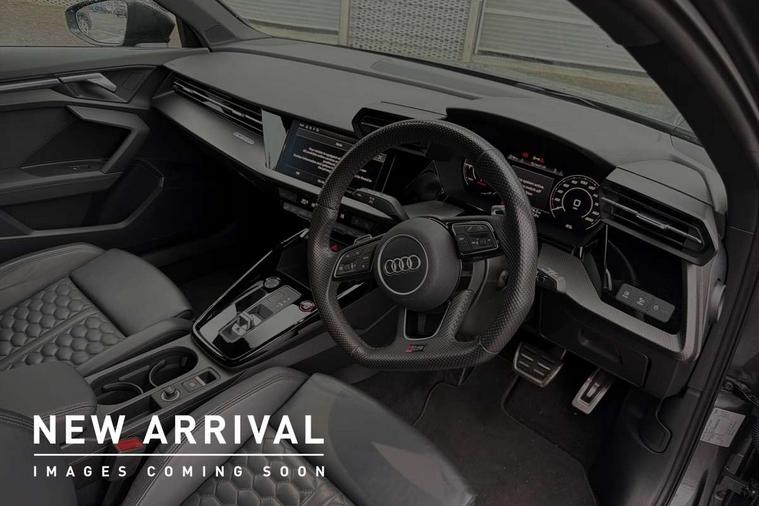 Audi connect emergency call and service, Audi smartphone interface, Audi virtual cockpit with RS specific display 12.3" full colour digital instrument cluster, Automatic start/stop system with recuperation, Bluetooth interface, Collision avoidance assistant, Lane departure warning system, Legal emergency call, Manual boot opening, Parking assist with parking system plus, Progressive power assisted steering, Quattro permanent four wheel drive, Rear suspension, DAB Digital radio, 3rd brake light, Acoustic glass windscreen, Audi beam uses LEDs to project the Audi sport logo onto the ground as you exit your RS 3, Audi matrix LED headlights, LED rear lights, dynamic front and rear indicators and headlight cleaning system, Auto dimming rear view mirror, Body colour roof, Carbon exterior door mirror, Carbon fibre engine cover, Carbon roof spoiler, Door mirrors - electrically adjustable, heated, folding and auto dimming on both sides, Headlight washers, Light and rain sensors, Privacy glass - dark tinted rear and rear side windows from B-pillar backwards, Rear window wiper and washer system, RS exterior features in gloss black, RS sports exhaust system, Side skirt in carbon inlay, 40/20/40 split folding rear seat bench, Black cloth headlining, Dual zone electronic climate control, Front and rear headrests, Front centre armrest, Front sports seats RS embossed logo, Front/rear floor mats, Heated front seats, Honeycomb stitching and RS embossing, Illuminated door sill trims inlays in aluminium with RS 3 logo, Manually adjustable front seats, RS emblems, Stainless steel pedals and front footrest in black, Aluminium interior elements pack - RS3, Ambient lighting pack - RS3, MMI navigation plus with MMI touch - RS3, RS bodystyling - RS3, Storage Pack - RS3, 3x3 point rear seat belts, ABS/EBD, ASR, Audi pre sense front, Driver/Front Passenger airbags, EDL, ESC - Electronic Stability Control + traction control, Front passenger airbag deactivation, Front side airbags with head airbags and interaction airbag, Hill hold assist, Seat belt reminder with passenger presence detection in rear, Tyre pressure loss indicator, Warning triangle and first aid kit, Anti theft alarm, Anti-theft wheel bolts, Electronically operated child lock, Remote control central locking, Carbon inlays, accent surfaces in the dashboard and centre console in platinum grey silk effect paint finish, Full decorative carbon trim, 19" 5 Y spoke matt black alloy wheels, Tool kit, Tyre repair kit,