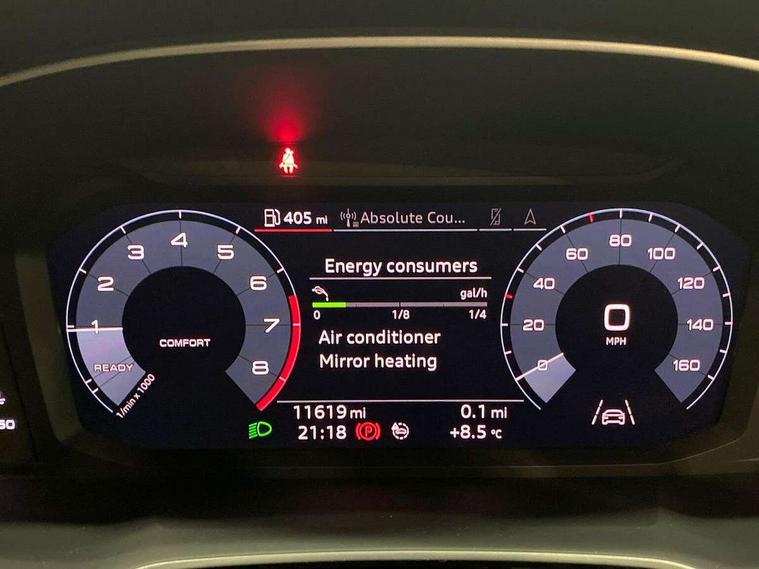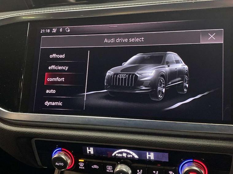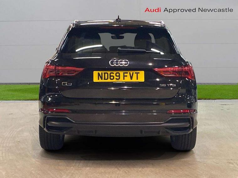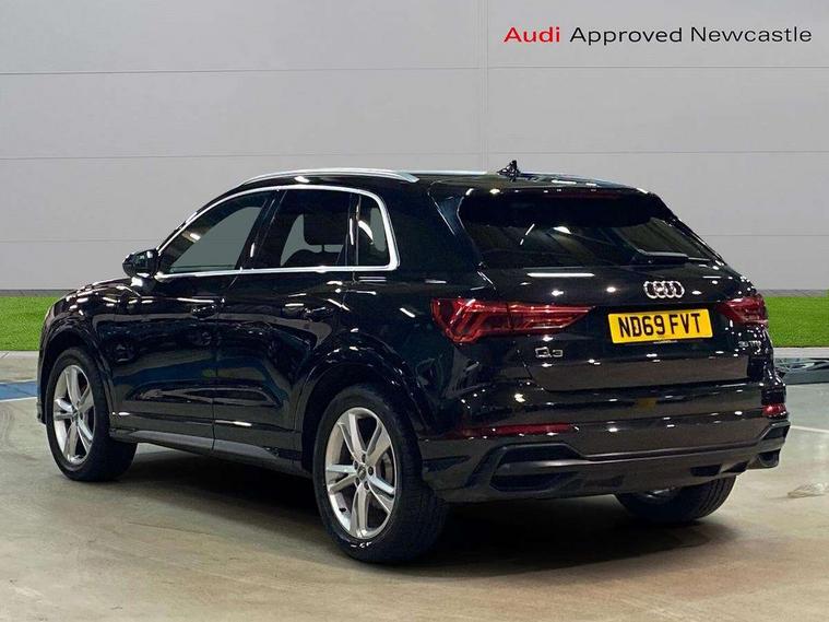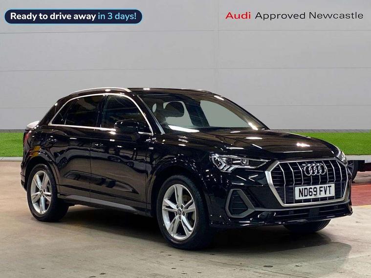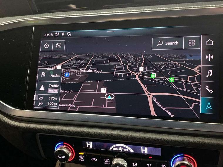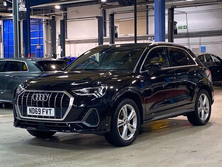 Audi connect safety and service (e-call), Audi drive select, Audi lane departure warning, Audi side assist, Audi smartphone interface, Audi Virtual Cockpit - 10.25" display, Bluetooth interface, Camera based traffic sign recognition, Cruise control + speed limiter, MMI navigation plus with MMI touch, Power opening/closing tailgate, Progressive steering, Rear parking sensors, Service interval indicator, Stop/start system, Voice control system, Sports suspension, 1 x USB type C and 1 USB type A charging points, 6 speakers, DAB digital radio module, Acoustic windscreen, Aluminium roof rails, Aluminium window trim, Auto dimming rear view mirror, Body coloured bumpers, Diffuser in matt Platinum grey, Electrically adjustable and heated door mirrors with integrated LED side indicators, Front and rear electric windows, Front fog lights, Front side air inlets in matt platinum grey, Front spoiler blade in matt platinum grey, Grille vertical bars in aluminium silver/Matt, High gloss black finish B and C pillars, LED headlights with LED daytime running lights and dynamic rear indicator, LED rear lights, Privacy glass, Rain and light sensors, Rear diffuser strip in matt titanium black, S Line badge on wings, S Line front and rear bumpers, Side skirt insert in matt Platinium grey, Titanium black radiator grille, 12V socket in rear centre console, 40:20:40 split folding rear bench seat, Adjustable rear seat bench/backrest with centre armrest and cupholder, Aluminium door sill trims, Black cloth headlining, Dual zone climate control, Front and rear black floor mats with contrast stitching in rock grey, Front and rear headrests, Front and rear roof module including reading lights, Front centre armrest with storage compartment and angle adjustment, Glove compartment lighting, Height and reach adjustable steering wheel, Illuminated door sill trims with S logo, ISOFIX child seat mounting and Top Tether with front passenger airbag deactivation, Luggage compartment light, Manual front seats with height adjustment, Perforated leather gearknob, Stainless steel luggage compartment sill finisher, Stainless steel pedals, Non smoking pack - Q3, 3x3 point rear seatbelts, 6 airbags - Driver, front passenger, curtain and side windows, Audi pre-sense front with pedestrain and cyclist recognition, Electrically operated child locks on rear doors, Electromechanical parking brake, Electronic stabilisation control including ABS, ASR and EDL, Hill descent control, Hill hold assist, Pre sense basic, Seatbelt monitoring, Tyre pressure warning, Warning triangle and first aid kit, Anti theft alarm, Anti theft wheel bolts, Remote central locking, Dark matt brushed aluminium inlay, MMI touch colour display in gloss black with aluminium surround,