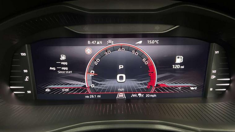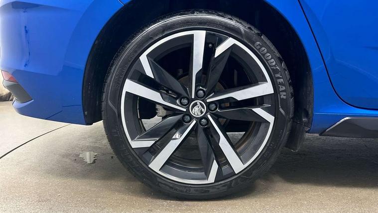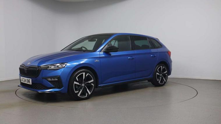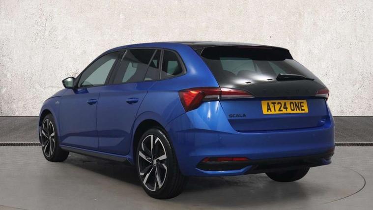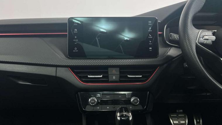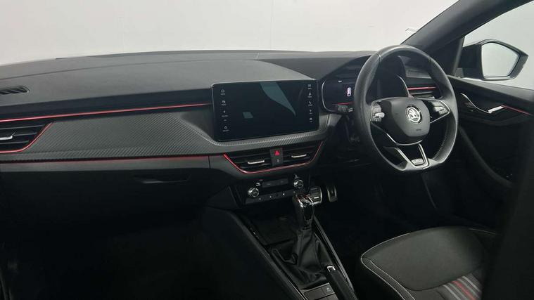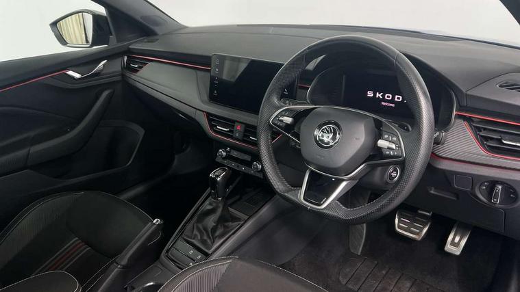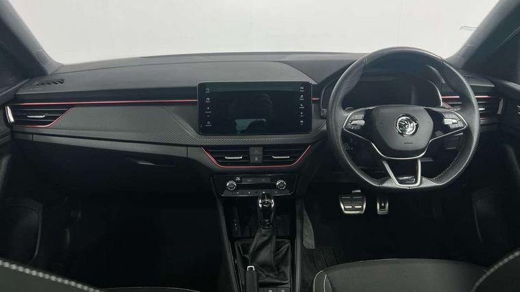 Advanced driver attention and drowsiness monitor, Bluetooth, e-Call (emergency call), Front assist system, PAS, Rear parking sensors, Speed limiter, Tailgate, Traffic sign recognition, Virtual Cockpit - 10.25" digital display, Voice control system, Wireless smartlink, 4 USB C ports, 8 speakers, 9.2" Skoda navigation display, DAB radio, Auto dimming rear view mirror, Automatic headlamp activation with Coming home and Leaving home feature, Automatic high/low beam, Automatic intermittent wipers, Black door mirrors, Black lettering on boot lid, Black radiator grille, Black rear diffuser, Black roof spoiler, Body colour bumpers, Body colour door handles, Chrome moulding around grille, Extended tailgate glass, Front and rear electric windows, Heated rear window, LED 3rd brake light, LED brake lights, LED daytime running lights, LED high beam, LED low beam, LED taillights, Light sensors, Monte carlo plaque, Panoramic glass roof, Privacy glass, Rear LED fog light, Rear side wing doors, Rear wiper, Tinted windows, 12V socket in luggage compartment, 3 seat bench in 2nd row, Aluminium pedals, Ambient lighting in white/red, Black / White armrest stitching, Black ceiling, Black roof headlining, Cargo elements, Chrome inner door handles, Door inserts in art.leather carbon, Driver and passenger sun visors with vanity mirror, Dual zone climate control, Front and rear roof lights, Front centre armrest, Front head restraints, Height adjustable driver seat, Height adjustable passenger seat, Ice scraper, Illuminated glove compartment, Inner circulation control with pollen filter, ISOFIX for passenger seat, Isofix preparation for back seats, Leather gearknob and handbrake lever, Luggage net under rear parcel shelf, Manual lumbar support for front seats, Monte carlo cloth upholstery, Net package and top tether hooks in boot space, Pocket on the back of both front seats, incl. mobile phone pockets, Rear centre armrest, Red hotstamping, Single front passenger seat, Sport seats, Textile floor mats, Third rear headrest, Ticket holder, Top tether for front passenger seat, Umbrella in driver's door, Light and view plus pack - Scala, 3x3 point rear seatbelts, ABS, Child locks, Curtain airbags and front side airbags, Disc brakes, Driver and front passenger airbags, ESP, Hill hold control, Manual leather parking brake, One tone horn, Passenger airbag switch off function, Seatbelt reminder for driver and front passenger, Tyre pressure monitoring system, Anti theft alarm system with interior monitoring, backup horn and towing protection, Anti-theft wheel bolts, Remote central locking with 2 remote folding keys, SAFE function for remote central locking, Carbon effect decorative inserts, 18" Ursa black diamond cut alloy wheels,
