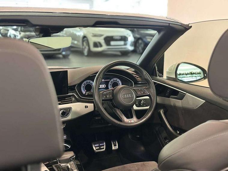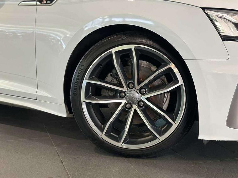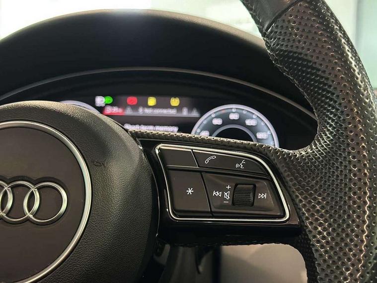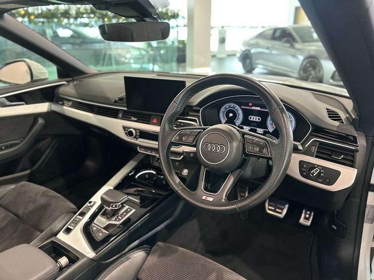 Audi connect safety and service (e-call), Audi drive select (Auto, Comfort, Dynamic and Individual), Audi parking system plus with front and rear sensors, Audi phone box with wireless charging, Audi smartphone interface, Audi virtual cockpit - 12.3" full colour digital instrument cluster, vehicle/engine speed, Radio/media information+Driver assistance systems, Automatic start-stop system with coasting functionality and efficiency programme, Bluetooth interface, Electric boot lid release, Electro-mechanical power steering, Email, calendar and text messages displayed via MMI, MMI nav+ with MMI touch - 10.1" high resolution MMI display, touch sensitive, 3D map, route/country info, dynamic route guide, personal route assist, Rear view camera, Service interval indicator, Voice control system, Sports suspension lowered by 23mm, 8 passive loudspeakers, CD player, DAB digital radio reception, Two additional USB ports for rear passenger in rear centre console, Two SDXC card slots, Audi matrix LED headlights with LED rear lights + dynamic front and rear indicators, Auto dimming rear view mirror, Body colour bumpers, Body colour door handles, Body colour front spoiler lip, Body colour side sill trim, Body coloured door mirrors, Electric adjustable heated door mirrors, Electric folding door mirrors, Electric front windows, Front fog lights, Honeycomb structure radiator grille in grained matt black, Matt aluminium silver tailpipe trim, Rain and light sensors, S line badges on front wings, S line front and rear bumpers with side skirts, S Line rear diffuser in matt titanium black with trim strip in matt aluminium silver, Side air inlets in grained matt black with matt aluminium silver inlay, Towbar preparation, Windscreen with acoustic glazing, 4 way electric lumbar support for driver and front passenger, 50/50 split folding 2 seater rear bench seat, Adjustable steering column, Black cloth headlining, Black perforated leather gearknob, Contrast stitching on seats, steering wheel and gear lever gaiter, Deluxe 3 zone electronic climate control, Front centre armrest, Front head restraints, Front/rear floor mats, Heated front seats, Illuminated door sill trim with S logo, ISOFIX child seat mounting and top tether, Luggage compartment mat, Manual seat adjustment, Rear headrests, Stainless steel pedals, Sunvisors with vanity mirrors, Tool kit, LED interior light pack - A5/RS5, 6 airbags - Driver, front passenger, curtain and side airbags, Electromechanical parking brake, Electronic Stabilisation Control (ESC) including ABS, ASR and EDL, Front passenger airbag deactivation, Height adjustable front seatbelts, Hill hold assist, Multi collision brake assist, Pop-up bonnet for pedestrian protection, Seatbelt monitoring, Tyre pressure warning, Variable restraint system, Warning triangle and first aid kit, Anti theft alarm system, Anti theft wheel bolts, Immobiliser, Keyless Go, Remote central locking, Matt brushed aluminium inlays, Tyre repair kit,