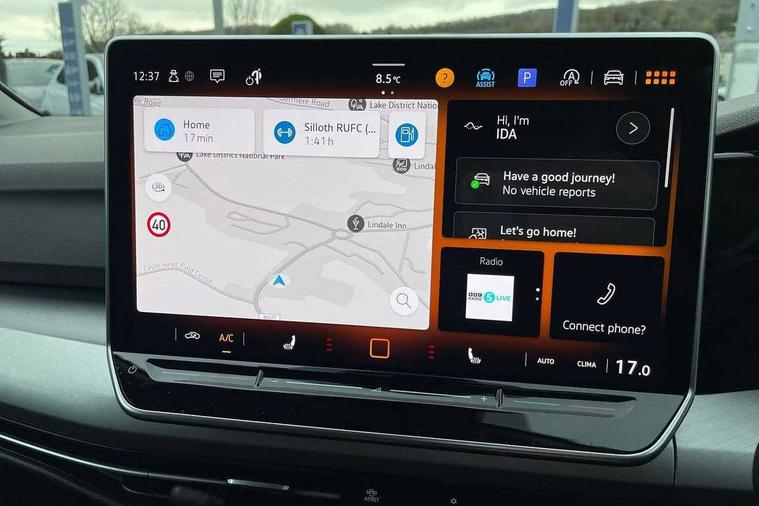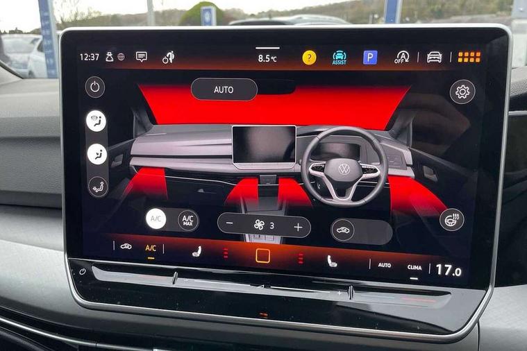 Activated carbon canister, Adaptive cruise control (ACC) with speed limiter and front assist (reacting to vehicles pedestrians and cyclists), Advanced driver attention and drowsiness monitor, Driver alert system, Dynamic road sign display, E-Sim card for online connectivity, eCall emergency call system, Multi-color Digital cockpit pro, selection of different info profile possible, Multifunction camera for distance control, Navigation system, Oncoming vehicle braking when turning including swerve support, Power assisted speed sensitive steering, Preparation for light assist system, Speedo, rev counter, electronic odometer, trip, service interval display, exterior temperature and fuel gauge, Voice assistant and voice enhancer with chat GPT, Warning signal and warning light for front and rear seatbelts not fastened, We connect plus preparation, We connect preparation, Wireless app connect, Petrol Particulate Filter, Start-stop system with battery regeneration (recuperation - energy recovery during braking), XDS electronic differential lock for improved traction and handling, Comfort telephony + wireless charging, without wireless aerial connection, Digital radio reception (DAB), Diversity antenna for FM reception, Infotainment system with 12.9" display, 3rd brake light, Auto headlights, Automatic headlamp activation with Coming home and Leaving home feature, Body colour door handles, Body colour door mirrors, Chrome plated radiator grille inserts and light switch surrounds, Dynamic headlight range control, Exterior mirrors convex on the left and aspherical on the right, Front and rear electric windows, Heat insulating windshield made of laminated glass, LED daytime running lights, LED rear combination lights, Rear exhaust tailpipe, Rear fog light on one side and reversing lights on both sides, Rear side wing doors, Rear tinted glass 65% light absorbing from B pillar backwards, Rear windscreen washer and wiper with interval delay, Remote electrically foldable door mirrors, puddle lights and reverse activated passenger's door mirror, Standard bumpers, Welcome light with surround lighting, 12V socket in front centre console, 12V socket in luggage compartment, 2 USB C ports in front, 2 USB charging sockets on the centre console in the rear charging capacity upto 45W, 3 rear head restraints, 3 seat bench in 2nd row, Front centre armrest, Front head restraints, Front passenger seat, ISOFIX anchors for child seats on outer rear bench seats and on front passanger seat compatible for i-Size, Leather gearshift handle, Luggage compartment lighting, Rear cupholder and loadthough, Soul black instrument panel, Split folding backrest with centre armrest and unsplit rear seat bench, Standard pedal cluster, Storm grey roof lining, Sun visors with illuminated vanity mirrors, 3 point height adj front seatbelts + pretensioners, 3 rear three point seatbelts, ABS, Autonomous emergency braking front assist with pedestrian and cyclist monitoring, Child locks on rear doors, Driver and front passenger airbag with front passenger airbag deactivation, Electronic parking brake with auto hold, ESC (Electronic Stability Control), Extended pedestrian protection measures, Rear disc brakes, Two tone horn, Tyre pressure monitoring system, Volkswagen roadside assistance, Anti theft wheel bolts, Preparation for alcohol interlock, Nature cross brushed decorative inserts for dashboard and front door panels and side trim,