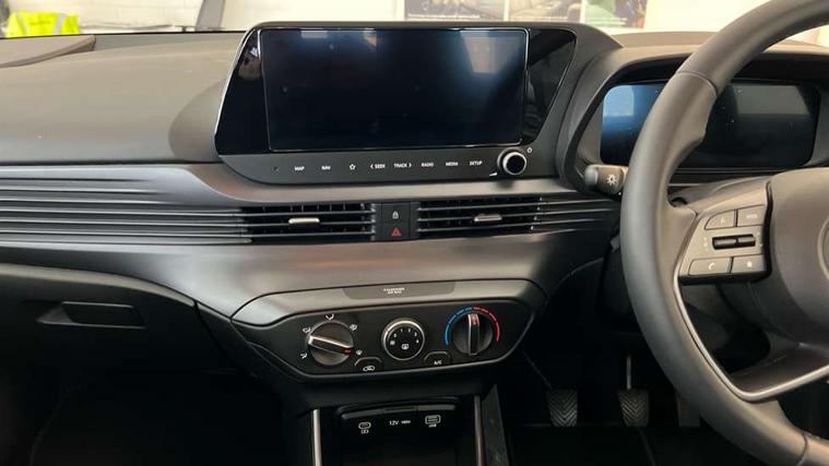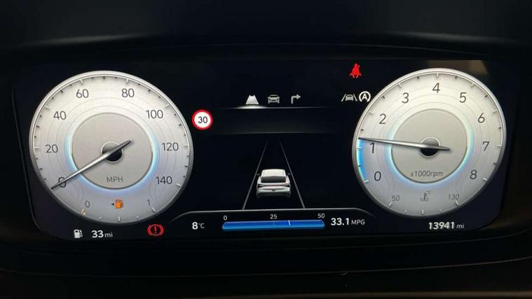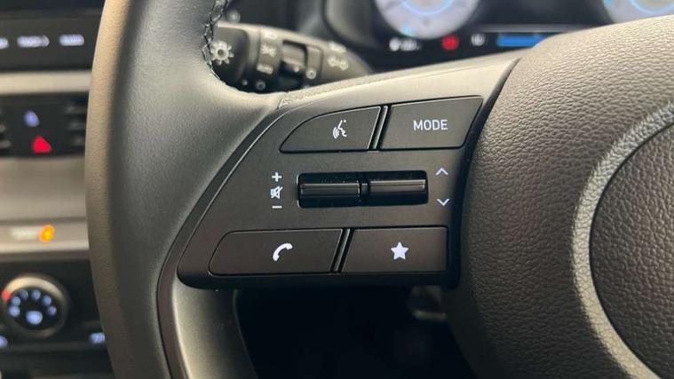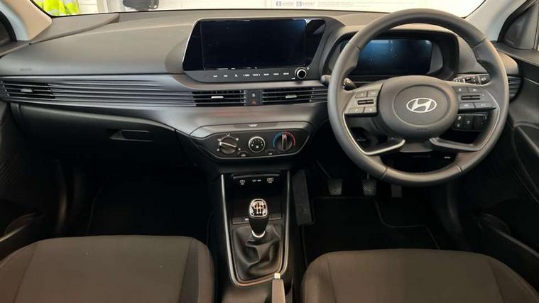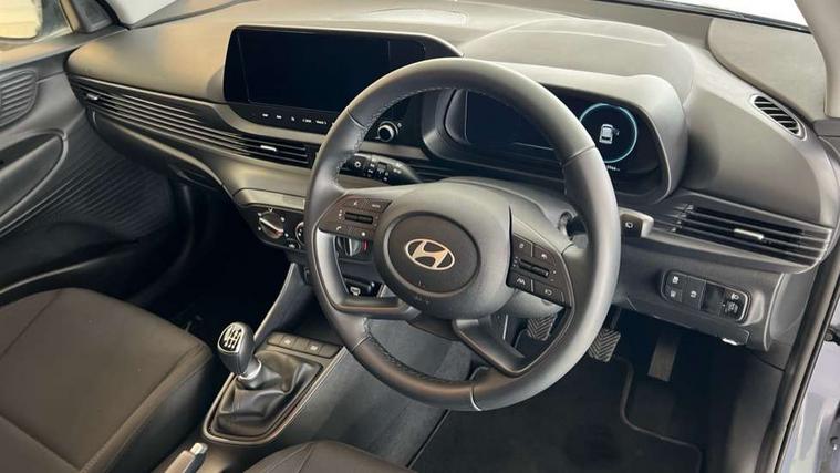 10.25" digital supervision cluster, 2nd Gen eCall, 8" Touchscreen with DAB, Apple car play/Android Auto, Cruise control + speed limiter, Forward collision assist with car, pedestrian and cycle detection, Intelligent speed limit warning, Lane follow assist, Lane keep assist, PAS, Rear parking sensor, Rear view camera with dynamic guidelines, USB C port front, 3rd brake light, Dusk sensor, Electric adjustable heated door mirrors, Front grille mesh pattern design, High beam assist, LED daytime running lights, LED Headlights, LED taillights, Rain sensor, Rear side wing doors, Rear wiper, Repositioned flat metal hyundai emblem, 3 seat bench in 2nd row, Adjustable head restraints, Air conditioning, Cloth upholstery, Floor mats, Leather steering wheel, Single front passenger seat, 3x3 point rear seatbelts, ABS with front and rear diagonally split, Autonomous emergency braking, Child locks on rear doors, Front ventilated disc brakes, Rear solid disc brakes, Tyre pressure monitoring system, 16" alloy wheels, Tyre repair kit,