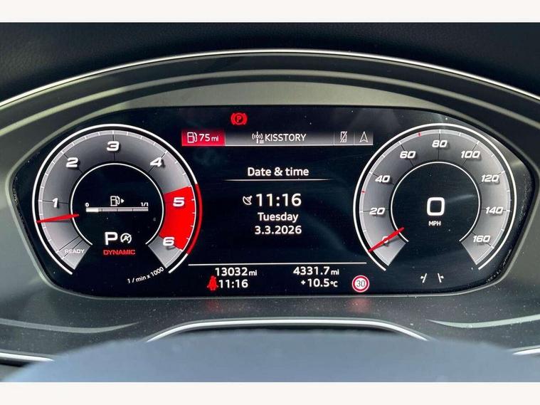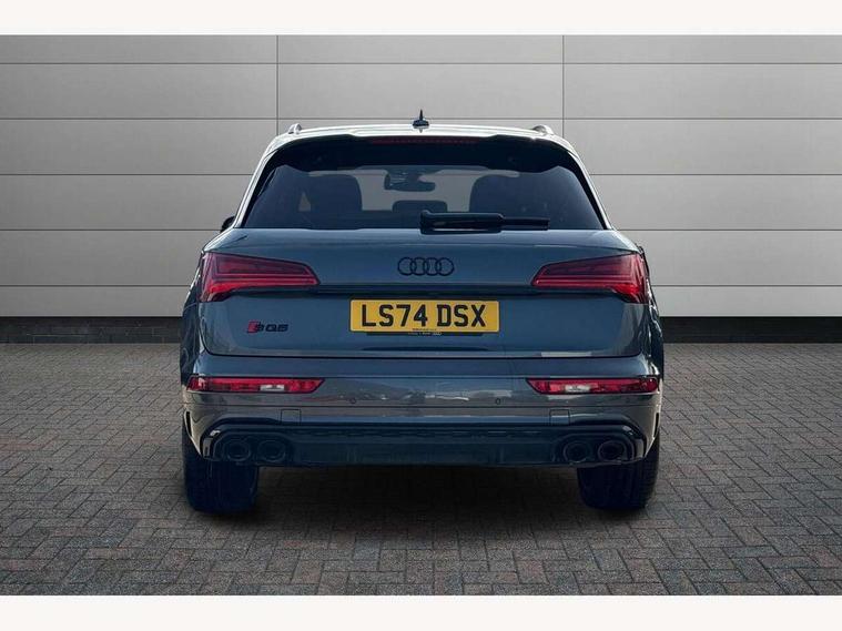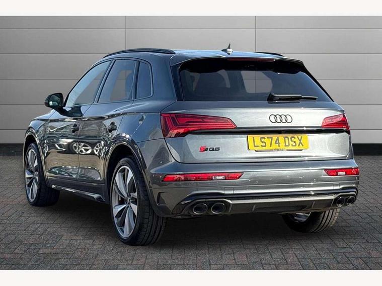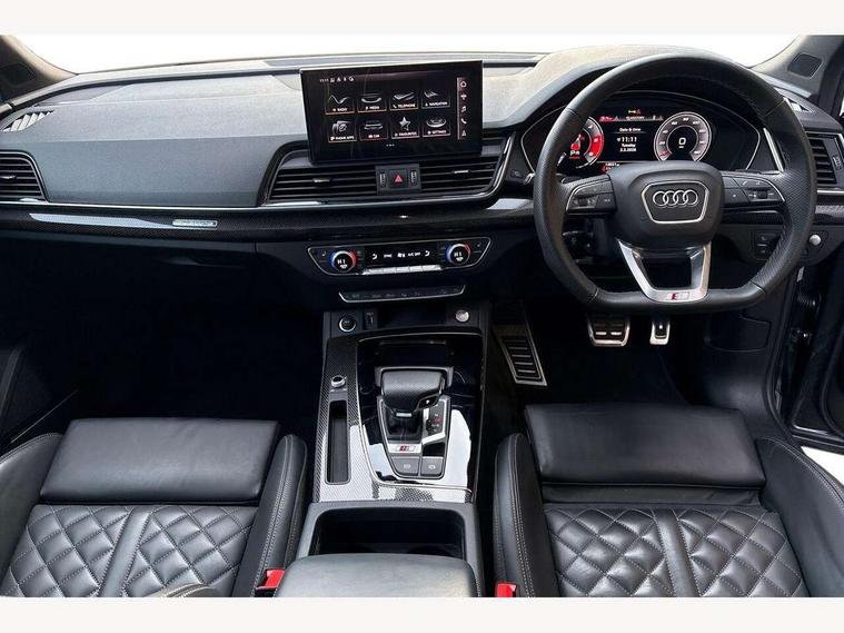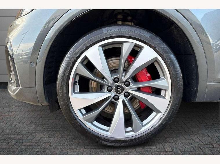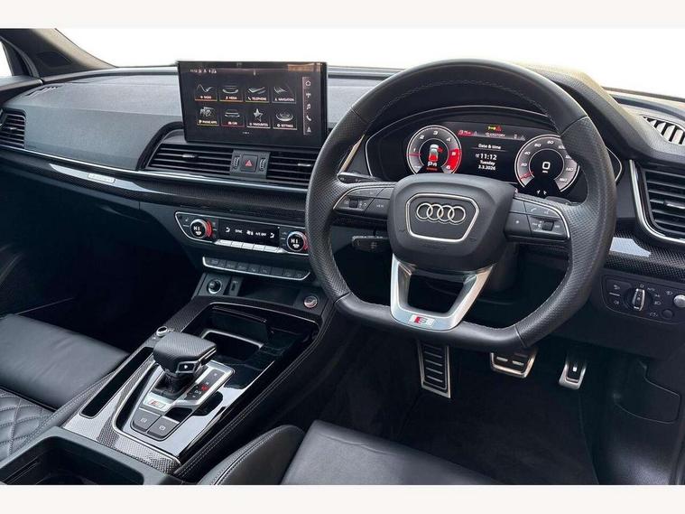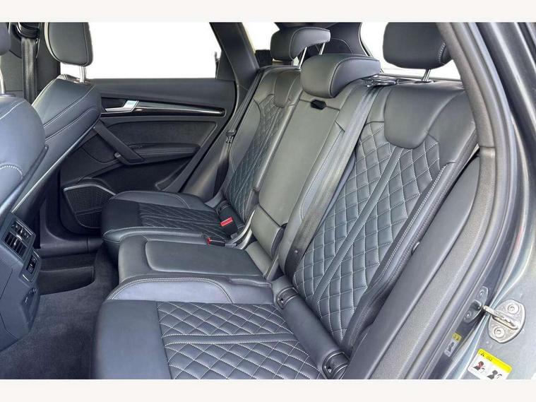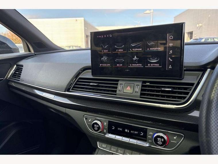 Acoustic front and rear parking sensor, Audi connect safety and service (e-call), Audi drive select, Audi virtual cockpit plus with 12.3" screen and three different layout designs, Audi wireless smartphone interface, Automatic start-stop system with coasting functionality and efficiency programme, Bluetooth interface, Camera based traffic sign recognition, Electro - mechanical power assisted steering, Lane departure warning, MMI navigation plus with 10.1" touch screen, Power tailgate, Reversing camera, Service interval indicator, Voice control system with Audi hotword activation "Hey Audi", 70 litre fuel tank and 24 litre AdBlue tank, Diesel particulate filter, Quattro on demand, S sport suspension with damper control, DAB Digital radio, Acoustic windscreen, Auto dimming door mirrors, Auto dimming frameless rear view mirror, Automatic headlight adjustment, Automatic headlights and windscreen wipers, Black roof rails, Black styling with black rings, Body colour underbody protection, Chrome plated exhaust trims, Daytime running lights, Door sills in Selenite silver, Electric adjustable/heated/folding door mirrors, Front air inlet surrounds in aluminium, Front and rear electric windows, Front radiator grille in honeycomb design, LED 3rd brake light, LED rear lights, Loading edge protection in stainless steel, Lower bumpers painted in contrast Manhattan grey, Rear chrome trim strip below lights, Rear privacy glass and rear side windows, Rear side wing doors, Rear wiper, Roof bars, S bumpers in full body paint finish, S Line badges on the front wing panels, S Line rear spoiler, S Line side skirts, S specific rear diffuser, 2 x USB charging port with aux input socket, 3 rear headrests, 3 seater rear seat bench, Black cloth headlining, Comfort front centre armrest, Contrast stitching on seats, steering wheel and gear lever gaiter, Deluxe 3 zone electronic climate control, Fine Nappa leather upholstery, Front head restraints, Front sport seats with S embossed logo, Front/rear floor mats, Gear lever in black leather, Heated front seats, Height/reach adjustable steering column, Illuminated door sill trims with S logo, Luggage compartment cover, Manual seat adjustment with 4-way electric lumbar support, Massage function for front seats, Rear seat bench plus-adjust for forwards/backwards position/backrest angle, load through hatch and remote backrest release, Single front passenger seat, Stainless steel pedals, Sunvisors with vanity mirrors, Extended interior upholstery pack - Q5, High gloss pack - Q5, Technology pack - Q5 SUV/Sportback, 3 point seatbelts on all seats, 6 airbags - Driver, front passenger, curtain and side airbags, Attention and drowsiness assist, Electrically operated child locks on rear doors, Electromechanical parking brake, Electronic stabilisation control including ABS, ASR and EDL, First aid kit with warning triangle and vests, Front passenger airbag deactivation, Hill descent control, Hill hold assist, ISOFIX child seat mounting for front passenger seat and ISOFIX child seat mounting with Top Tether for outer rear seats, Multi collision brake assist, Pop-up bonnet for pedestrian protection, Pre sense city, Seatbelt monitoring, Tyre pressure warning, Anti theft alarm, Anti-theft wheel bolts, Remote central locking, Remote control key with SAFELOCK and keyless go, Air vents inserts and centre console in gloss black, Tool kit, Tyre repair kit,