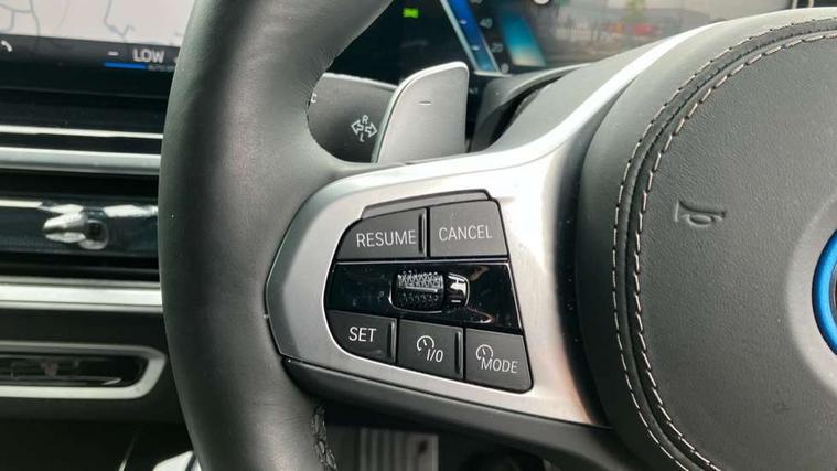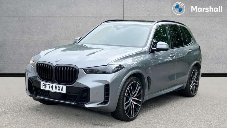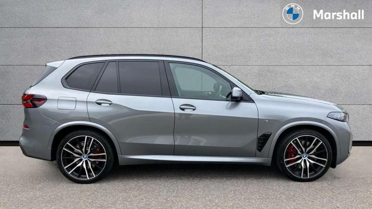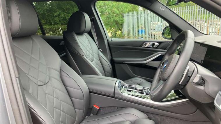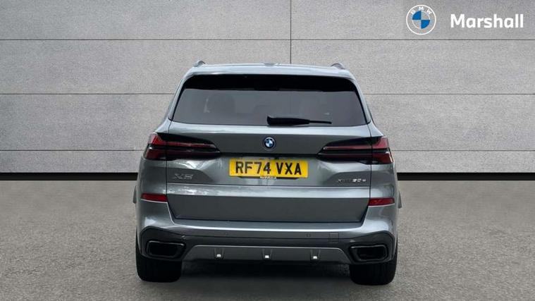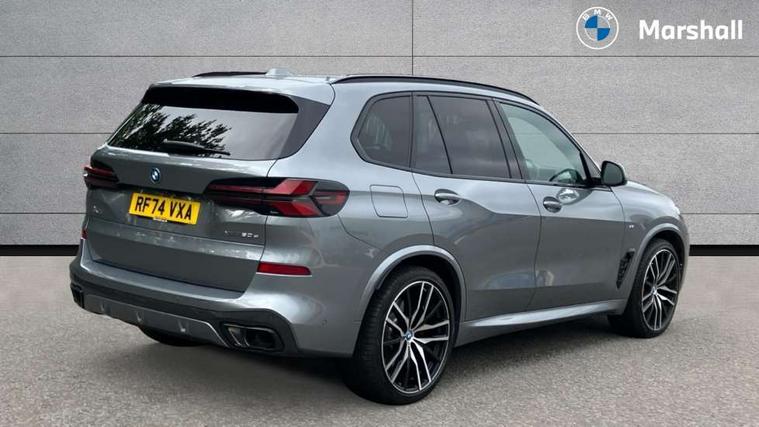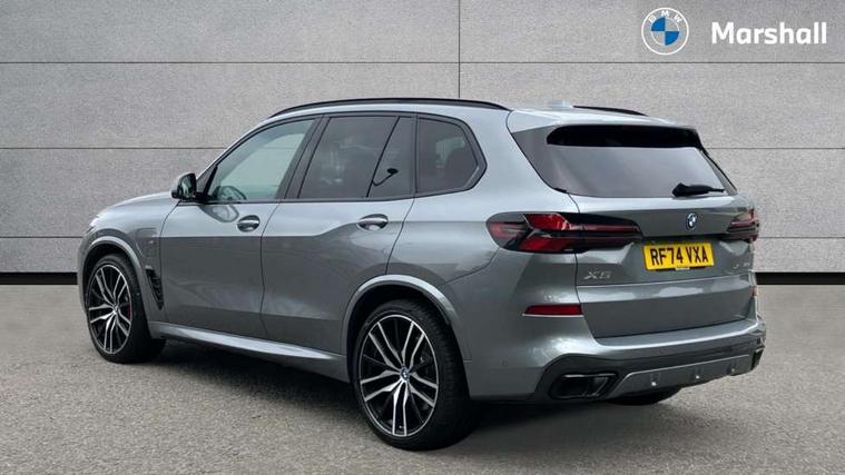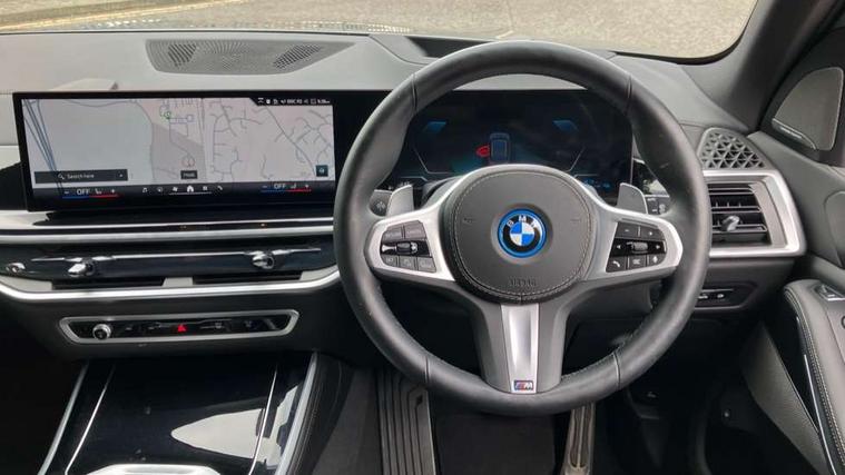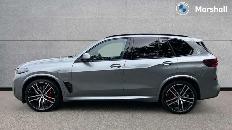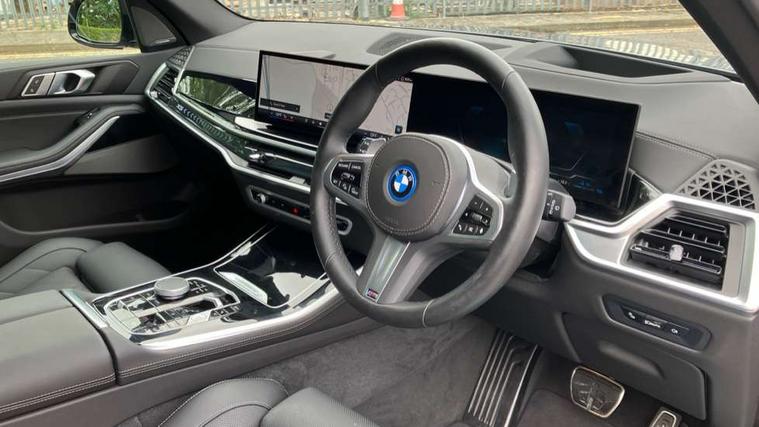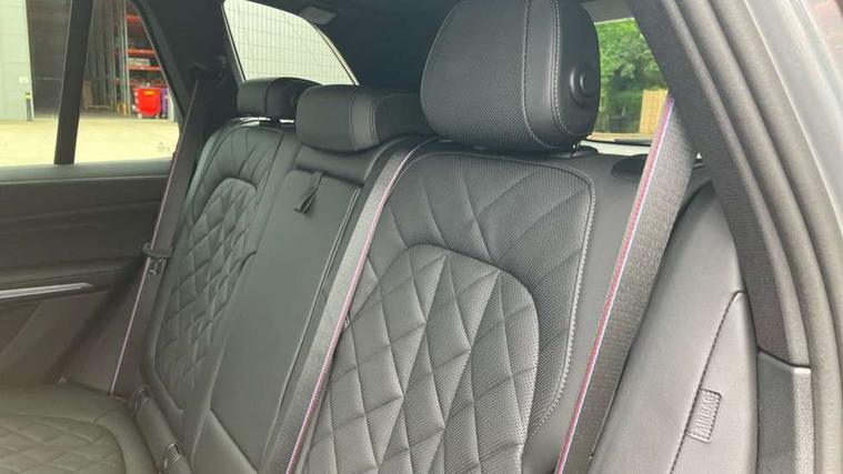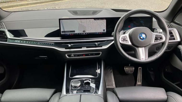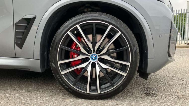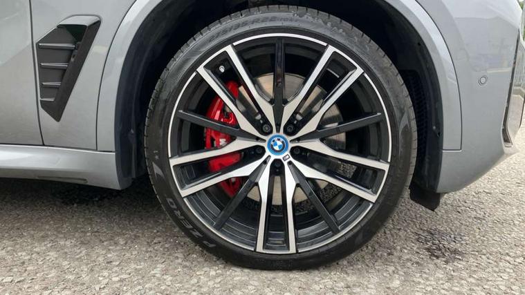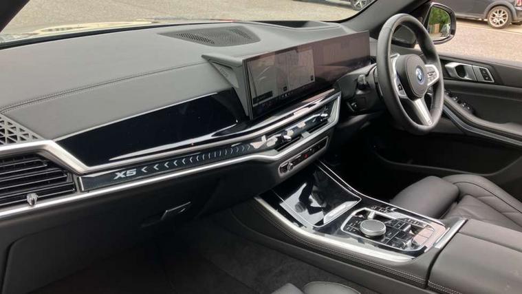 Attentiveness assist, Automatic tailgate operation, BMW ConnectedDrive online services, BMW live cockpit + with curved 12.3 instrument cluster/14.9 central display, nav/Tuner with diversity reception, RDS/4GLTE/remote software upgrade, BMW Teleservices, Condition based service, Cruise control with brake assist, eCall emergency call system, Enhanced bluetooth with wireless charging, Integral active steering, Integrated owner's handbook, PAS, Speed limiter, Wi-Fi hotspot, AC Fast charging preparation (Maximum charging power 11kW), Adaptive 2-axle Front and rear air suspension, Drive performance control with ECO PRO comfort + sport mode, Eight speed steptronic sport automatic transmission and gearshift paddles on the steering wheel, Hi-Fi loudspeaker system, Adaptive LED Headlights, Front and rear electric windows, High beam assistant, High gloss black shadow line roof rails, LED daytime running lights, Rain sensor, Rear side wing doors, Third brake light in rear spoiler, Variable intermittent rear wash/wipe, 12V - Power sockets with 2x centre console and 1x luggage compartment, 3 seat bench in 2nd row, Foldable rear centre armrest with 2 cupholders and storage compartment, Front and rear side armrest integrated into door trim, Headrests for all seats, Luggage compartment separating net, Single front passenger seat, Three spoke sport M leather steering wheel, Velour floormats, Ambient light interior pack - X5, Driving assistant pack with radar based driver assistance system - X5, Expanded exterior mirror pack - X5/X5 M, M aerodynamics pack - X5, 3 rear seatbelts, Acoustic protection for pedestrians, Active protection, Airbags - driver/front passenger, rear and side, first and second row seats head airbags, front passenger seat airbag deactivation + knee airbag, Anti-lock braking system (ABS), Automatic Stability Control (ASC), Brake energy regeneration, Cornering brake control (CBC), Crash sensor activating central locking release, hazard warning lights, fuel cut off, interior lighting + activation of safety battery terminal clamp, DSC - Dynamic Stability Control, Dynamic Traction Control - DTC, Electromechanical parking brake with automatic drive away release and auto hold function, Electronic brake force distribution, Hill start assistant, M Sport blue painted brake calipers with 'M' designation, Mechanical child proof lock on rear doors, Tyre pressure monitoring system, Tyre pressure sensors, Ventilated front and rear disc brakes, Warning triangle and first aid kit, Alarm system, Closing system with central locking, Comfort access system, Locking wheel bolts,