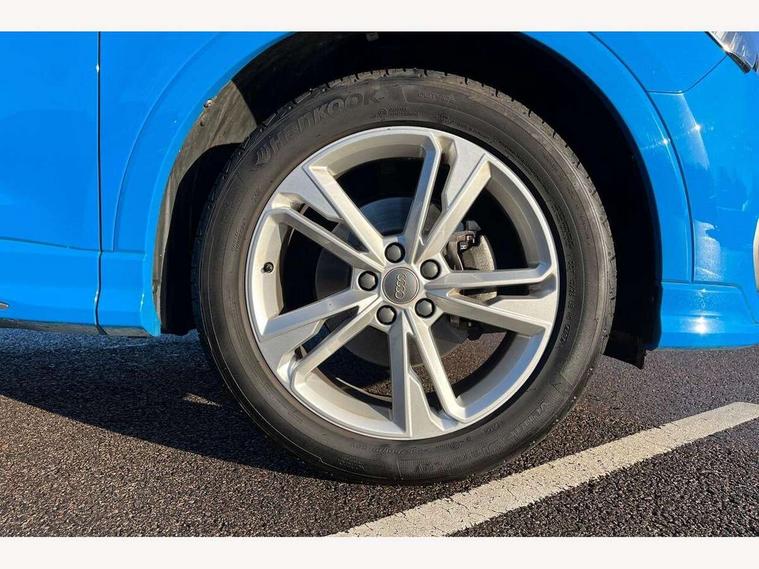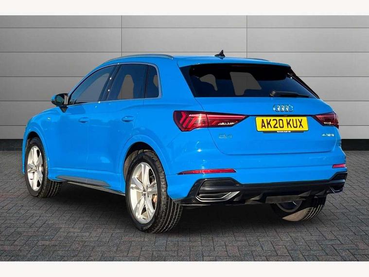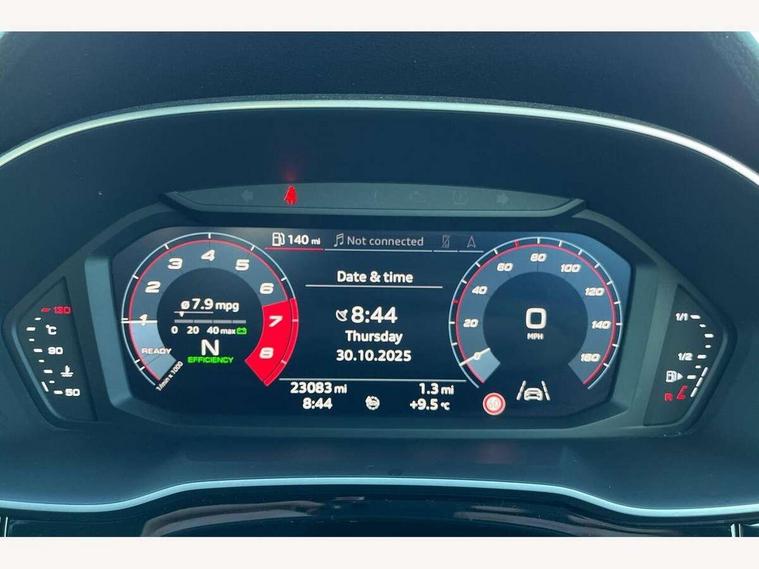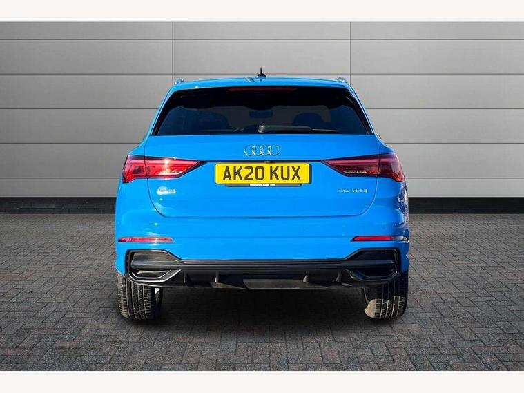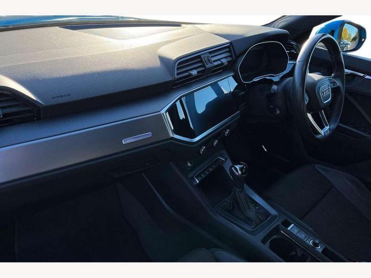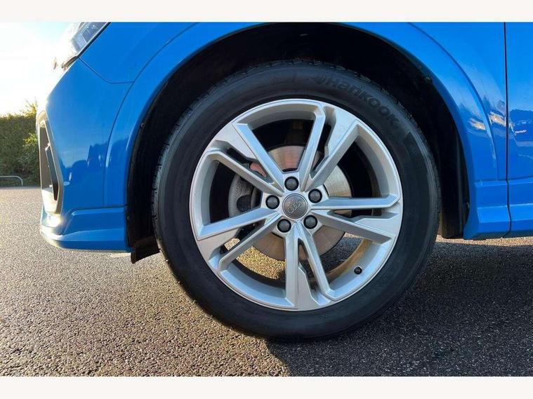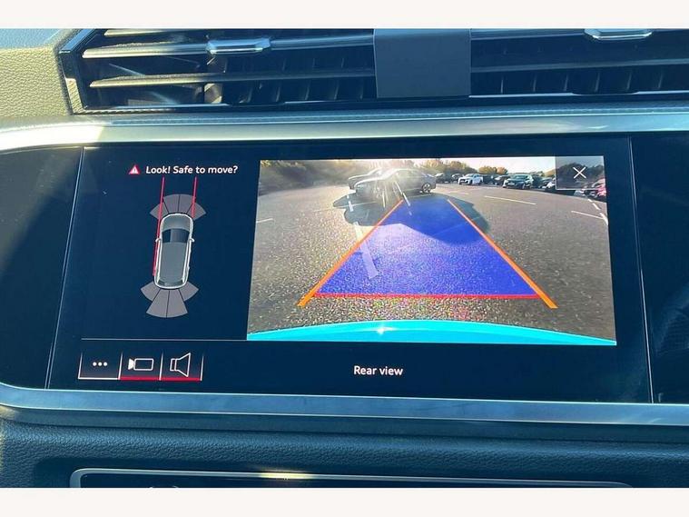 Audi connect safety and service (e-call), Audi drive select, Audi lane departure warning, Audi side assist, Audi smartphone interface includes wireless Apple carplay/Android Auto, Audi Virtual Cockpit - 10.25" display, Bluetooth interface, Camera based traffic sign recognition, MMI Navigation Plus with high resolution 10.1 inch touchscreen colour display, Power operated tailgate, Progressive steering, Service interval indicator, Start stop system with recuperation, Voice control system with natural language interaction, 48V Mild hybrid technology, Sports suspension, 1 x USB type C and 1 USB type A charging points, 6 passive loudspeakers, DAB digital radio module, Acoustic windscreen, Aluminium roof rails, Aluminium window trim, Auto dimming frameless rear view mirror, Body coloured bumpers, Electrically folding, adjustable and heated door mirrors with integrated LED side indicators and kerb view function for passenger side, Front and rear electric windows, Front fog lights, Front side air inlets in matt platinum grey, Front spoiler blade in matt platinum grey, Grille vertical bars in aluminium silver/Matt, High gloss black finish B and C pillars, LED headlights with LED daytime running lights and dynamic rear indicator, LED rear lights, Privacy glass dark tinted rear and rear-side windows (from B-pillar backwards), Rain and light sensors, Rear diffuser strip in matt titanium black, S line badges on front wings, S Line front and rear bumpers, Side skirt insert in matt Platinium grey, Silver chrome grille surround, Titanium black radiator grille, 12V socket in rear centre console, 40:20:40 folding with manual adjustment for 60:40 forwards/backwards position and backrest angle, Adjustable rear seat bench/backrest with centre armrest and cupholder, Black cloth headlining, Dual zone electronic climate control, Front and rear black floor mats with contrast stitching in rock grey, Front and rear headrests, Front and rear roof module including reading lights, Front centre armrest, Glove compartment lighting, Height and reach adjustable steering wheel, Illuminated door sill trims with S logo, ISOFIX child seat mounting for front passenger with airbag deactivation and outer rear seat including top tether attachment point for outer rear seats, Luggage compartment light, Manual front seats with height adjustment, Perforated leather gearknob, Stainless steel luggage compartment sill finisher, Stainless steel pedals, Tool kit, Non smoking pack - Q3, 3x3 point rear seatbelts, 6 airbags - Driver, front passenger, curtain and side windows, Electrically operated child locks on rear doors, Electromechanical parking brake, Electronic stabilisation control including ABS, ASR and EDL, Hill descent control, Hill hold assist, Pre sense basic, Seatbelt monitoring, Tyre pressure warning, Warning triangle and first aid kit, Anti theft alarm, Anti theft wheel bolts, Audi pre-sense front with pedestrain and cyclist recognition, Remote central locking, Dark matt brushed aluminium inlay, Leatherette door armrest, MMI touch colour display in glass look, black with surround in aluminium look, Tyre repair kit,