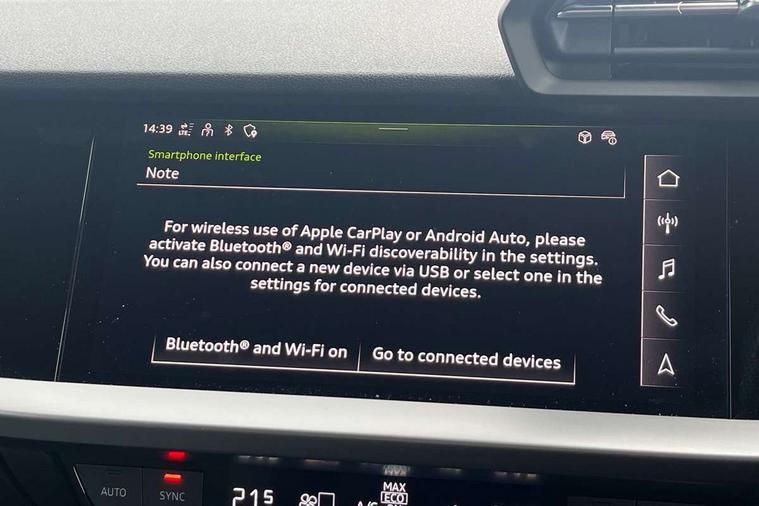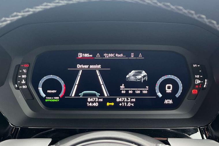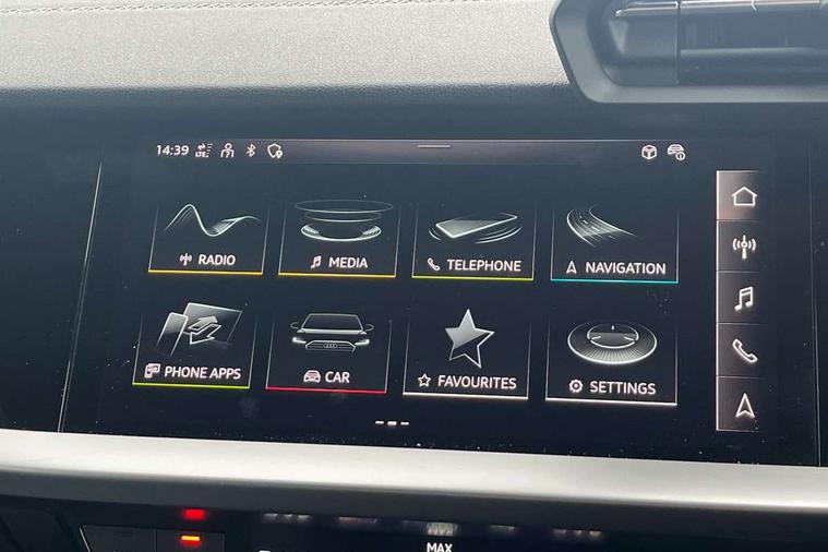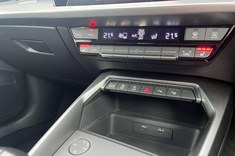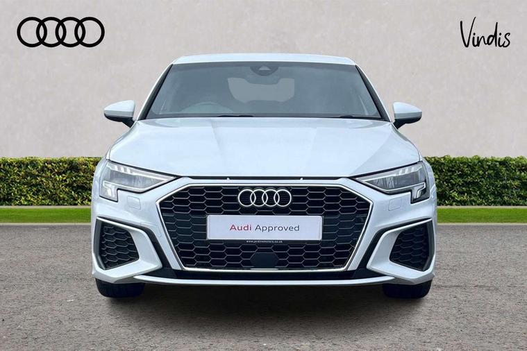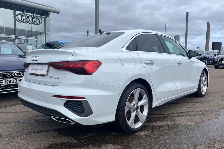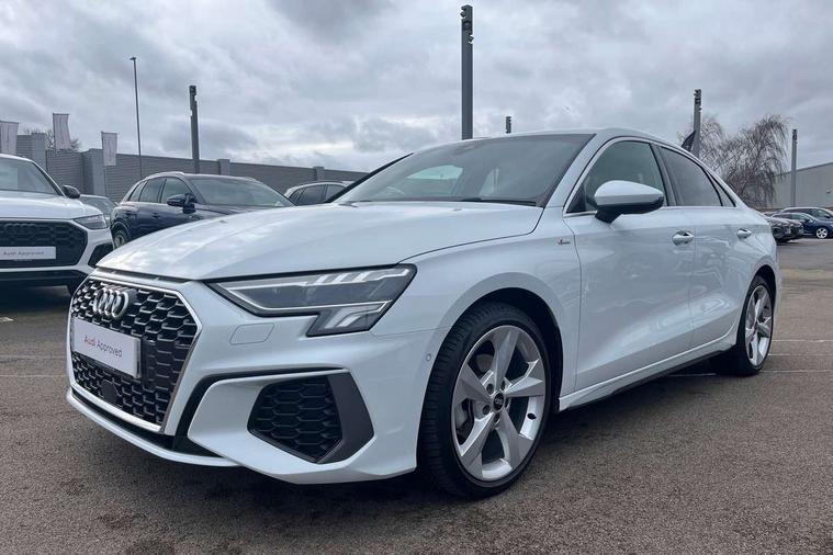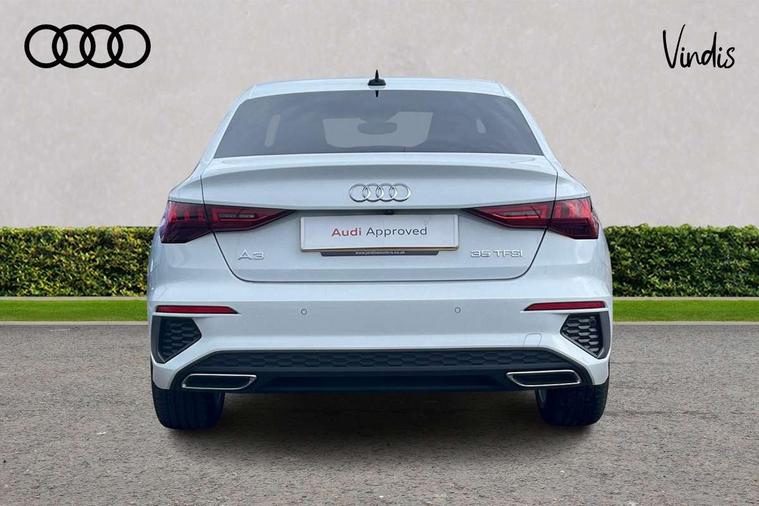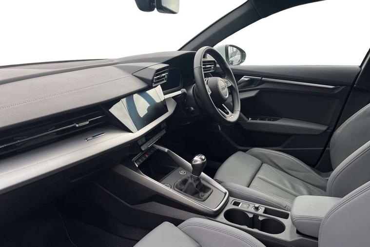 Audi connect emergency call and service, Audi drive select (Auto, Comfort, Dynamic, Efficiency and Individual), Audi smartphone interface, Audi Virtual Cockpit - 10.25" digital and colour instrument cluster, Automatic start/stop system with recuperation, Bluetooth interface, Collision avoidance assistant, Cruise control + speed limiter, Electromechanical power speed sensitive steering, Lane departure warning system, MMI Navigation Plus with high resolution 10.1" colour touch screen display, Rear parking sensors, Service indicator, Voice control system with natural language interaction, 2x USB Type C ports (for charging and data transfer), 6 passive loudspeakers, CD player, DAB Digital radio, 3rd brake light, Acoustic glass windscreen, Aluminium window trim, Auto dimming frameless rear view mirror, Electrically adjustable/heated/folding/dimming door mirrors with kerb view includes integrated LED indications + kerb view function for passenger side, Front electric windows, Illuminated door sills with aluminium inserts at the front with S logo, LED daytime running lights, LED headlights with LED rear lights and dynamic rear indicators, Light and rain sensors, Model and engine designation badges at rear, Privacy glass - dark tinted rear window, rear door and side windows, Rear boot, Rear electric windows, Rear side wing doors, S line bumpers, S roof spoiler, 12V socket and storage compartment in front centre console, 3 seat bench in 2nd row, 40/20/40 split folding rear seat bench with cupholder, Black cloth headlining, Dual zone electronic climate control, Front and rear centre armrest in leather, Front and rear headrests, Front/rear floor mats, Height and reach adjustable steering wheel, Illuminated vanity mirror, Interior lighting - glove compartment light and right hand side, Luggage compartment floor covering, Manual boot compartment lid, Manually adjustable front sport seats, Seat side bolsters, Single front passenger seat, Stainless steel pedals and front footrest in black, Twin leather upholstery with front sports seats S embossed logo, Aluminium interior elements pack - A3 Saloon, LED interior lighting pack - A3 Saloon, S line styling pack - A3 Saloon, 3x3 point rear seat belts, Driver and front passenger airbag with passenger airbag deactivation, Electronic Stabilisation Control (ESC) including ABS, ASR and EDL, First aid kit with warning triangle and 2 safety vests, Front side airbags with head airbags and interaction airbag, Hill hold assist, Pre-sense front with pedestrian and cyclist detection, Seatbelt monitoring, Tyre pressure loss indicator, Anti theft alarm, Anti-theft wheel bolts, Electronically operated child locks, Immobiliser, Remote control central locking, Aluminium air vent surrounds, Aluminium trim elements, Dark spectrum aluminium inlays, accent surfaces in the dashboard and centre console in platinum grey silk effect paint finish,