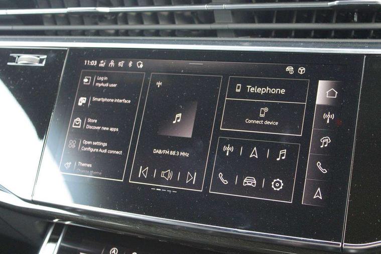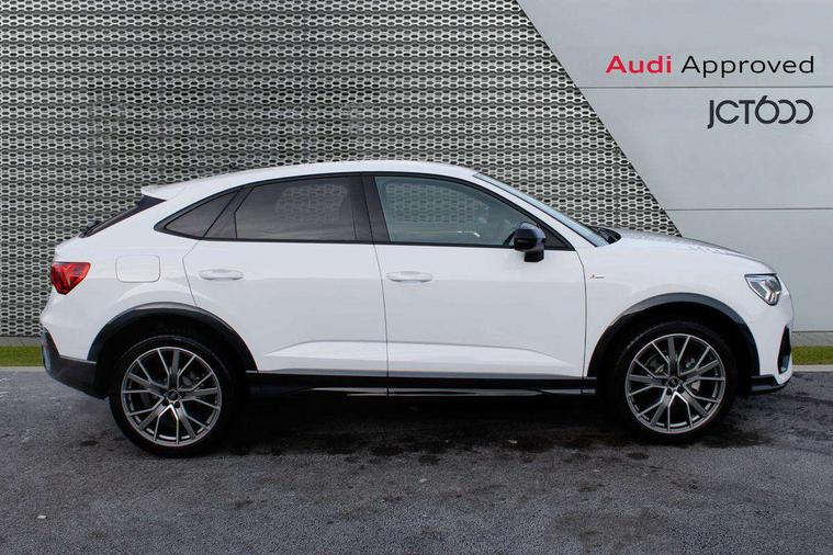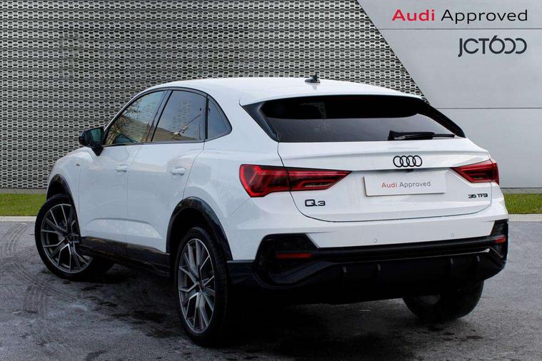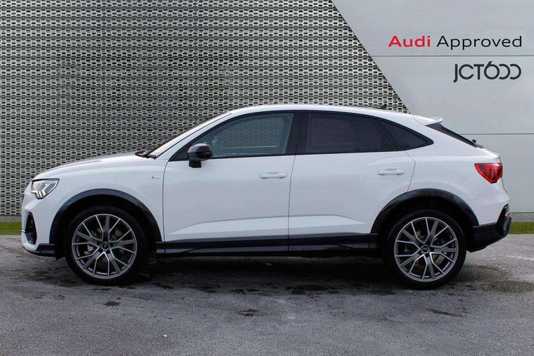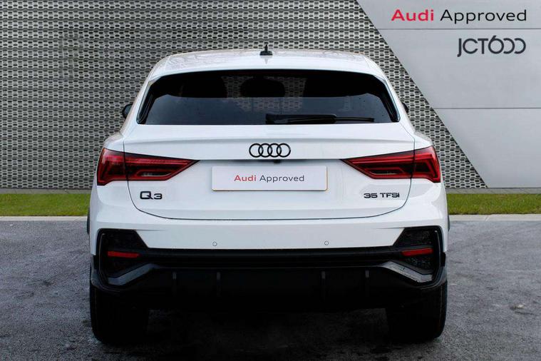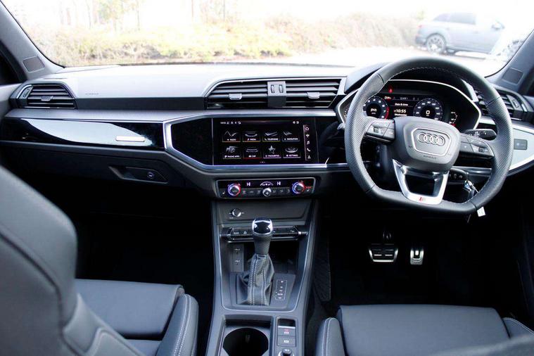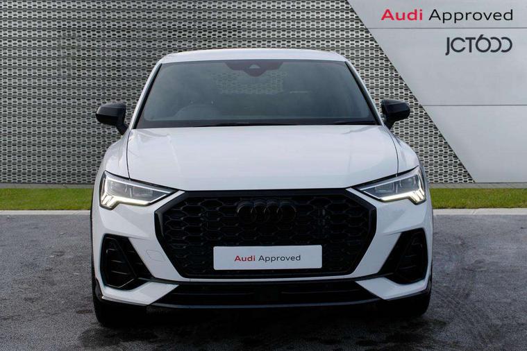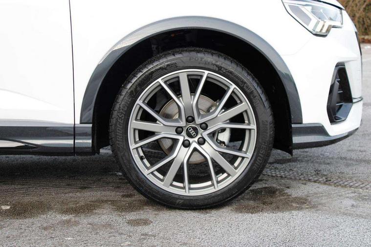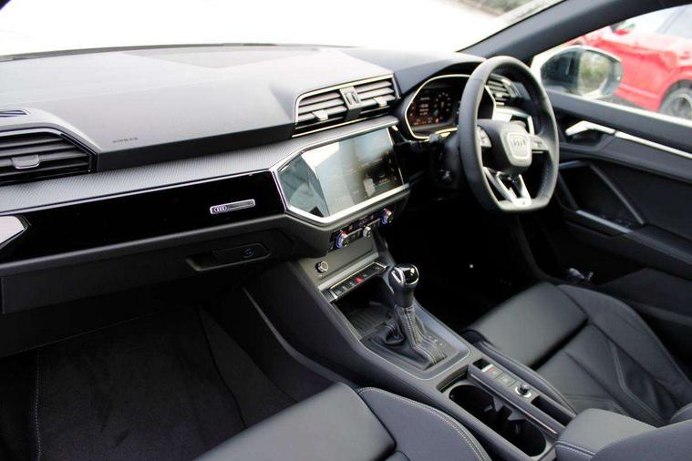 Audi connect safety and service, Audi drive select, Audi lane departure warning, Audi smartphone interface includes wireless Apple carplay/Android Auto, Audi Virtual Cockpit - 10.25" display, Bluetooth interface, Camera based traffic sign recognition, Distraction and Fatigue warning, Legal emergency call, MMI Navigation Plus with high resolution 10.1 inch touchscreen colour display, Power operated tailgate, Progressive steering, Service interval indicator, Start stop system with recuperation, Voice control system with natural language interaction, Sports suspension, 2 USB-C ports with charge and data functions, 6 passive loudspeakers, DAB digital radio module, Acoustic windscreen, Audi Beam uses LEDs to project the Audi logo onto the ground as you exit your Q3, Auto dimming door mirrors, Auto dimming frameless rear view mirror, Diffuser grille in grained matt black, Diffuser trim in selenite silver, Electrically folding, adjustable and heated door mirrors with integrated LED side indicators and kerb view function for passenger side, Front and rear electric windows, Front fog lights, Front underbody protection in manhattan grey paint finish, High gloss black finish B and C pillars, LED Dynamic rear indicators, LED headlights with LED daytime running lights, LED rear lights, LED third brake light, Privacy glass dark tinted rear and rear-side windows (from B-pillar backwards), Rain and light sensors, Rear side wing doors, Rear underbody protection in matt black, Rear wiper, S line front and rear bumpers and side skirts in contrasting Manhattan grey paint finish, Variable front intermittent wipers, 12V socket in rear centre console, 3 seat bench in 2nd row, 40:20:40 folding with manual adjustment for 60:40 forwards/backwards position and backrest angle, Adjustable rear seat bench/backrest with centre armrest and cupholder, Black cloth headlining, Dual zone electronic climate control, Electric lumbar support, Front and rear black floor mats with contrast stitching, Front and rear headrests, Front centre armrest, Height and reach adjustable steering wheel, Illuminated door sill trims with S logo, ISOFIX child seat mounting for front passenger with airbag deactivation and outer rear seat including top tether attachment point for outer rear seats, Luggage compartment sill protection in stainless steel, Manual front seats with height adjustment, Perforated leather gearknob, Single front passenger seat, Stainless steel pedals, Twin leather upholstery with front sport seats + S embossing, Black styling pack - Q3, Non smoking pack - Q3, 3x3 point rear seatbelts, 6 airbags - Driver, front passenger, curtain and side windows, Audi pre-sense front with pedestrain and cyclist recognition, Electrically operated child locks on rear doors, Electromechanical parking brake, Electronic stabilisation control including ABS, ASR and EDL, Front seatbelt reminder, Hill descent control, Hill hold assist, Pre sense basic, Seatbelt monitoring, Tyre pressure warning, Warning triangle and first aid kit, Anti theft alarm, Anti theft wheel bolts, Immobiliser, Remote central locking, Aluminium look interior elements, Detail dashboard around MMI touch colour display in glass look, black with surround in aluminium look, Leatherette door armrest, Piano black inlay,