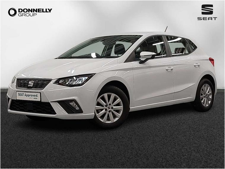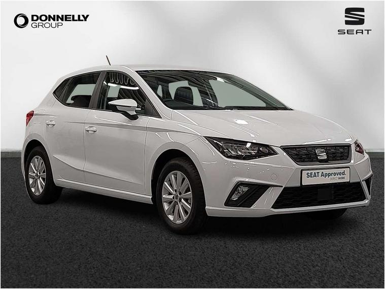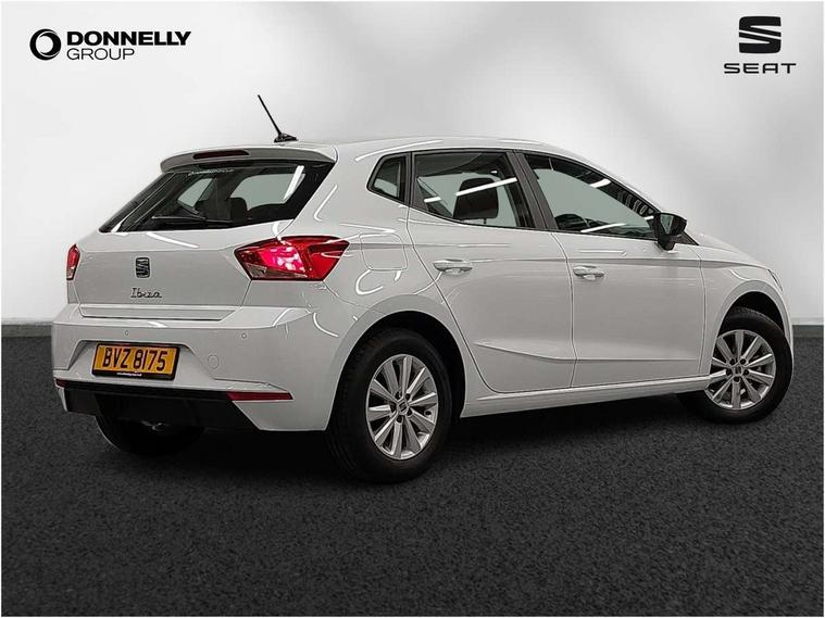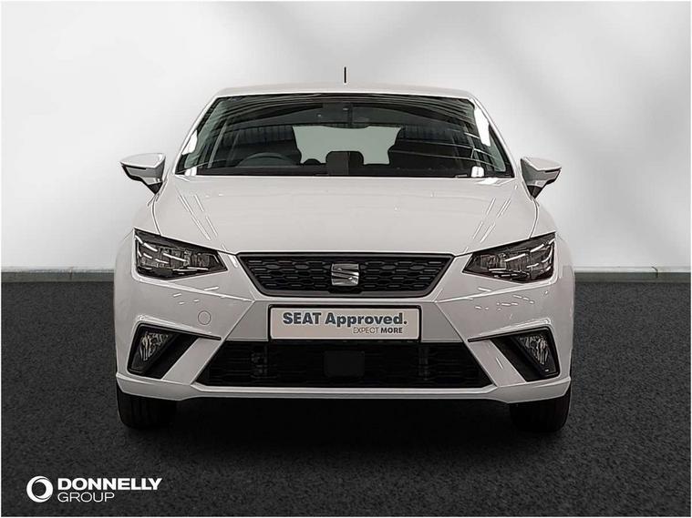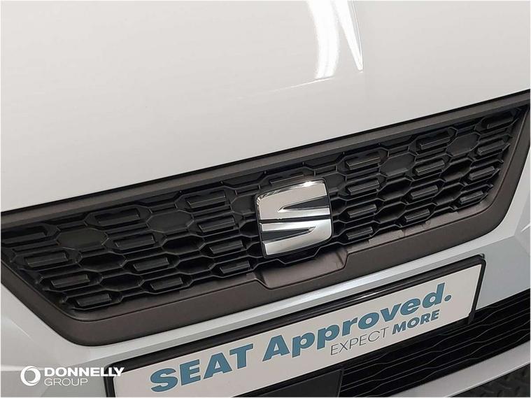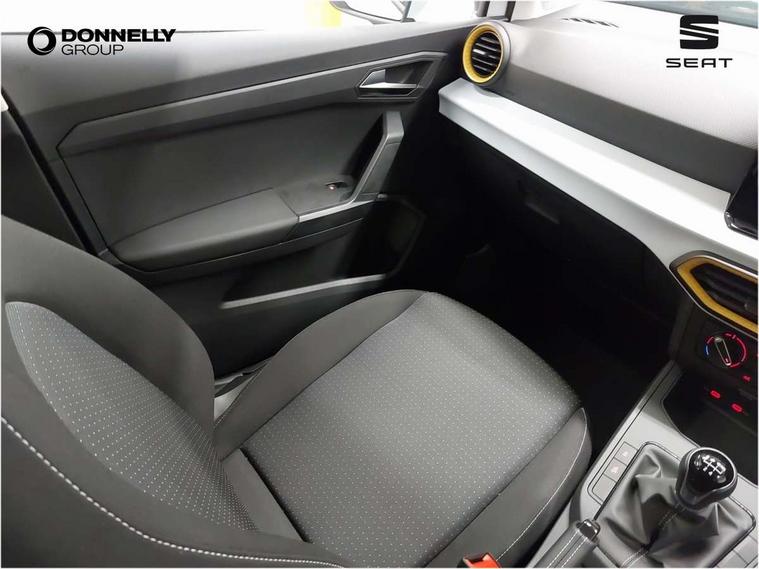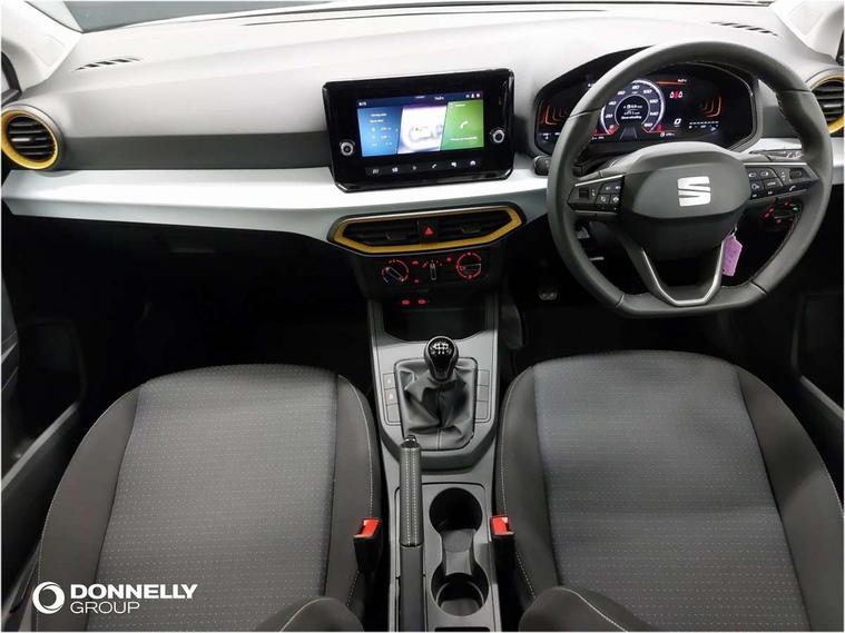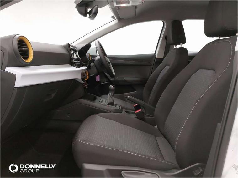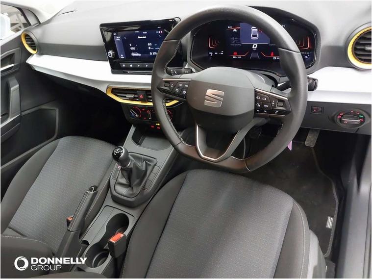 'Lights On' Reminder warning buzzer, 8" Digital cockpit, 8.25" touchscreen display with type C USB socket and DAB/AM/FM radio, Auto start and stop system, Bluetooth audio streaming with handsfree system, Cruise control, Digital clock, E-call, Full link smartphone integration with mirror link, wireless apple carplay, Google android auto + USB Type C cable for apple and android devices, Lane assist, Low fuel warning light, Outside temperature gauge, Power Steering, Rear parking sensor, Seat connect with safety, service and remote, SEAT logo boot release, Speed limiter, Traffic sign recognition, Trip computer, Comfort suspension, 6 speakers, Auxiliary input socket, Radio/MP3 player, Steering wheel mounted controls, Anti theft roof antenna, Body colour bumpers, Body colour door handles, Body colour door mirror caps, Dimming interior rear view mirror, ECO LED automatic headlights and LED daytime running lights, Electric front windows, Electric headlight adjustment, Electrically adjustable door mirrors, Front/rear fog lights, Halogen tailights, Rain sensor, Rear side wing doors, Rear wiper, Third brake light, 3 seat bench in 2nd row, 60/40 split folding rear seat, Air conditioning with dust and pollen filter, Chrome interior detailing and grey headlining, Cloth upholstery, Comfort seats, Front courtesy lights, Front cupholders x 2, Front reading lights, Gear shift indicator, Glovebox, Height adjustable front and rear headrests (five), Height adjustable front seats, Height/reach adjust steering wheel, Illuminated boot, Instrument lighting with brightness control, Isofix, Leather multifunction flat bottomed sports steering wheel, Passenger sunvisor, Single front passenger seat, Sunvisors with mirror and driver side card holder, Safety and driving pack (S) - Ibiza, 3 point seatbelts on all 3 rear seats, ABS, Active front headrests, Child locks on rear doors, Electronic stability control, Energy recovery system, Front assist forward collision warning and autonomous emergency braking, Front driver and passenger side airbags with curtain airbag and front passenger airbag deactivation, Hill hold control, Multi-Collision braking, Seat belt reminder for front and rear seats, Tiredness recognition system, Tyre pressure monitoring system, Locking wheel bolts, Remote central locking + deadlocks, 15" Enjoy alloy wheels in Brilliant silver,