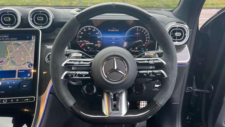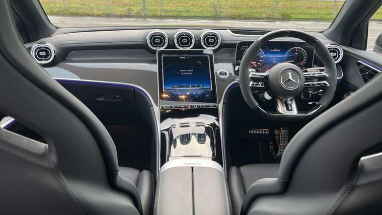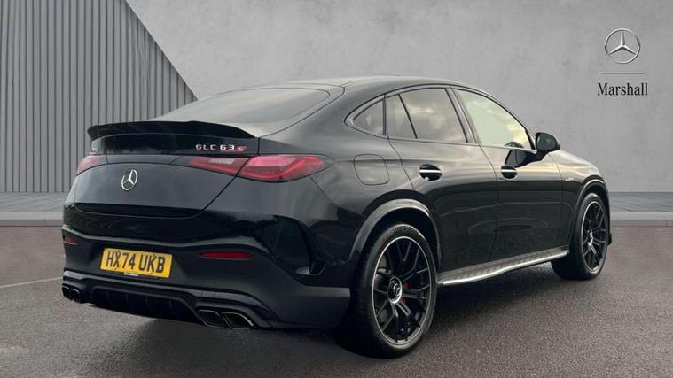 11.9" high resolution multimedia colour display, 12.3" Digital individually configurable instrument display, Acoustic ambient protection, Acoustic presence indicator, Active lane keeping assist, AMG DYNAMIC SELECT with a choice of eight driving modes(Electric, Comfort, Battery Hold, Sport, Sport+, Race, Slippery and Individual), AMG track pace, Attention assist, Bluetooth interface for hands free telephone, Collision prevention assist plus, Dashcam - front camera for video recording, Easy pack automatic powered tailgate, eCall emergency call system, Fingerprint scanner, Fluorescent jacket for driver, Head up Display, Instrument display in miles with English lettering, MBUX augmented reality for navigation, MBUX navigation premium, MBUX voice control activated by keywords "Hey Mercedes", Mercedes connect me with remote online services, Multi function trip computer, Outside temperature display, Pre-installation for digital key transfer, Rear axle steering, Remote and charging services plus, Remote boot release, Road sign recognition system, Service indicator (ASSYST), Smartphone integration, Sports direct steer system with speed sensitive steering, Status display for rear seat belts in instrument cluster, Traffic sign assist, Wireless charging system for mobile devices in the front, 4MATIC permanent four wheel drive, 5m charging cable for household socket (mode 2), 5m charging cable for wall box/public charging stations(mode 3), 65 litre fuel tank, 9G TRONIC plus automatic transmission, Alternating current charging system (AC charging), AMG Active Ride Control roll stabilisation, AMG Ride Control suspension, Burmester 3D surround sound system, DAB digital radio tuner, MBUX extended functions, Sound personalisation, Adaptive brake lights, Adaptive high beam assist plus, Aluminium look running boards with rubber studs, AMG exhaust system with sporty engine sound, AMG fuel cap, AMG radiator grille with vertical struts in high gloss chrome and AMG logo, AMG Real Performance Sound, AMG spoiler lip, Auto dimming rear view mirror, Auto headlights, Digital light LED headlights with projection function, Electric panoramic glass sunroof, Electric windows with one touch opening/closing and obstruction sensors, Electrically adjustable and heated door mirrors, Headlight washers, Heat and noise insulating acoustic glass, Heat insulating dark tinted glass, Heated rear window, High level LED brake light, Integrated LED daytime running lights, LED indicator lights, LED rear fog lights, LED tail lamp, Mercedes AMG exterior, Rain sensor windscreen wipers, Range adjustable headlights, Rear side wing doors, Rear wiper, Transparent Bonnet, Variable front intermittent wipers, Welcome and follow-me home light functionality, Wheel arch liners in the vehicle colour, 3 seat bench in 2nd row, 40:20:40 split folding rear seats, Air balance package, Ambient lighting premium, AMG floor mats, AMG Nappa leather upholstery, AMG performance steering wheel in carbon fibre design / MICROCUT microfibre with AMG steering wheel buttons, Artico leather dashboard with contrast stitching, Audio and onboard settings control on multifunction steering wheel, Automatic child seat recognition sensor, Double cup holder in centre console, Electrically height/reach adjustable steering column, Front centre armrest with stowage compartment, Front head restraints, Front seats with electric backrest, height adjust with 4 way electric lumbar support, Gearshift paddles on steering wheel, Heated steering wheel, Illuminated door sill panels with AMG lettering and with exchangable cover, Illuminated glove compartment, Load compartment cover, Mercedes AMG interior, Partition net, Rear head restraints, Rear top tether child seat ISOFIX attachment, Single front passenger seat, Sports pedals with stainless steel surfaces and rubber studs, Sun visors with illuminated vanity mirrors, THERMATIC 2 zone automatic climate control, AMG Aerodynamics package - GLC AMG, AMG Driver's package - GLC AMG, AMG Exterior Night pack - GLC Coupe AMG 63 Se, Boot comfort package - GLC, Energizing plus pack - GLC Coupe, Interior lighting pack - GLC AMG, Memory pack - GLC, Mirror pack - GLC AMG, Parking package with 360 degree camera - GLC, Stowage pack - GLC AMG, USB Plus Pack - GLC, 3 rear 3 point seatbelts, Active bonnet, Anti-lock braking system (ABS), Automatic front passenger airbag deactivation, Black seat belts, Child proof door locks, Dual-stage airbags - driver and front passenger, sidebags in front seats, driver kneebag, pelvis bag and window bags for driver, Electronic key chrome surround, Electronic parking brake, Electronic Stability Programme (ESP), Electronic stability programme (ESP) with curve dynamic assist and cross wind assist, Front and rear seatbelt reminder, Front passenger seat occupancy sensor, Front seatbelt pretensioners, Hill start assist, Red painted brake callipers, Tyre pressure monitoring system, Warning triangle and first aid kit, Anti theft alarm system with preinstallation for collision detection, Central locking with interior switch, automatic locking and crash sensor with emergency opening function, Guard 360 degree vehicle protection plus, Immobiliser, Increased anti-theft protection, Keyless Go comfort access, AMG Carbon fibre with centre console in high gloss black, 21" AMG cross spoke forged alloy wheels painted in matt black with high sheen rim finish, TIREFIT with tyre inflation compressor,