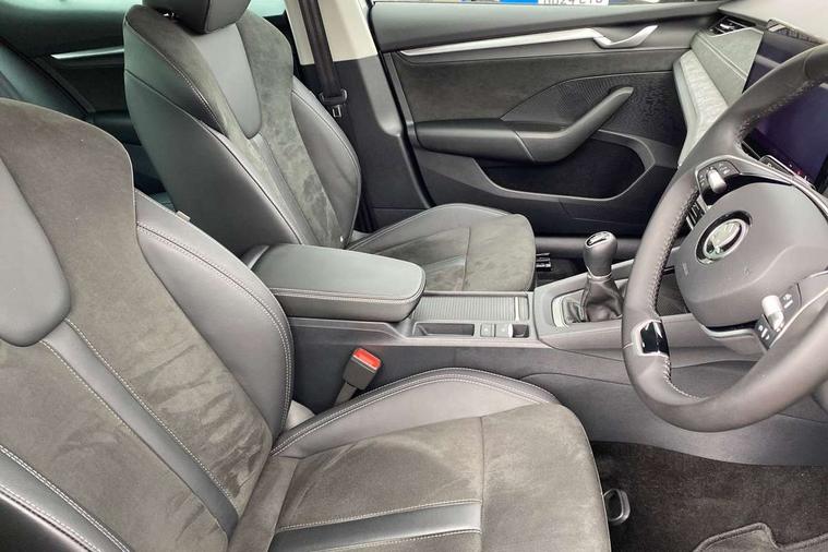 1x USB Typc C port in rear view mirror, 4x USB Type C ports - 2x in front centre console and 2x in rear (45W), Drive mode selection, Driver fatigue sensor, eCall emergency system, Electro-mechanical power steering, Front and rear parking sensors with manoeuvre assist, Front assist system, Traffic jam assist, Traffic sign recognition, Turn Assist, Virtual Cockpit - 10.25" digital display, Voice control system, Wireless charging (15W) with cooling function, Wireless SmartLink for Apple CarPlay and Android Auto, 13" touchscreen display with navigation, DAB Digital radio, Aero front windscreen wipers with intermittent function, Auto dimming rear view mirror, Body colour bumpers, Body colour door mirrors and handles, Chrome grille surround, Chrome strip in lower front bumper, Chrome window surrounds, Electric front and rear windows, Heated rear windscreen, High level third brake light, Ice scraper in fuel cap, LED daytime running lights, LED Headlights, Logo projection in front doors, Rain and light sensors, Rear fog light on one side, Rear privacy glass, Rear side wing doors, 12 volt socket in boot, 3 rear headrests, 3 seat bench in 2nd row, 4 foldable roof handles, Boot net programme, Front head restraints, Heated front seats, Illuminated glovebox, Interior door handles in dark chrome, Jumbo Box storage, Luggage compartment lighting x2 lights, Mechanical rear seat release from boot, Parcel shelf - folding, Single front passenger seat, Steering wheel in black leather with black stitching, Storage compartments in left and right of boot, Sun visors with mirrors, Sunglasses storage, Ticket holder, Umbrella in door panel, Unsplit rear bench seat, split folding backrest with centre armrest with cupholder, Comfort package - Octavia, 3x3 point rear seat belts, Alarm with interior monitoring, tilt sensor and back up horn, Curtain airbags and front side airbags, Driver and front passenger airbags, Drivers knee airbag, Electronic parking brake, ESC including ABS, EBV, MSR, ASR, EDS, HBA, DSR, Front central airbag, Hill hold assist, ISOFIX on front passenger seat and outer rear seats, Passenger airbag deactivate switch, Three point seat belts in front and rear, Two tone horn, Tyre pressure monitor, Visual and acoustic seat belt reminder, Warning reflectors in front door, Anti-theft wheel bolts, Keyless start/stop, Remote central locking, Chrome air vent surrounds,