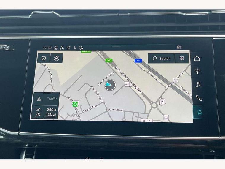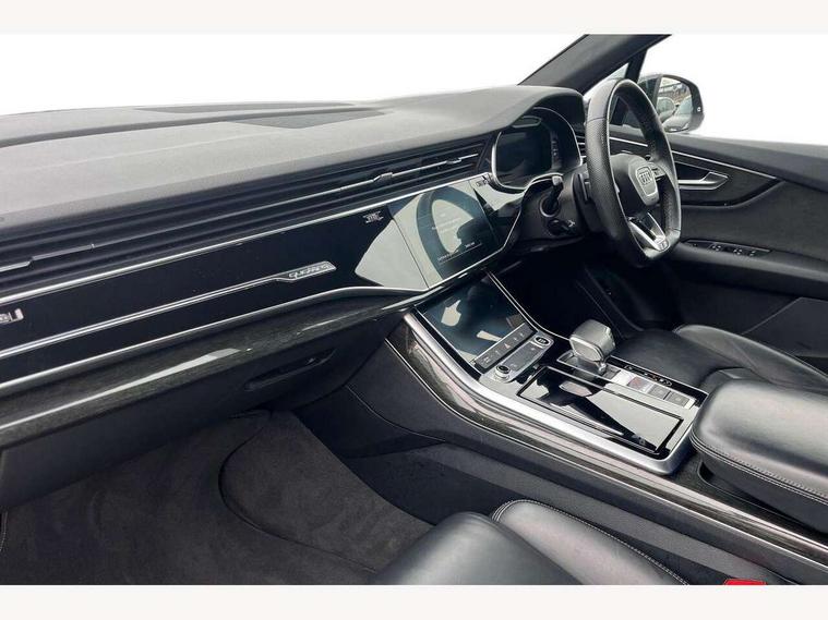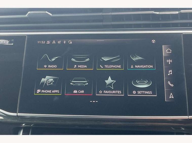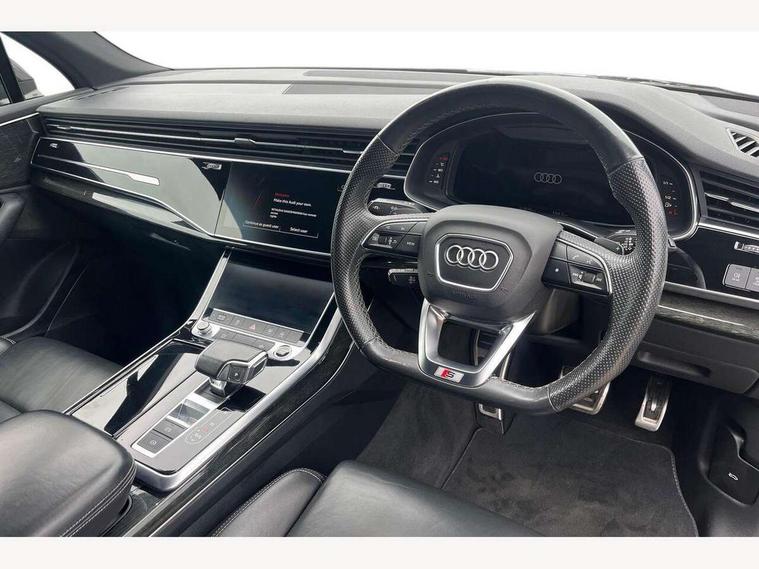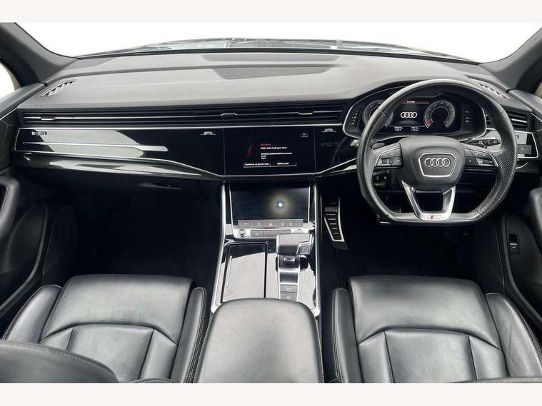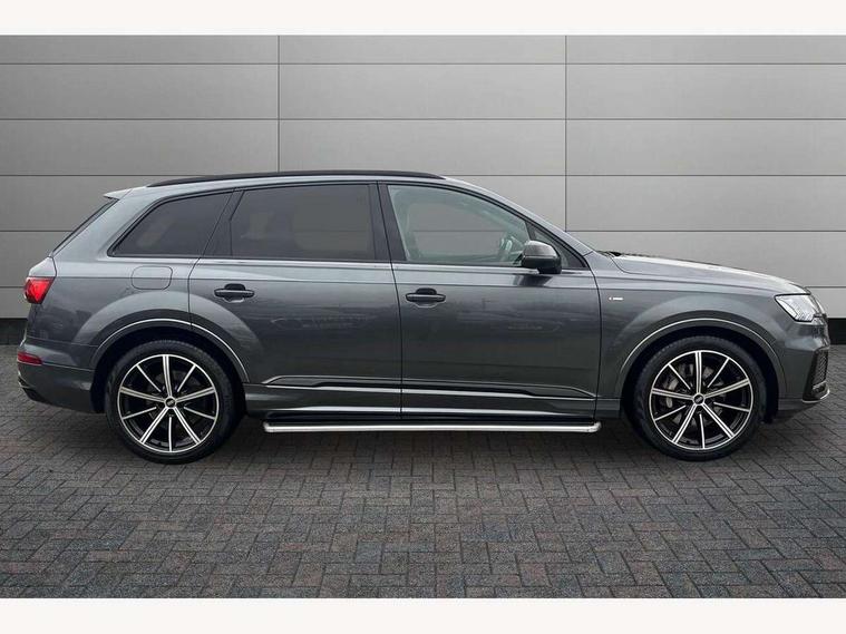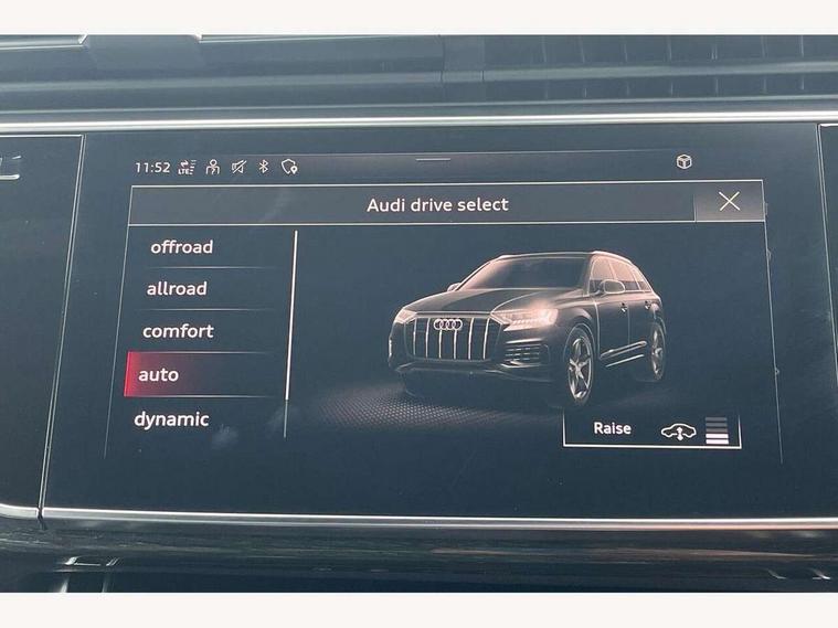 Audi connect safety and service (e-call), Audi drive select (Auto, Comfort, Dynamic, Individual, Off-road and All road), Audi phone box with wireless charging, Audi smartphone interface includes wireless Apple carplay/Android Auto, Camera based traffic sign recognition, Electromechanical steering, MMI navigation plus with MMI touch screens includes 10.1" and 8.6" screens with haptic feedback, Natural voice recognition, Parking system plus - front + rear sensors, Power operated tailgate, Rear view camera, Start/stop system, 48V Mild hybrid technology, Adaptive air suspension, Quattro all wheel drive with self locking centre differential, Audi music interface - front 2 USB-C ports with charger and data functions, Audi sound system with 6 channel amplifier, 180 watt amplifying capacity and 10 loudspeakers including subwoofer, DAB digital radio module, Aluminium roof rails, Aluminium window trim, Audi matrix LED headlights with dynamic front and rear indicators, Auto dimming frameless rear view mirror, Body coloured door mirrors, Electrically adj heated/folding + automatically dimming exterior mirrors with memory + automatic kerb side function for passenger side exterior mirror, Heat insulating glass in windshield, Integrated LED indications in door mirrors, LED daytime running lights, LED rear tail lights, Privacy glass - dark tinted rear and rear side windows from B-pillar backwards, S Line badge on wings, S line bumpers in full body colour paint finish, S line roof spoiler, S line styling side ventilation grilles and side skirts, 2 zone automatic climate control, 7 seat layout with ISOFIX points for the front passenger seat and rear passenger seat, Comfort front centre armrest, Folding rear seats, Front head restraints, Front/rear floor mats, Heated front seats, Illuminated door sill trims with S logo, LED interior ambient lighting, Luggage compartment cover, Luggage compartment sill protection in stainless steel, Rear head restraints, Stainless steel pedals, 3 point seatbelts on all rear seats, Audi pre sense front, Driver and front passenger, front side and curtain airbags, Electromechanical parking brake, Electronic Stabilisation Control (ESC) including ABS, ASR and EDL, Extended pedestrian protection measures, Hill hold assist, Seatbelt monitoring, Tyre pressure loss indicator, Warning triangle and first aid kit, Anti theft alarm, Anti-theft wheel bolts and wheel loosening detection, Keyless go with remote central locking, Darkened matt brushed aluminium inlays, Tool kit, Tyre repair kit,