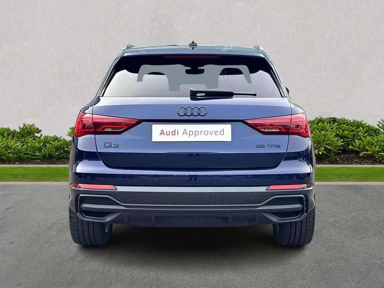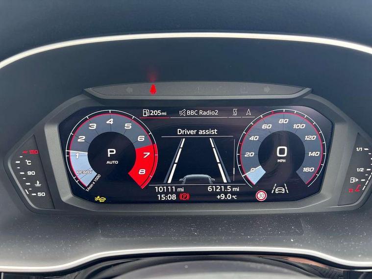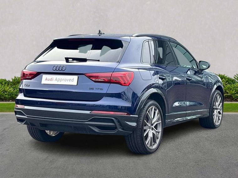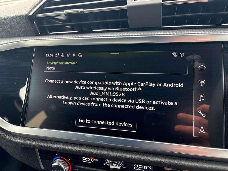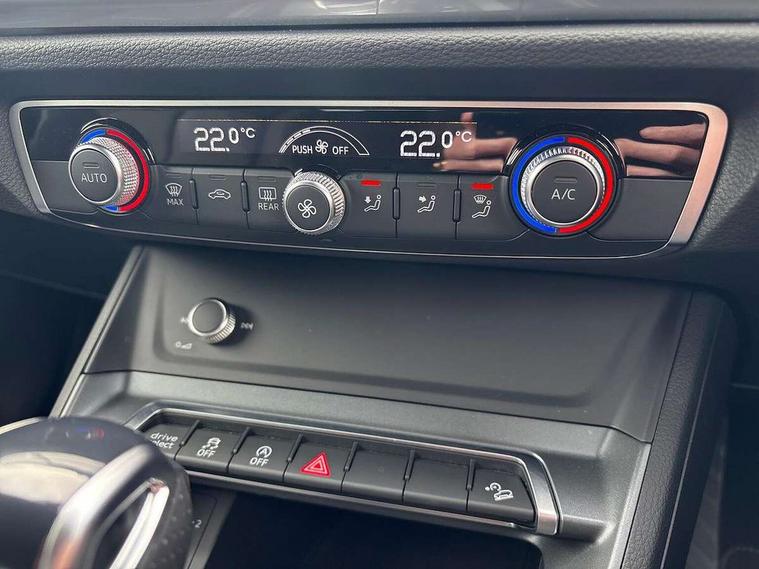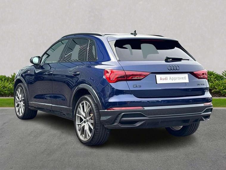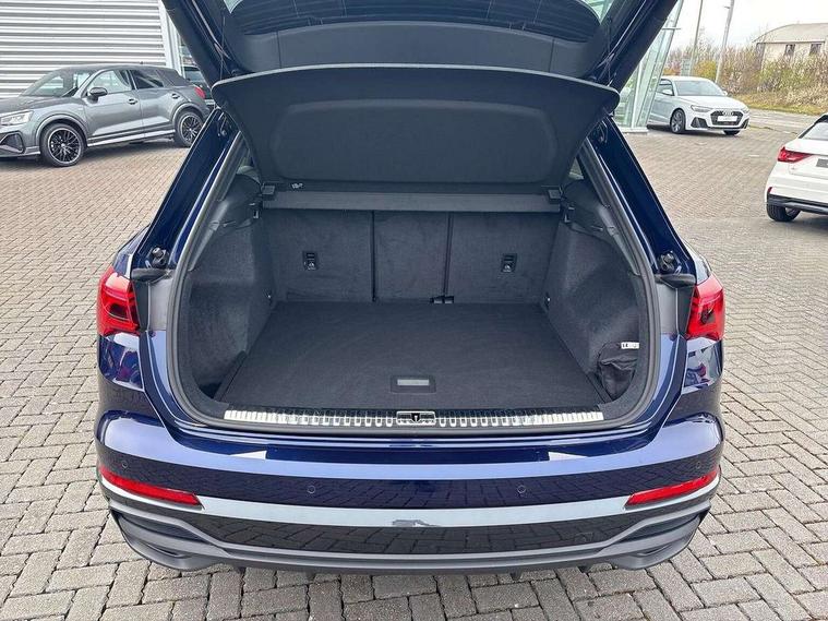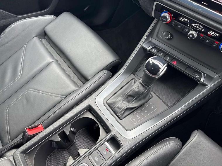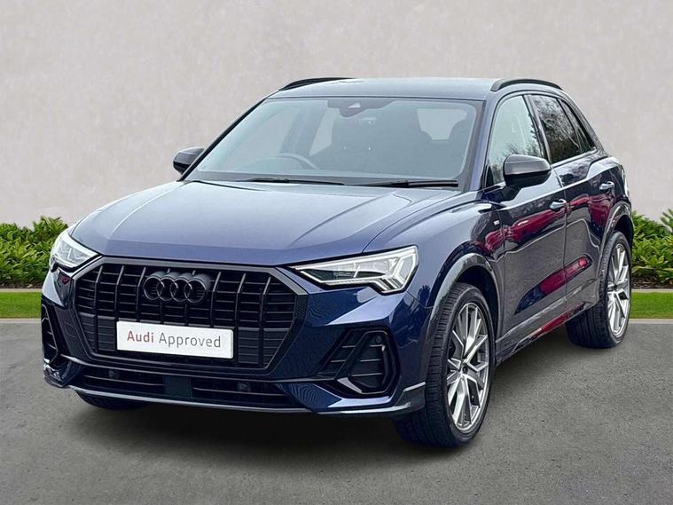 Amazon alexa Integration, Audi connect safety and service, Audi drive select, Audi lane departure warning, Audi smartphone interface includes wireless Apple carplay/Android Auto, Audi Virtual Cockpit - 10.25" display, Bluetooth interface, Camera based traffic sign recognition, Distraction and Fatigue warning, Legal emergency call, MMI Navigation Plus with high resolution 10.1 inch touchscreen colour display, Power operated tailgate, Progressive steering, Service interval indicator, Start stop system with recuperation, Voice control system with natural language interaction, Sports suspension, 2 USB-C ports with charge and data functions, 6 passive loudspeakers, DAB digital radio module, Acoustic windscreen, Audi Beam uses LEDs to project the Audi logo onto the ground as you exit your Q3, Auto dimming door mirrors, Auto dimming frameless rear view mirror, Black roof rails, Electrically folding, adjustable and heated door mirrors with integrated LED side indicators and kerb view function for passenger side, Front and rear electric windows, Front fog lights, Grille vertical bars in aluminium silver/Matt, High gloss black finish B and C pillars, LED Dynamic rear indicators, LED headlights with LED daytime running lights, LED rear lights, LED third brake light, Privacy glass dark tinted rear and rear-side windows (from B-pillar backwards), Rain and light sensors, Rear diffuser grille in grained matt black, Rear diffuser strip in matt anthracite black, Rear side wing doors, Rear wiper, S line bumpers in contrasting Manhattan grey, Variable front intermittent wipers, 12V socket in rear centre console, 3 seat bench in 2nd row, 40:20:40 folding with manual adjustment for 60:40 forwards/backwards position and backrest angle, Adjustable rear seat bench/backrest with centre armrest and cupholder, Black cloth headlining, Dual zone electronic climate control, Electric lumbar support, Front and rear black floor mats with contrast stitching in rock grey, Front and rear headrests, Front centre armrest, Height and reach adjustable steering wheel, Illuminated door sill trims with S logo, ISOFIX child seat mounting for front passenger with airbag deactivation and outer rear seat including top tether attachment point for outer rear seats, Manual front seats with height adjustment, Perforated leather gearknob, Single front passenger seat, Stainless steel luggage compartment sill finisher, Stainless steel pedals, Twin leather upholstery with front sport seats + S embossing, Black styling pack - Q3, Non smoking pack - Q3, 3x3 point rear seatbelts, 6 airbags - Driver, front passenger, curtain and side windows, Audi pre-sense front with pedestrain and cyclist recognition, Electrically operated child locks on rear doors, Electromechanical parking brake, Electronic stabilisation control including ABS, ASR and EDL, Front seatbelt reminder, Hill descent control, Hill hold assist, Pre sense basic, Seatbelt monitoring, Tyre pressure warning, Warning triangle and first aid kit, Anti theft alarm, Anti theft wheel bolts, Immobiliser, Remote central locking, Aluminium look interior elements, Detail dashboard around MMI touch colour display in glass look, black with surround in aluminium look, Leatherette door armrest, Piano black inlay,