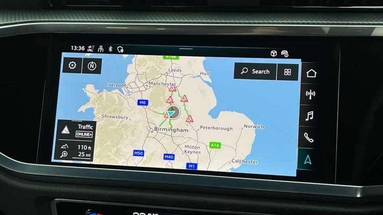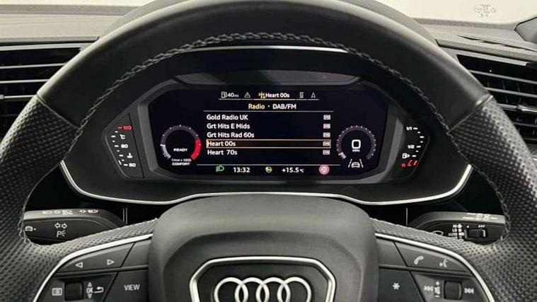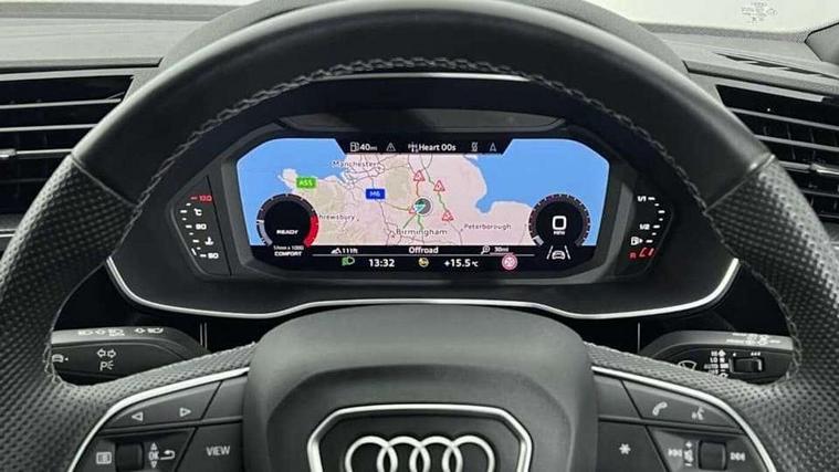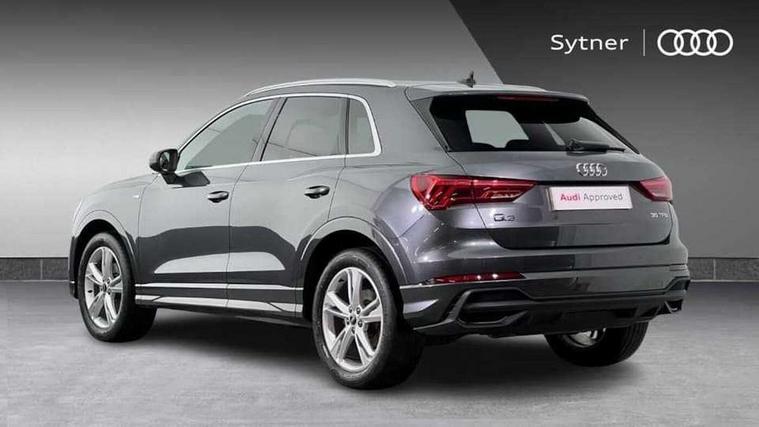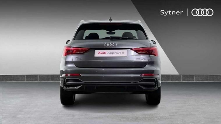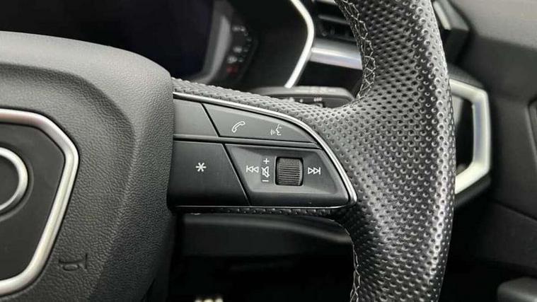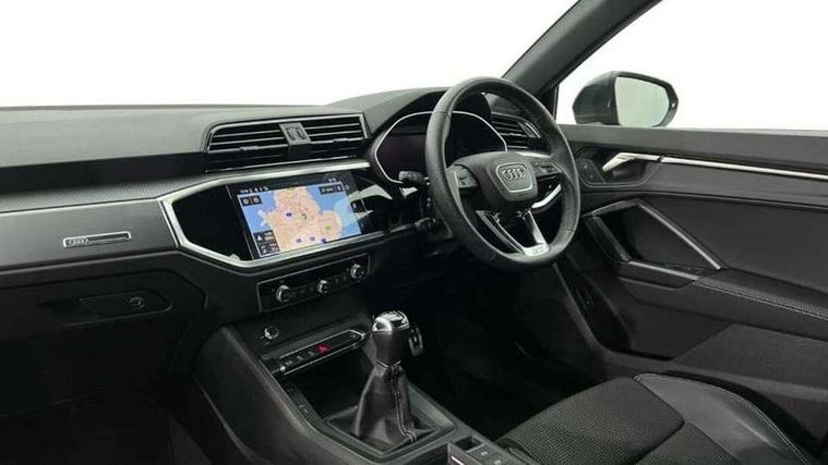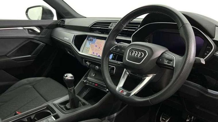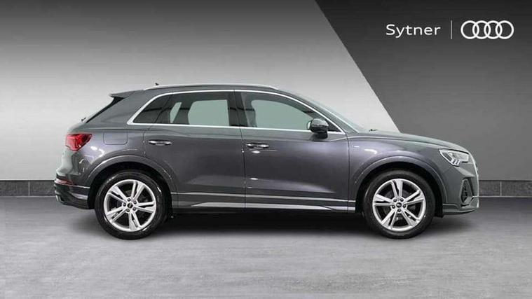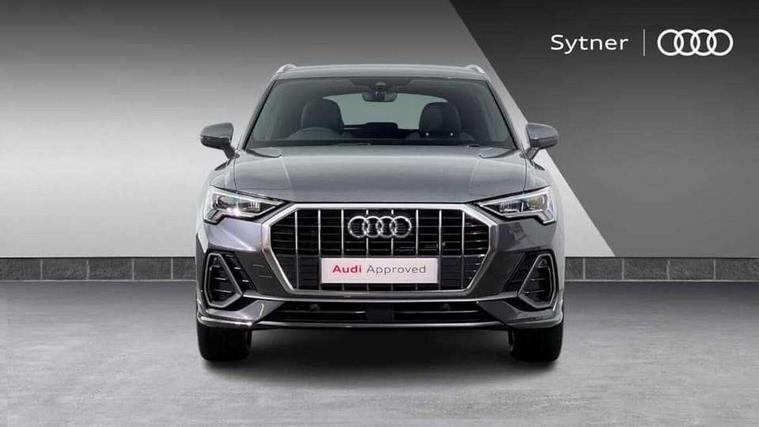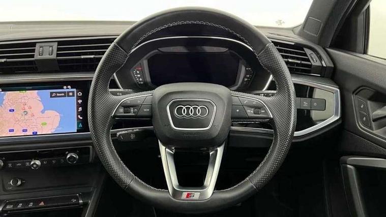 Amazon alexa Integration, Audi drive select, Audi lane departure warning, Audi smartphone interface includes wireless Apple carplay/Android Auto, Audi Virtual Cockpit - 10.25" display, Bluetooth interface, Camera based traffic sign recognition, Cruise control + speed limiter, Legal emergency call, MMI Navigation Plus with high resolution 10.1 inch touchscreen colour display, Power operated tailgate, Progressive steering, Rear parking sensors, Service interval indicator, Start stop system with recuperation, Voice control system with natural language interaction, Sports suspension, 2 USB-C ports with charge and data functions, 6 passive loudspeakers, DAB digital radio module, Acoustic windscreen, Aluminium roof rails, Aluminium window trim, Anthracite black radiator grille, Auto dimming frameless rear view mirror, Body colour front spoiler blade, Body coloured bumpers, Electrically folding, adjustable and heated door mirrors with integrated LED side indicators and kerb view function for passenger side, Front and rear electric windows, Front fog lights, Front side air inlets in matt platinum grey, Grille vertical bars in aluminium silver/Matt, High gloss black finish B and C pillars, LED Dynamic rear indicators, LED headlights with LED daytime running lights, LED rear lights, LED third brake light, Privacy glass dark tinted rear and rear-side windows (from B-pillar backwards), Rain and light sensors, Rear diffuser grille in grained matt black, Rear diffuser strip in matt anthracite black, Rear side wing doors, Rear wiper, S line badges on front wings, S Line front and rear bumpers, Side skirt insert in matt Platinium grey, Variable front intermittent wipers, 12V socket in rear centre console, 3 seat bench in 2nd row, 3 spoke leather multifunction steering wheel features S badging and grips in perforated leather with contrast stitching, 40:20:40 folding with manual adjustment for 60:40 forwards/backwards position and backrest angle, Adjustable rear seat bench/backrest with centre armrest and cupholder, Black cloth headlining, Dual zone electronic climate control, Front and rear black floor mats with contrast stitching in rock grey, Front and rear headrests, Front and rear roof module including reading lights, Front centre armrest, Glove compartment lighting, Height and reach adjustable steering wheel, Illuminated door sill trims with S logo, ISOFIX child seat mounting for front passenger with airbag deactivation and outer rear seat including top tether attachment point for outer rear seats, Luggage compartment light, Manual front seats with height adjustment, Perforated leather gearknob, Single front passenger seat, Stainless steel luggage compartment sill finisher, Stainless steel pedals, Ambient lighting pack - Q3, Non smoking pack - Q3, 3x3 point rear seatbelts, 6 airbags - Driver, front passenger, curtain and side windows, Audi pre-sense front with pedestrain and cyclist recognition, Electrically operated child locks on rear doors, Electromechanical parking brake, Electronic stabilisation control including ABS, ASR and EDL, Front seatbelt reminder, Hill descent control, Hill hold assist, Pre sense basic, Seatbelt monitoring, Tyre pressure warning, Warning triangle and first aid kit, Anti theft alarm, Anti theft wheel bolts, Immobiliser, Remote central locking, Aluminium look interior elements, Dark matt brushed aluminium inlay, Detail dashboard around MMI touch colour display in glass look, black with surround in aluminium look, Leatherette door armrest,