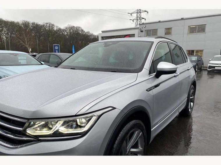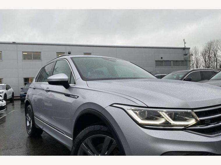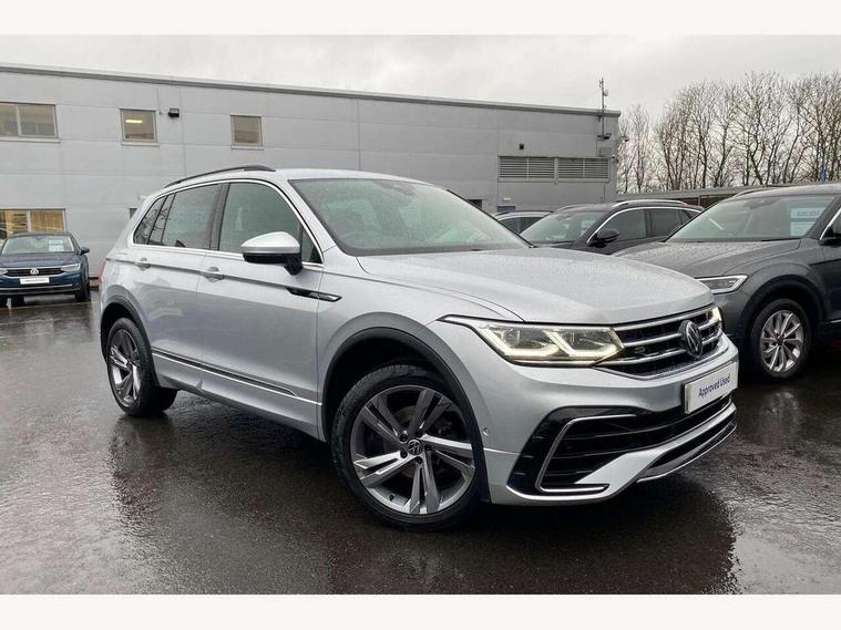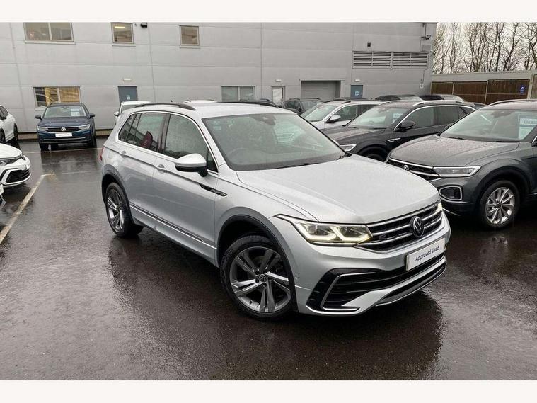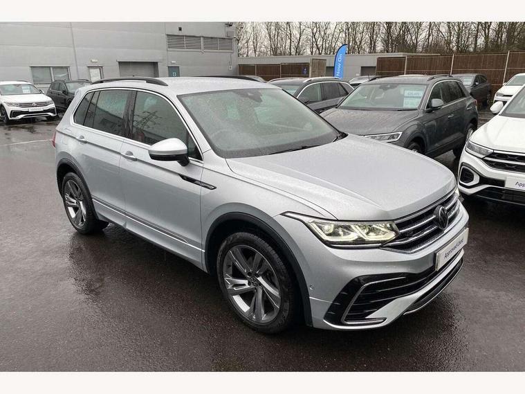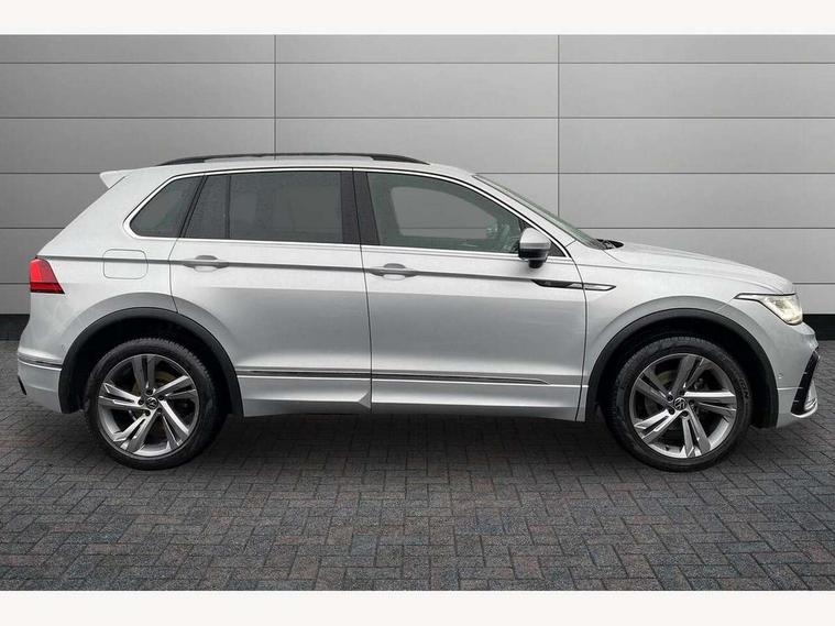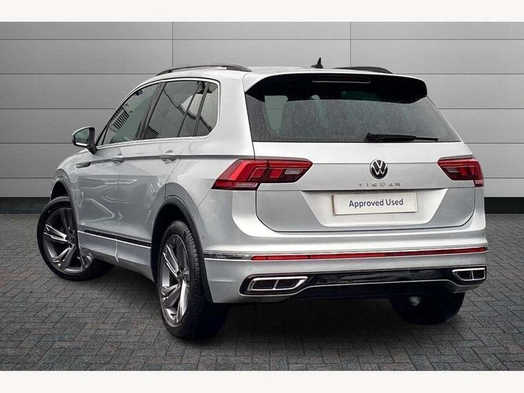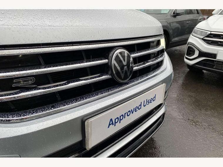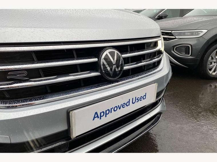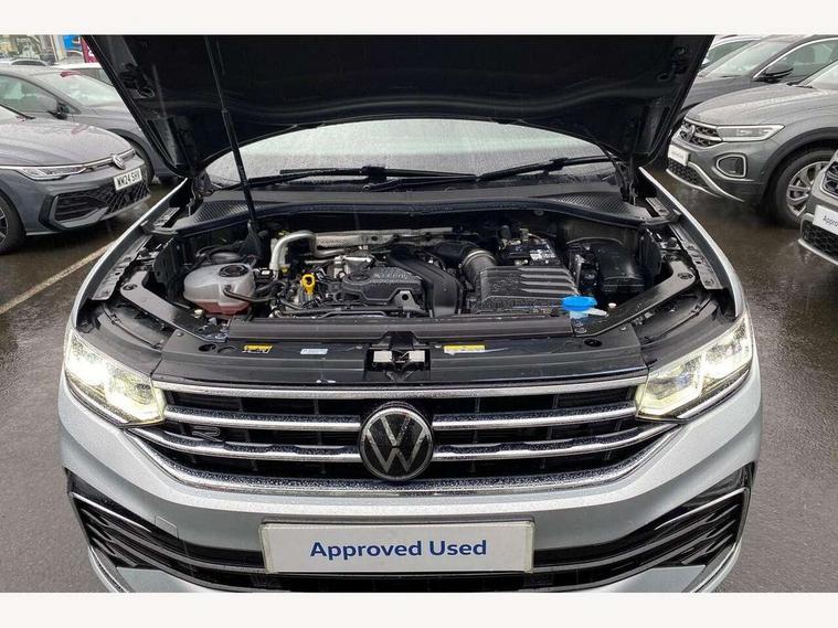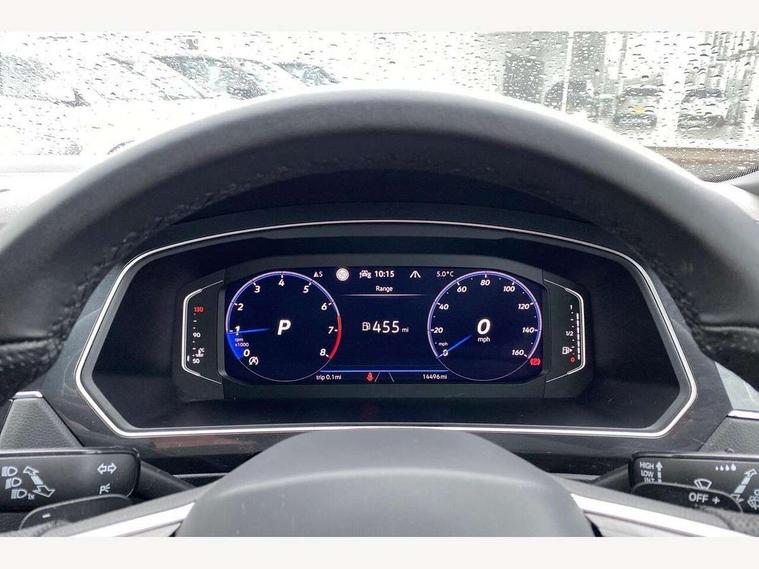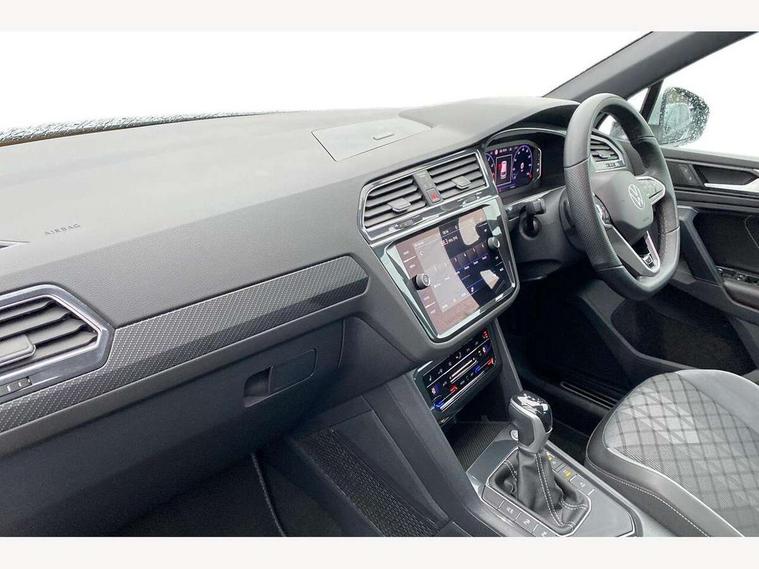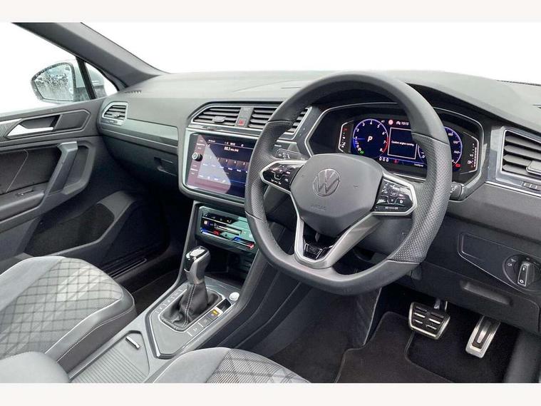 Adaptive cruise control ACC stop and go including speed limiter, App-Connect incl. App-Connect Wireless for Apple CarPlay and Android Auto, Bluetooth phone integration system, Comfort drive travel assist, Digital cockpit pro, Driver alert system, Driver profile selection, Dynamic road sign display, eCall emergency call system, Electromechanical speed sensitive power steering, Emergency assist, Front and rear parking distance sensors, Instrument cluster mph speedometer Great Britain, Lane keeping system Lane Assist, Lights on warning, Multifunction front facing camera, Outside temperature display, Premium multifunction display with multi colour display, Rev counter, Service interval indicator, Speed limit display, Start/stop system with regenerative braking, Trip computer, Warning sound and light for doors and tailgate open, Battery regeneration during braking, Digital radio reception DAB+, Diversity antenna for FM reception, Radio, Auto dimming interior rear view mirror, Automatic headlight control system, Body colored bumpers in R-Line style, Body colored exterior mirror housings, Body colour door handles, Chrome moldings on the side windows, Coming/leaving home lighting function, Dynamic headlight range control, Front and rear electric windows, Heated rear window, High level 3rd brake light, Laminated safety glass windshield, heat and sound insulating, LED rear combination lamps, LED rear number plate lights, License plate carrier in front and rear, Poor weather light and cornering light, Privacy glass for rear side windows and rear window, R Line body kit, R Line side sills, Rain sensor, Rear exhaust tailpipe, Rear fog lamp, Rear side wing doors, Rear spoiler in R style, Rear windscreen washer and wiper with interval delay, Side and rear windows in heat insulating glass, Trailer Stability Programme, Unique R Line badging, Windscreen wipers/ intermittent wipe + 4 position delay, 12V outlet in center console rear and in luggage compartment, 12V outlet in front and tray, 2 LED front reading lights, 2 LED rear reading lights, 3 bench rear seats in 2nd row, 3 rear headrests, Air Care Climatronic 3 zone automatic climate control with enhanced air filter and controls in the rear, Backrest release for left front seat, Black headlining, Brushed stainless steel pedals and footrest, Carpet mats in front and rear with decorative stitching in Gray, Climate control unit rear with touch function, Door and side trim panel in foam film, insert in leatherette, Front footwell illumination, Front scuff plates in aluminum with R-Line logo, Front seats head restraints (x-adjustment), Height/reach adjust steering wheel, Isofix Preparation 2 Rear child seats, Leather gear knob, Rear bench seat asymetrically split folding, longitudinally movable and folding with load-through hatch and center armrest, Remote unlocking for rear seat backrest, Single front passenger seat, Sun visors with illuminated vanity mirrors, Tool kit, Driver assistance pack plus - Tiguan DSG, 3 point seat belt for centre rear seats, 3 point seat belts with seat belt pretensioners for the outer rear seats, Curtain airbags for front and rear passengers, Driver/Front Passenger airbags, Drivers knee airbag, Electronic parking brake with auto hold, Electronic Stability Control with driver steering recommendation, ABS, ASR, EDL, EDTC and trailer stabilization, Front assist with autonomous emergency braking (for Adaptive Cruise Control ACC up to 130 mph), Front disc brakes, Front passenger airbag deactivation, Front side airbags, Height adjustable front 3 point seatbelts + pretensioners, Manual child proof rear door locks, Pedestrian monitoring system, Proactive passenger protection system in combination with front assist, Rear disc brakes, Two tone horn, Warning sound and light for front seat belts if unfastened, Warning triangle, Anti theft alarm system with interior monitoring, backup horn and towing protection, Anti theft wheel bolts, Electronic engine immobiliser, Chrome elements on the mirror switch power window switches and door pulls, Decorative inserts Carbon Gray for dashboard and front door trim panels, Interior door handle in matte chrome,