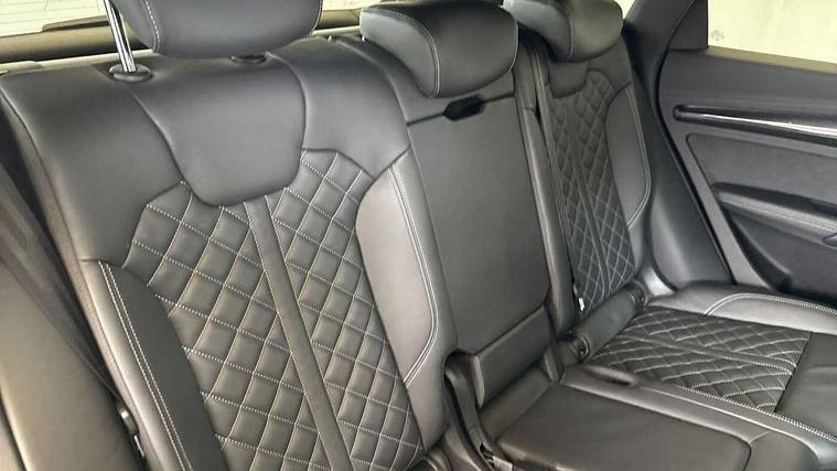 Acoustic front and rear parking sensor, Audi connect safety and service (e-call), Audi connect with Amazon Alexa Integration, Audi drive select, Audi virtual cockpit plus with 12.3" screen and three different layout designs, Audi wireless smartphone interface, Automatic start-stop system with coasting functionality and efficiency programme, Bluetooth interface, Electro - mechanical power assisted steering, MMI navigation plus with 10.1" touch screen, Power tailgate, Reversing camera, Service interval indicator, Voice control system with Audi hotword activation "Hey Audi", 70 litre fuel tank and 24 litre AdBlue tank, Diesel particulate filter, Quattro on demand, S sport suspension with damper control, Audi sound system, DAB Digital radio, Acoustic windscreen, Aluminium roof rails, Audi beam, Audi beam with Audi rings logo, Audi matrix LED headlights with dynamic front and rear indicators, Auto dimming door mirrors, Auto dimming frameless rear view mirror, Automatic headlight adjustment, Automatic headlights and windscreen wipers, Body colour bumpers, Body colour rear diffuser with matt aluminium silver surrounds, Body colour underbody protection, Chrome plated exhaust trims, Daytime running lights, Door sills in Selenite silver, Electric adjustable/heated/folding door mirrors, Front air inlet surrounds in aluminium, Front and rear electric windows, Front radiator grille in honeycomb design, Headlight washers, High gloss black B pillar trims and triangular rear door trim, High level LED brake light, Rear chrome trim strip below lights, Rear privacy glass and rear side windows, Rear side wing doors, Rear wiper, Roof bars, S front and rear bumpers, S Line rear spoiler, S Line side skirts, S specific rear diffuser, 2 x USB charging port with aux input socket, 3 rear headrests, 4 way electric lumbar support for driver and front passenger, 40:20:40 split folding 3 rear bench seat in 2nd row with rear centre armrest, Black cloth headlining, Comfort front centre armrest, Contrast stitching on seats, steering wheel and gear lever gaiter, Deluxe 3 zone electronic climate control, Fine Nappa leather upholstery with diamond pattern contrast stitching + front sport seats with S embossed logo, Front/rear floor mats, Fully electrically adjustable seats, Gear lever in black leather, Heated front seats, Height adjustable front head restraints, Height/reach adjustable steering column, Illuminated door sill trims with S logo, Luggage compartment cover, Massage function for front seats, Rear seat bench plus-adjust for forwards/backwards position/backrest angle, cupholders in the armrest, load through hatch and remote backrest release, Removable luggage compartment floor, Single front passenger seat, Stainless steel pedals, Sunvisors with vanity mirrors, Extended interior upholstery pack - Q5, High gloss pack - Q5, LED interior light pack - Q5, 3 point seatbelts on all seats, 6 airbags - Driver, front passenger, curtain and side airbags, Electrically operated child locks on rear doors, Electromechanical parking brake, Electronic stabilisation control including ABS, ASR and EDL, First aid kit with warning triangle and vests, Front passenger airbag deactivation, Hill descent control, Hill hold assist, ISOFIX child seat mounting for front passenger seat and ISOFIX child seat mounting with Top Tether for outer rear seats, Multi collision brake assist, Pop-up bonnet for pedestrian protection, Pre sense city, Seat belt force limiter, Seatbelt monitoring, Tyre pressure warning, Anti theft alarm, Anti-theft wheel bolts, Keyless Go access/ignition system, Remote central locking, Air vents inserts and centre console in gloss black, 20'' 5 twin star spoke design alloy wheels in gloss graphite grey,