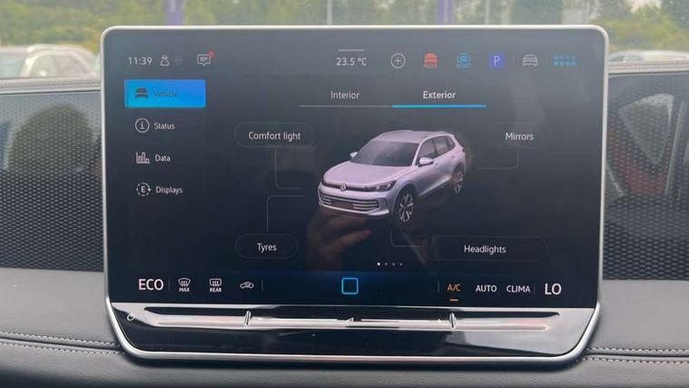 Adaptive cruise control (ACC), Advanced driver attention and drowsiness monitor, Bluetooth mobile phone interface, Car2X technology, Digital Cockpit Pro - 10.25" high resolution dash display screen with customisable menus and information, Dynamic road sign display, E-Sim card for online connectivity, eCall emergency call service, Front Assist - Autonomous emergency braking with pedestrian and cyclist monitoring, Lane change system, Side assist, Rear traffic alert and Exit warning system, Lane keeping system Lane Assist, Multifunction front facing camera, Oncoming vehicle braking when turning including swerve support, Park assistance plus with front and rear parking sensors, Power assisted steering with speed sensitive, Start/stop system with regenerative braking, Warning signal and warning light for front and rear seatbelts not fastened, Wireless App-Connect, Adaptive chassis control DCC pro includes driving mode selection, Charging cable Mode 3 Type 2 / 3 (16A), Front wheel drive, Rear shock absorption, Digital radio reception (DAB), Diversity antenna for FM reception, Ambient lighting with logo projection, Auto dimming interior rear view mirror, Automatic headlight control system, Body coloured bumpers and air intake with chrome trim, Body coloured door handles, Body-coloured exterior mirror housings, Coming/leaving home lighting function, Heat insulating glass in side and rear windows, Heat insulating windshield, Heated rear window, High level 3rd brake light, Illuminated door handle recesses, Illuminated lightline between headlamps, Rain sensor windscreen wipers, Rear fog light on one side, reversing light on both sides, Rear side wing doors, Rear wiper, 12V outlet in center console rear and in luggage compartment, 12V socket in centre console, 3 bench rear seats in 2nd row, Air care climatronic 3 zone air conditioning system with rear air conditioning control panel, Carpet mats, front and rear, Centre console with illuminated storage compartment with sliding cover and two drinks holders, Ceramique headlining, Door and side trim panel in foam film and woven fabric, Front centre armrest, ISOFIX anchors for child seats on outer rear seats and front passenger seat. Compatible with i-Size, Mechanical rear seat release, Power adjustable lumbar support in front, Rear bench seat, split folding, longitudinally movable and folding with load-through hatch and centre armrest, Safety optimised front head restraints, Single front passenger seat, Sun visors with illuminated vanity mirrors, Three rear head restraints, Variable luggage compartment floor, Comfort package with park assist pro - Tiguan, Design package - Tiguan, 3 point seat belt for centre rear seats, 3 Point seat belts in front with pretensioners, 3 point seatbelts in outer rear with ECE label, Driver and front passenger airbag with front passenger airbag deactivation, Electronic parking brake with auto hold, Front and rear curtain airbags, Front and rear side airbags, Front centre airbag, Front disc brakes, Manual child proof rear door locks, Rear disc brakes, Two tone horn, Warning triangle, Anti theft wheel bolts, Soul instrument panel, Airstop tyres, Tool kit for tyre mobility set, Tyre mobility kit including compressor and sealing foam,