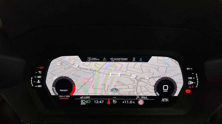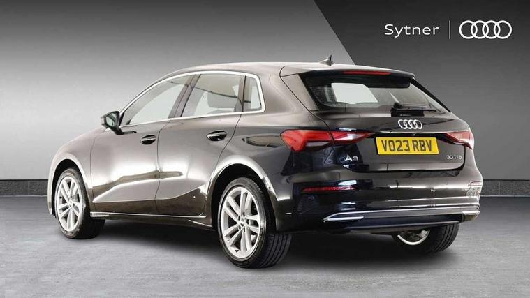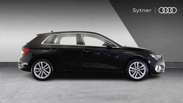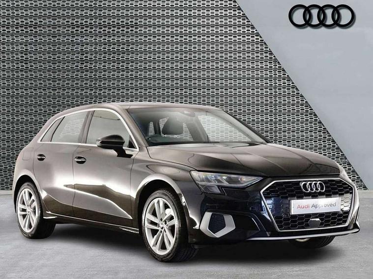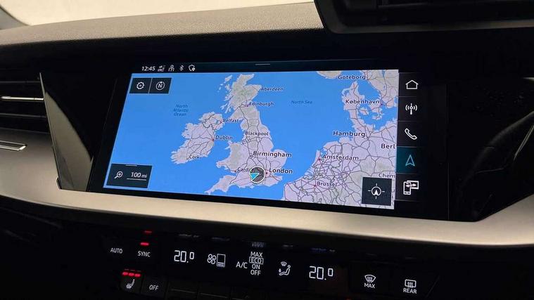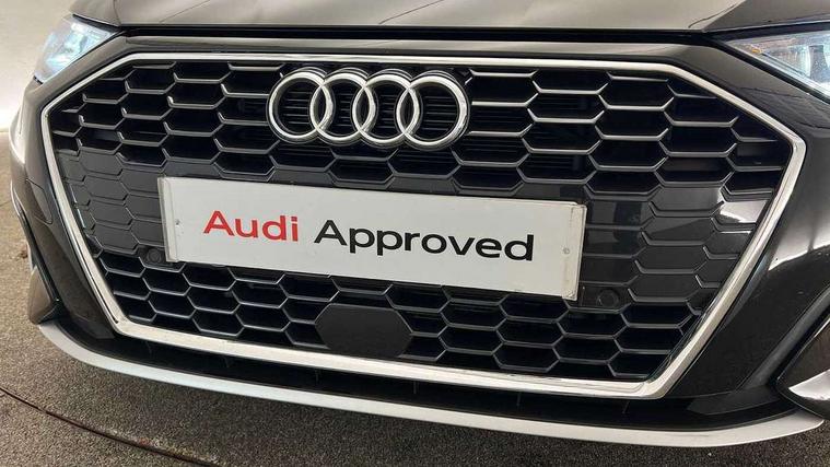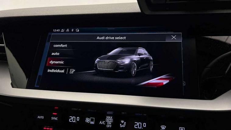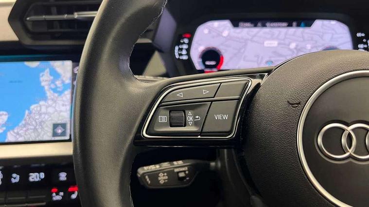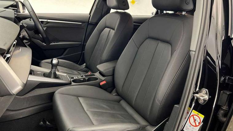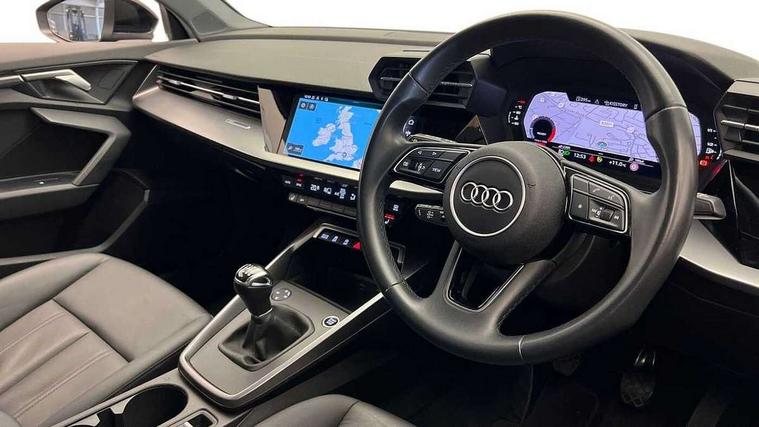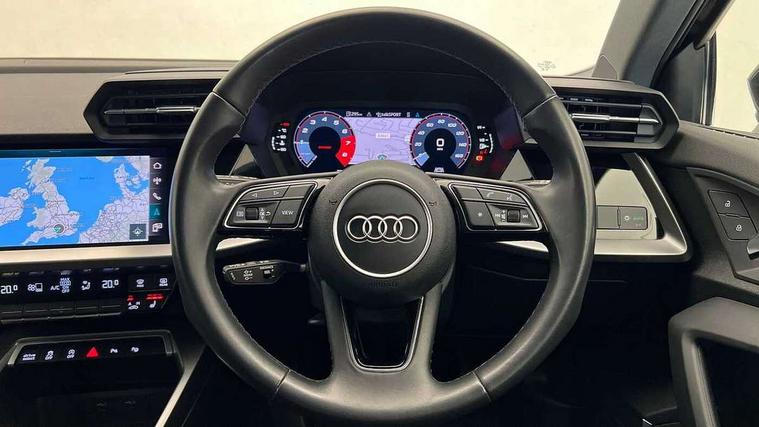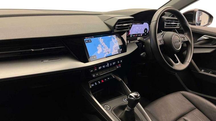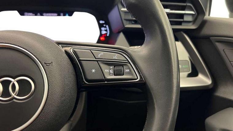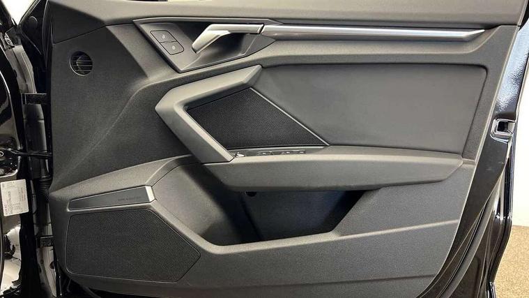 Audi drive select (Auto, Comfort, Dynamic and Individual), Audi smartphone interface, Audi Virtual Cockpit - 10.25" digital and colour instrument cluster, Automatic start/stop system with recuperation, Bluetooth interface, Camera based traffic sign recognition, Collision avoidance assistant, Cruise control, e-Call (emergency call), Electromechanical power speed sensitive steering, Lane departure warning system, MMI Navigation Plus with high resolution 10.1" colour touch screen display, Rear parking sensors, Service indicator, Trip computer, Voice control system with natural language interaction, Standard suspension, 2xUSB-C connection with data and charging functions, 6 passive loudspeakers, DAB Digital radio, 3rd brake light, Acoustic glass windscreen, Aluminium window trim, Auto dimming frameless rear view mirror, Body colour exterior mirrors, Body colour roof spoiler, Electrically adjustable/heated/folding/dimming door mirrors with kerb view includes integrated LED indications + kerb view function for passenger side, Front electric windows, LED daytime running lights, LED headlights and halogen rear lights, Light and rain sensors, Rear electric windows, Rear side wing doors, Rear window, rear door windows and rear side windows in clear glass, Rear wiper, 12V socket and storage compartment in front centre console, 3 seat bench in 2nd row, 3 spoke leather multifunction steering wheel, 4 way electrically adjustable lumbar support for driver and front passenger, 60/40 split folding rear seat bench, Dual zone electronic climate control, Front and rear headrests, Front centre armrest, Front door sill trims with aluminium inlay, Front/rear floor mats, Height and reach adjustable steering wheel, Interior lighting - Front and rear roof module including reading lights, glove compartment light and right hand side, Interior lighting - glove compartment light and right hand side, Luggage compartment floor covering, Manual boot compartment lid, Manually adjustable front seats, Routine cloth upholstery with front sports seats, Seat side bolsters, Single front passenger seat, Steel grey cloth headlining, Aluminium interior elements pack - A3 Sportback, LED interior lighting pack - A3 Sportback, Sport styling pack - A3 Sportback, 3x3 point rear seat belts, Driver and front passenger airbag with passenger airbag deactivation, Electronic Stabilisation Control (ESC) including ABS, ASR and EDL, First aid kit with warning triangle and 2 safety vests, Front side airbags with head airbags and interaction airbag, Pre-sense front with pedestrian and cyclist detection, Seatbelt monitoring, Tyre pressure loss indicator, Anti theft alarm, Anti-theft wheel bolts, Electronically operated child lock, Immobiliser, Remote control central locking, Inlays with silk effect paint in platinum grey,