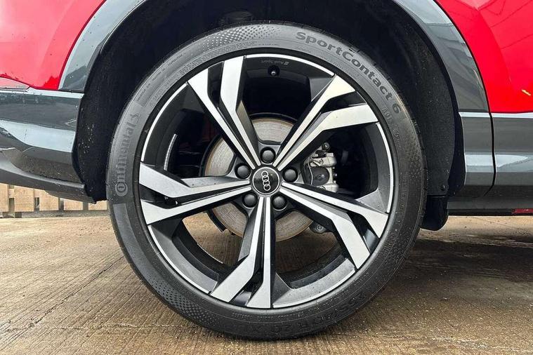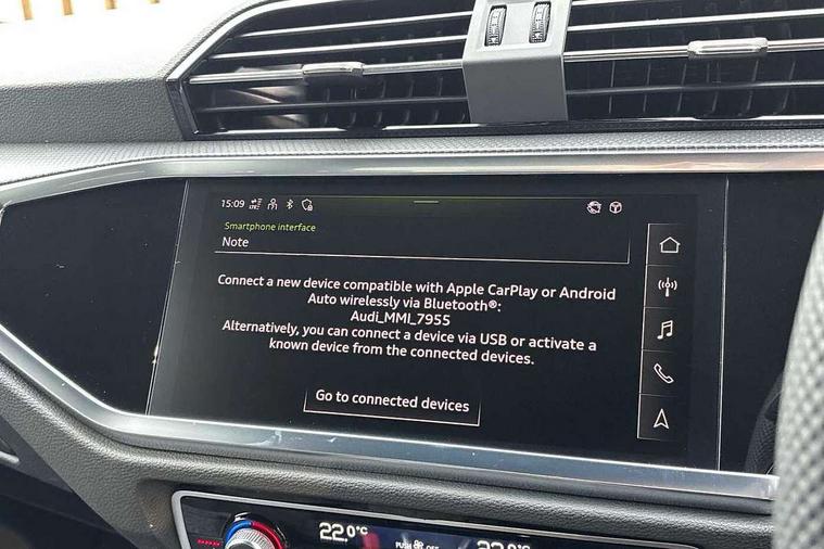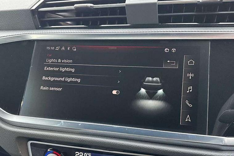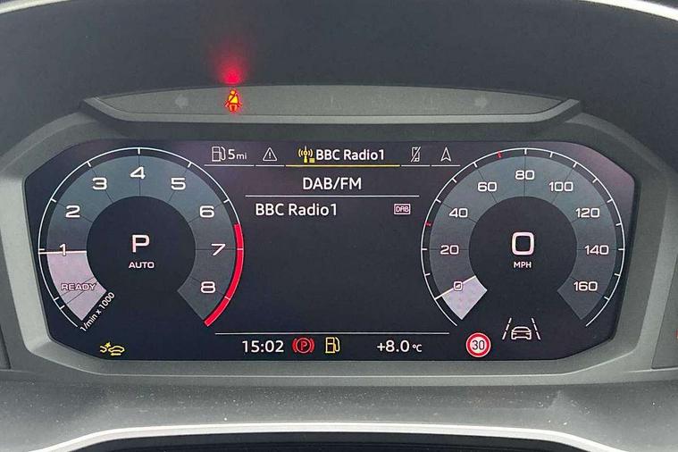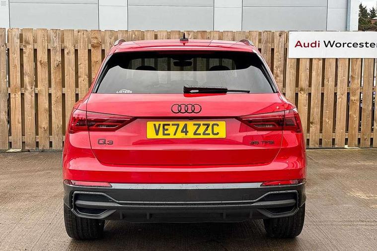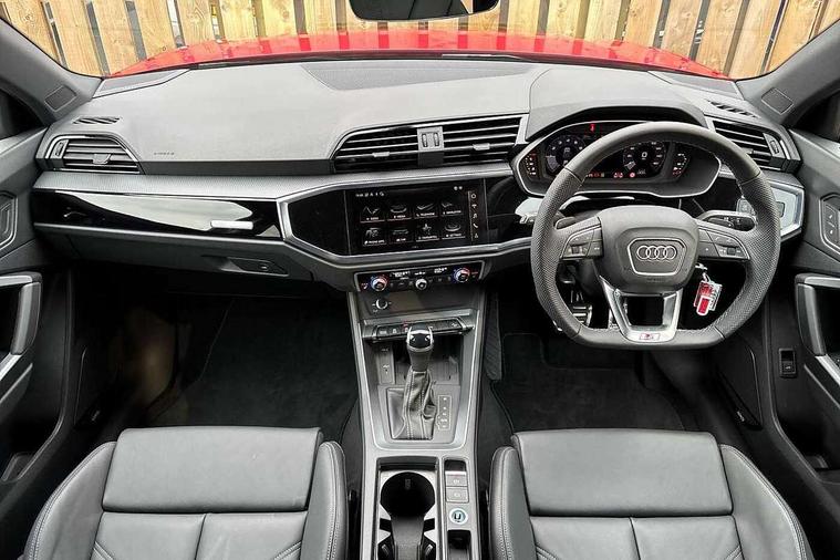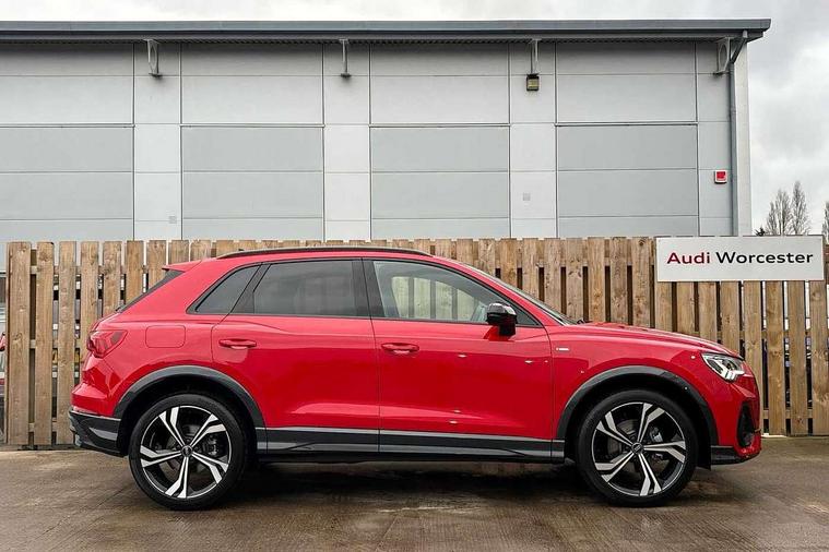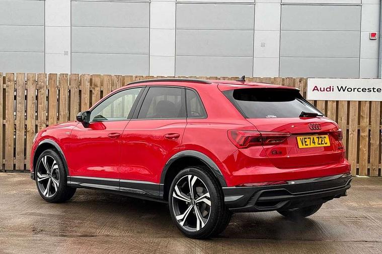 Amazon alexa Integration, Audi connect safety and service, Audi drive select, Audi lane departure warning, Audi smartphone interface includes wireless Apple carplay/Android Auto, Audi Virtual Cockpit - 10.25" display, Bluetooth interface, Camera based traffic sign recognition, Distraction and Fatigue warning, Legal emergency call, MMI Navigation Plus with high resolution 10.1 inch touchscreen colour display, Power operated tailgate, Progressive steering, Service interval indicator, Start stop system with recuperation, Voice control system with natural language interaction, Sports suspension, 2 USB-C ports with charge and data functions, 6 passive loudspeakers, DAB digital radio module, Acoustic windscreen, Audi Beam uses LEDs to project the Audi logo onto the ground as you exit your Q3, Auto dimming door mirrors, Auto dimming frameless rear view mirror, Black roof rails, Electrically folding, adjustable and heated door mirrors with integrated LED side indicators and kerb view function for passenger side, Front and rear electric windows, Front fog lights, Grille vertical bars in aluminium silver/Matt, High gloss black finish B and C pillars, LED Dynamic rear indicators, LED headlights with LED daytime running lights, LED rear lights, LED third brake light, Privacy glass dark tinted rear and rear-side windows (from B-pillar backwards), Rain and light sensors, Rear diffuser grille in grained matt black, Rear diffuser strip in matt anthracite black, Rear side wing doors, Rear wiper, S line bumpers in contrasting Manhattan grey, Variable front intermittent wipers, 12V socket in rear centre console, 3 seat bench in 2nd row, 40:20:40 folding with manual adjustment for 60:40 forwards/backwards position and backrest angle, Adjustable rear seat bench/backrest with centre armrest and cupholder, Black cloth headlining, Dual zone electronic climate control, Electric lumbar support, Front and rear black floor mats with contrast stitching in rock grey, Front and rear headrests, Front centre armrest, Height and reach adjustable steering wheel, Illuminated door sill trims with S logo, ISOFIX child seat mounting for front passenger with airbag deactivation and outer rear seat including top tether attachment point for outer rear seats, Manual front seats with height adjustment, Perforated leather gearknob, Single front passenger seat, Stainless steel luggage compartment sill finisher, Stainless steel pedals, Twin leather upholstery with front sport seats + S embossing, Black styling pack - Q3, Non smoking pack - Q3, 3x3 point rear seatbelts, 6 airbags - Driver, front passenger, curtain and side windows, Audi pre-sense front with pedestrain and cyclist recognition, Electrically operated child locks on rear doors, Electromechanical parking brake, Electronic stabilisation control including ABS, ASR and EDL, Front seatbelt reminder, Hill descent control, Hill hold assist, Pre sense basic, Seatbelt monitoring, Tyre pressure warning, Warning triangle and first aid kit, Anti theft alarm, Anti theft wheel bolts, Immobiliser, Remote central locking, Aluminium look interior elements, Detail dashboard around MMI touch colour display in glass look, black with surround in aluminium look, Leatherette door armrest, Piano black inlay,
