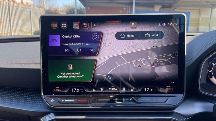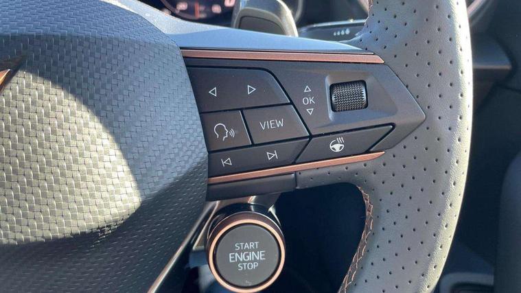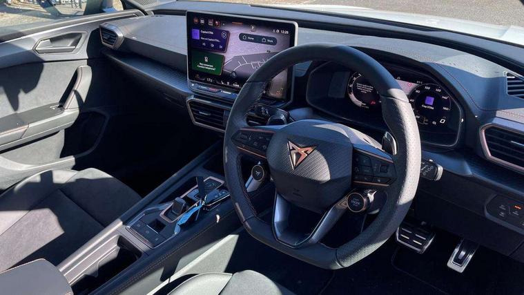 Adaptive cruise control with follow-to-stop and speed limiter, CUPRA drive profile selection with (Comfort/Sport/Individual), throttle response and gearshift mode, Digital cockpit, Dynamic road sign display, E-call, Four x USB Type C ports (2 in front and 2 in rear), Front and rear parking sensors, Front assist with forward collision warning braking reaction to vehicles, pedestrians and cyclists, Full link smartphone integration with Mirror Link, wireless Apple CarPlay and wired Google Android Auto, Lane assist, Lockable tailgate, Rear view camera, RPM, trip computer, outside temp gauge, instrument light brightness, low fuel warning light, lights on reminder, gearshift indicator, Service interval indicator, Start/stop system with regenerative braking, Virtual pedal with electric tailgate, Wireless phone charger, Auxiliary input socket, Auto dimming rear view mirror, Body colour door handles, Body coloured bumpers, Cupra sports bumpers, Dark tinted rear windows, Electric front/rear windows, Electrically adjustable, heated and folding door mirrors, Gloss black roof rails, High beam assist, LED front fog lamps with cornering function, LED headlights with dynamic turn signals, tail lights, rear fog lights with rear coast to coast lighting, LED rear fog lamp, Rain sensing wipers, Rear side wing doors, Rear wash/wipe, Separate daytime running light with automatic headlight control and coming home feature, Third brake light, Welcome light with logo projector in door mirrors, 12v power supply in centre console, 3 seat bench in 2nd row, 5 headrests, 60/40 split rear bench seat with armrest, Ambient lighting (glovebox, footwell, ambient lighting multicoloured), Black headlining, Cupra sports pedals, CUPRA Supersports, heated steering wheel with satellite buttons, Dinamica cloth upholstery, Electrically adjustable driver seat and lumbar support with memory function + manually adjustable passenger seat, Front and rear reading lights X 4, Front centre armrest, Heated front seats, Height/reach adjust steering wheel, Illuminated interior front door sills, Interior wraparound lighting, ISOFIX points in outer rear seats with top tether anchorage points, Single front passenger seat, Sliding boot cover, Storage pockets on rear of front seats, Sunvisors with illuminated mirror, Three zone climate control, Dynamic and comfort pack - Leon Cupra, Media system plus with 12.9" display + navigation pack - Leon Cupra, 3 point seatbelts on all rear seats, ABS, Brake control system - ESC and brake booster, Child proof door locks, Cupra black brake calipers, Driver and front passenger airbags with front passenger airbag de-activation, front side and curtain airbags, Electronic parking brake, Hill hold control, Rear disc brakes, Seat belt reminder for front and rear seats, Tiredness recognition system, Tyre pressure monitoring system, Anti theft alarm system with interior monitoring in cab, backup horn and towing protection, KESSY Advanced - Keyless start, keyless entry, Locking wheel bolts, Chrome and copper interior detailing, 19" Polar machined sport black and silver alloy wheel with 91Y tyres, Tool kit,