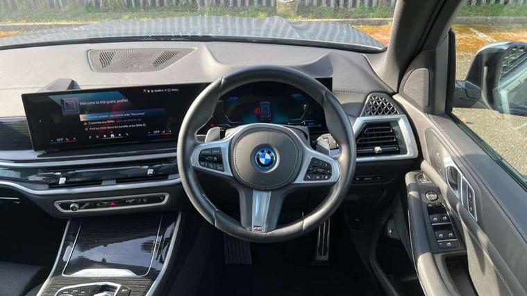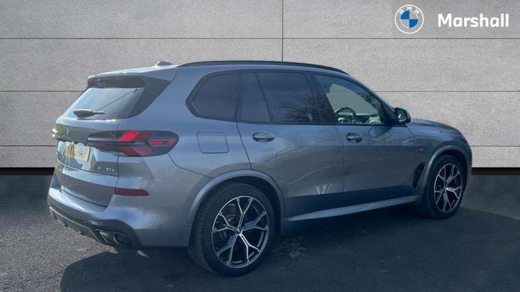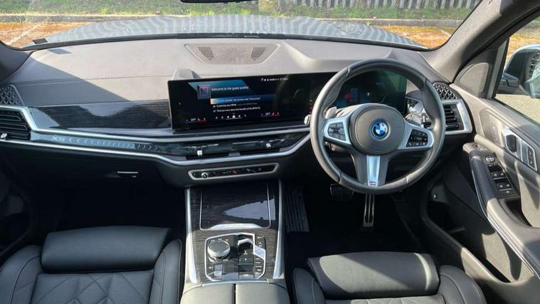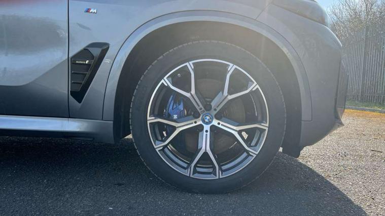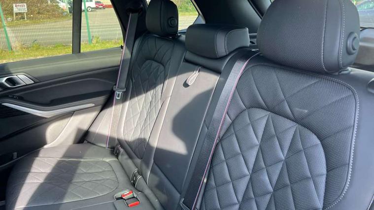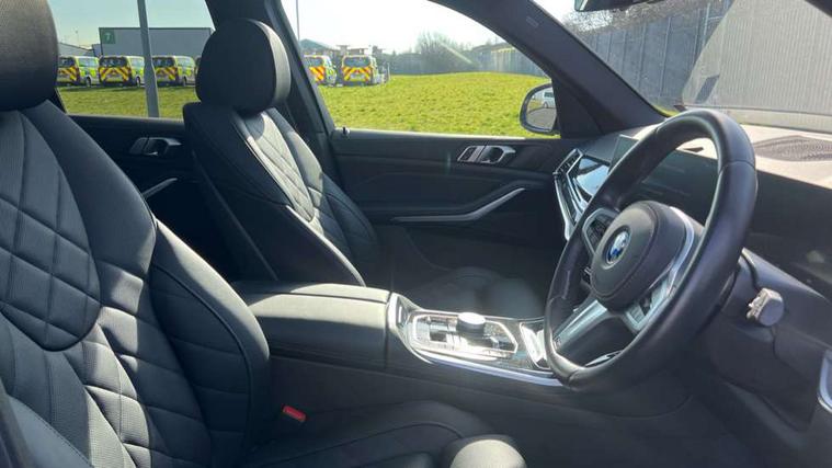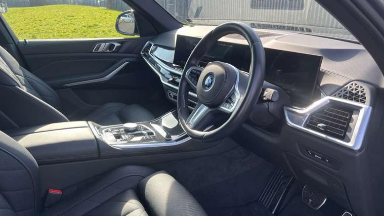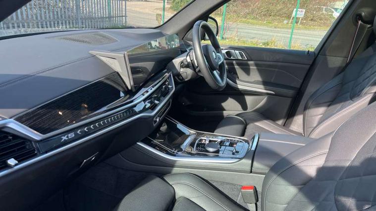 Attentiveness assist, Automatic tailgate operation, BMW ConnectedDrive online services, BMW live cockpit + with curved 12.3 instrument cluster/14.9 central display, nav/Tuner with diversity reception, RDS/4GLTE/remote software upgrade, BMW Teleservices, Condition based service, Cruise control with brake assist, eCall emergency call system, Enhanced bluetooth with wireless charging, Integrated owner's handbook, PAS, Speed limiter, Wi-Fi hotspot, Adaptive 2-axle Front and rear air suspension, Drive performance control with ECO PRO comfort + sport mode, Eight speed steptronic sport automatic transmission and gearshift paddles on the steering wheel, Hi-Fi loudspeaker system, Adaptive LED Headlights, Front and rear electric windows, High beam assistant, High gloss black shadow line roof rails, LED daytime running lights, Rear side wing doors, Third brake light in rear spoiler, Variable intermittent rear wash/wipe, 12V - Power sockets with 2x centre console and 1x luggage compartment, 3 seat bench in 2nd row, Foldable rear centre armrest with 2 cupholders and storage compartment, Front and rear side armrest integrated into door trim, Headrests for all seats, Luggage compartment separating net, Single front passenger seat, Three spoke sport M leather steering wheel, Velour floormats, Ambient light interior pack - X5, Driving assistant pack with radar based driver assistance system - X5, Expanded exterior mirror pack - X5/X5 M, M aerodynamics pack - X5, 3 rear seatbelts, Acoustic protection for pedestrians, Active protection, Airbags - driver/front passenger, rear and side, first and second row seats head airbags, front passenger seat airbag deactivation + knee airbag, Anti-lock braking system (ABS), Automatic Stability Control (ASC), Brake energy regeneration, Cornering brake control (CBC), Crash sensor activating central locking release, hazard warning lights, fuel cut off, interior lighting + activation of safety battery terminal clamp, DSC - Dynamic Stability Control, Dynamic Traction Control - DTC, Electromechanical parking brake with automatic drive away release and auto hold function, Electronic brake force distribution, Hill start assistant, M Sport blue painted brake calipers with 'M' designation, Mechanical child proof lock on rear doors, Tyre pressure monitoring system, Tyre pressure sensors, Ventilated front and rear disc brakes, Warning triangle and first aid kit, Closing system with central locking, Comfort access system, Locking wheel bolts, Sensatec instrument panel,