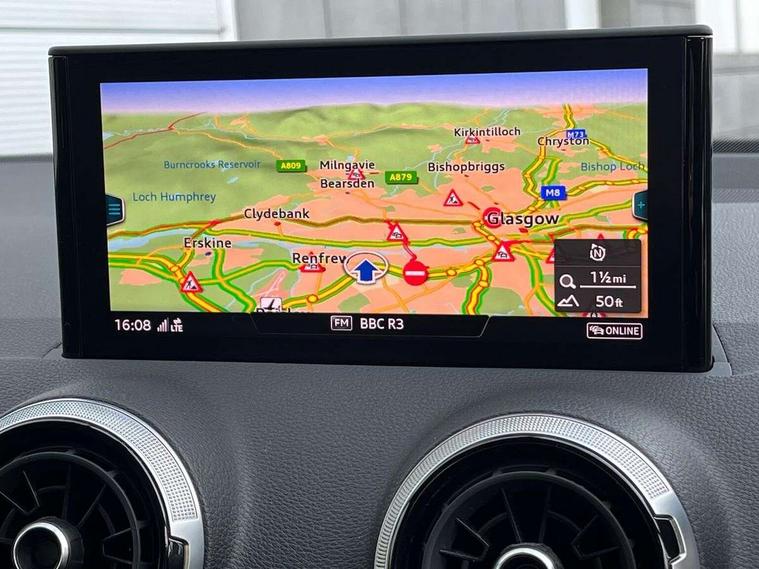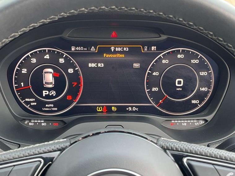 3D map display, Audi connect navigation and infotainment includes innovative services, Audi connect remote and control connects your vehicle to your smartphone, Audi drive select: S tronic - power steering assistance + engine + gearshift (modes: comfort, auto, dynamic, efficiency, individual), Audi smartphone interface - Apple carplay/Android Auto, USB connect, 2xSDXC card readers, voice control for navi, telephone, music and 3rd party apps, Audi virtual cockpit, Automatic start/stop system with recuperation, Bluetooth interface includes bluetooth audio streaming, Cruise control, Distraction and Fatigue warning, E-call, Jukebox hard drive memory for music (10GB), Lane departure warning, MMI navigation plus with 8.8" touchscreen, Natural voice recognition, Power operated tailgate, Progressive steering, Rear parking sensors, Sport suspension, 6 passive loudspeakers, DAB Digital radio, USB type C port, Auto dimming rear view mirror, Black window trims, Body colour door mirrors, Electrically adjustable, folding, auto dimming and heated door mirrors with integrated LED side indicators, Front windscreen with grey tinted sunband, LED daytime running lights, LED headlights with dipped beam, high beam, position lights, indicators, LED rear lights, LED third brake light, Privacy glass - dark tinted rear and rear side windows from B-pillar backwards, Rear side wing doors, Rear wiper, S Line badges on the front wings, S Line body styling - front and rear bumpers, side skirts, radiator grille, rear diffuser insert and front air intakes, Variable front intermittent wipers, Wheel arch trims in manhattan grey, 12v socket in front, 3 seat bench in 2nd row, 3 spoke multi-function leather steering wheel with S badging, 4-way electric lumbar support for front seats including manual seat height adjustment for both front seats, 60/40 split folding rear seat bench, Black carpets, Black cloth headlining, Front and rear head restraints, Front centre armrest, Front sport seats, Front/rear floor mats, Height/reach adjust steering wheel, Illuminated door sill trims with S logo, ISOFIX child seat mounting in front passenger and rear outer seats, Manual air conditioning, Single front passenger seat, Stainless steel pedals, 3x3 point rear seatbelts, 6 airbags - Front, curtain and front side airbags, Electromechanical parking brake, Electronic stabilisation control including ABS, ASR and EDL, Front passenger airbag deactivation, Hill hold assist, Pre-sense front with pedestrian recognition, Seatbelt monitoring, Tyre pressure warning light with visual and acoustic warning, Warning triangle and first aid kit, Anti theft alarm, Anti theft wheel bolts, Electronically operated child locks, Remote central door locking, Aluminium interior element, Black dashboard, Gloss black centre console, Matt brushed aluminium trim inlays, Tool kit,