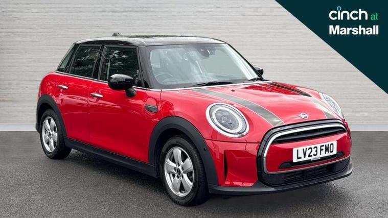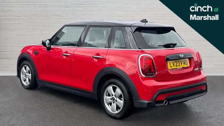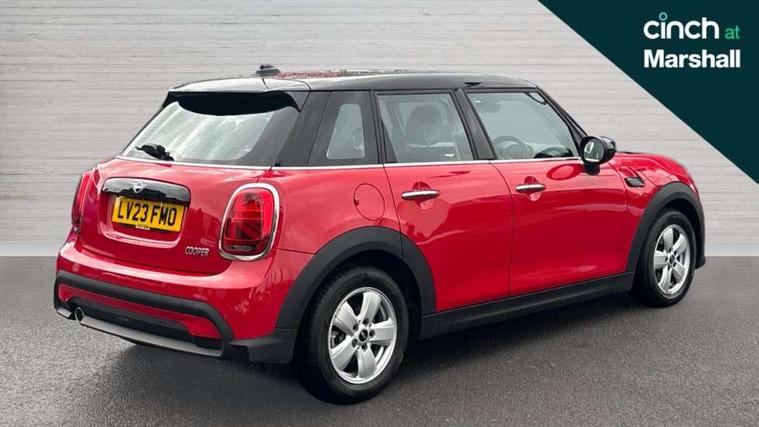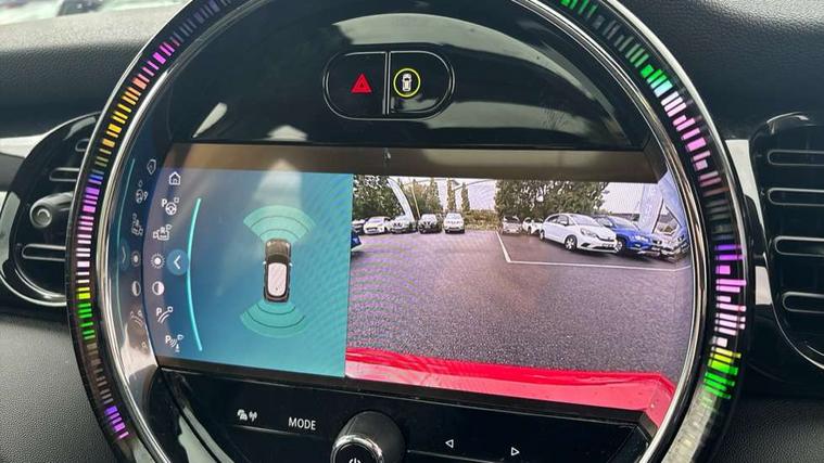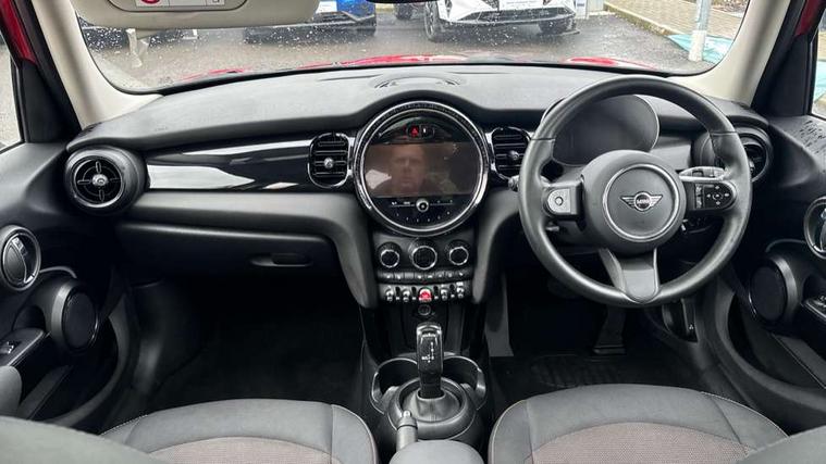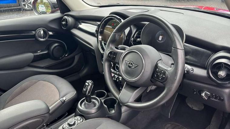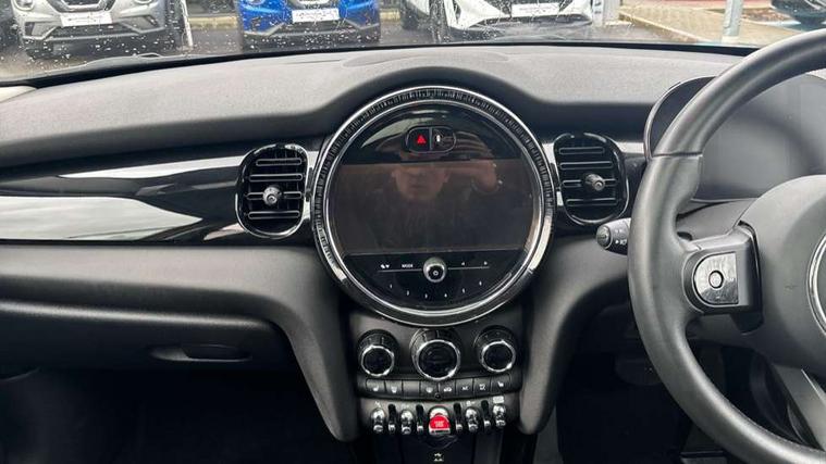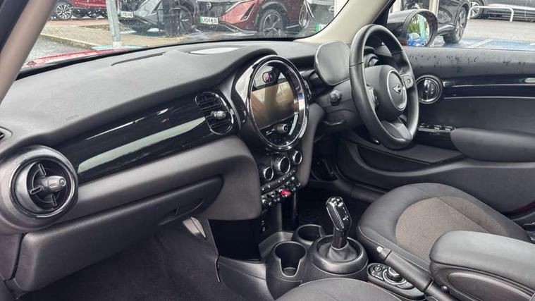 Apple CarPlay, Automatic start/stop function with brake energy recuperation, Compatible mobile phone bluetooth with audio streaming, Electro-mechanical speed dependant steering assistance, Flexible car sharing preparation, Mini E-call, MINI TeleServices, On board computer, Service interval indicator, Double Vanos system, Fully variable valve control, Gear change indicator display, High precision injection, Performance Control, Steptronic transmission with double clutch, 8.8" touchscreen with LED ring, FM tuner and DAB digital radio, 3rd brake light, Automatic headlight activation switch, Body colour fuel filler cap, Chrome border high gloss black slats radiator grille, Dynamic brake lights, Electric front+rear windows, Exhaust tailpipe on left with chrome finisher, Heated rear window, Heated windscreen washer jets, Metal door sill strips with MINI imprint, Model logo Cooper on right of tailgate, Rain sensor window wipers, Rear fog lights, Rear LED lights with union jack design, Rear side wing doors, Rear window wiper, Side scuttle panel with integrated indicator, Sun/heat protection glass, White indicator lenses, 12V Accessory socket in centre console, 3 seat bench in 2nd row, 4 lashing eyes in luggage compartment, 60/40 split folding rear seat, Ambient lighting, Carbon black colour line - Knee roll and door armrest, Chrome interior highlights, Cupholders, Front and rear head restraints, Front and rear isofix with front passenger airbag deactivation, Front and rear velour floor mats, Glove compartment, Height and length steering column adjustment, Interior lighting with 12 different colours across the dashboard, underneath door bezel with illuminated laser-engraved design on central display, Leatherette gearshift lever and handbrake gaiters, LED reading lights, vanity mirror lights, front foot well light and spotlight on front seats, Mechanical seat adjustment - forward/back & backrest for front seats and driver seat height adjust, Multifunction steering wheel, Satellite grey headlining including grab handles and clothes hooks, Single front passenger seat, Sport leather steering wheel with speed limiter and audio/communication controls, Storage compartments in doors, Sunvisors with vanity mirrors, 3 point seatbelts on all five seats, 6 Airbags - front, side, head and seat belt tensioners, Anti-lock braking system (ABS), Child locks on rear doors, DSC - Dynamic Stability Control, Front and rear disc brakes, Hill start assist, Single tone fanfare horn, Tyre pressure monitoring system, Alarm system with tilt sensor, monitoring doors, bonnet interior and tailgate, Electronic vehicle immobiliser, Start/stop toggle with keyless go, Piano black interior trim, Tool kit, Tyre repair kit,