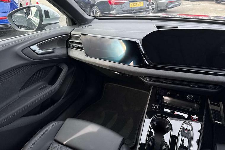 Adaptive cruise assist plus with steering intervention, Advanced driver attention and fatigue montior, Audi application store, Audi assistant, Audi connect emergency call and service, Audi drive select, Audi smartphone interface, Audi virtual cockpit plus with 11.9" OLED colour display, Automatic start/stop system with coasting functionality, Camera based traffic sign recognition, Garage door opener, Intersection assist, Lane change assistant with exit warning system, rear cross traffic alert and rear turn assist, Lane departure warning with emergency assist, MMI 10.9" front passenger touch display, MMI navigation plus with high resolution 14.5" OLED touchscreen colour display, Park assist plus, Parking system plus with 360 display, Progressive steering with servotronic, Swerve assist and turn assist, Top view camera, Traffic sign based speed limiter, Quattro with sport differential, S sports suspension with damper control lowered by 20mm, 2 USB-C ports in both the front and rear, DAB digital radio reception, Smartphone compartment with wireless charging, Aluminium window trims, Auto dimming rear view mirror, Black door handles, Black door mirrors, Black roof rails, Dark chrome-plated tailpipe trims, Digital OLED tail lights including communication light, Door mirrors - electrically adjustable, heated, folding and auto dimming on both sides, Front and rear electric windows, Front door sill trims with aluminium inlays, illuminated with 'S' logo, Headlight cleaning system, High beam assist, LED daytime running lights, LED third brake light, Matrix LED headlights with eight light signatures selectable via the MMI or the myAudi app, Panoramic glass roof with switchable transparency, Privacy glass, Rear and side windows with heat insulating glass, Rear side wing doors, Rear wash/wipe, Red S rhombus badging with S lettering on rear, S bumpers, radiator grille and diffuser in titanium matt black and diffuser insert in matt silver, White rhombus logo projection light in exterior mirrors, Windscreen with acoustic glazing, 3 rear headrests, 3 seat rear bench, 3 spoke leather steering wheel with multi-function buttons with touch control, flattened on top and bottom, with S badging and contrast stitching, 3-zone automatic climate control, 40:20:40 split folding rear seat bench with centre armrest and cup holders, Comfort front centre armrest, Electric steering wheel adjustment, Electrically adjustable front seats, Front and rear floor mats, Front sport seats plus with integrated headrest and S embossed logo, Headlining in black cloth, Heated front and outer rear seats, Heated steering wheel, i-Size child seat mounting on the front passenger side and i-Size and top tether on the outer rear seats, Luggage compartment lid, electrically opening and closing, Memory function for driver seat, Pearl Nappa leather upholstery, Pneumatically adjustable lumbar support, Single front passenger seat, Stainless steel pedals and footrest, Steering wheel grips in perforated leather and shift paddles, Ventilation seat and massage function for the driver and front passenger, Black styling package plus - A5, Sound and vision pack - A5, 3x3 point rear seat belts, Acoustic vehicle alerting system, Convenience key with safelock, Driver airbag, Electric child safety locks, First aid kit with warning triangle and vests, Front emergency brake assist, Front passenger airbag, Front passenger airbag deactivation, Hill hold assist, Occupant detection in rear seat area, Proactive passenger protection system for front, sides and rear, Red brake calipers, Seat belt monitoring with rear seat occupant reminder, Side airbags in front and rear with head airbag system and front interaction airbag, Tyre pressure loss indicator, Anti theft alarm, Anti-theft wheel bolts, Keyless Go, Accent surfaces and control buttons in gloss black, Black dashboard with contrast stitching, Softwrap in Dinamica with contrast stitching, Upper and lower interior elements in dinamica microfiber, 20" 5 twin spoke design Audi Sport alloy wheels in metallic black and gloss turned finish, Tyre repair kit,