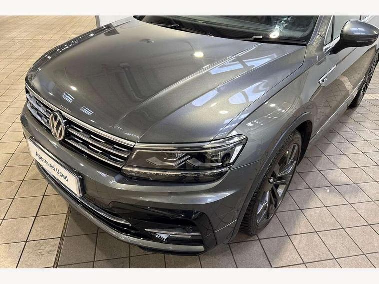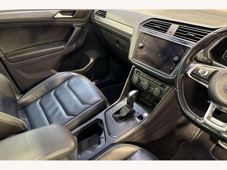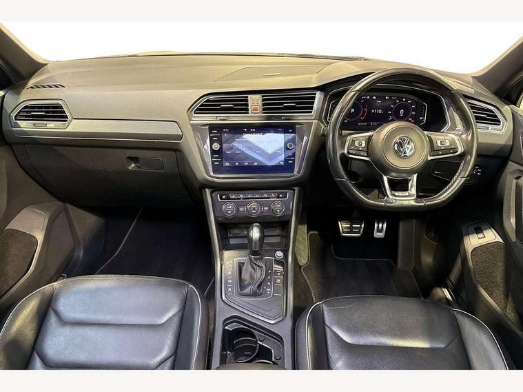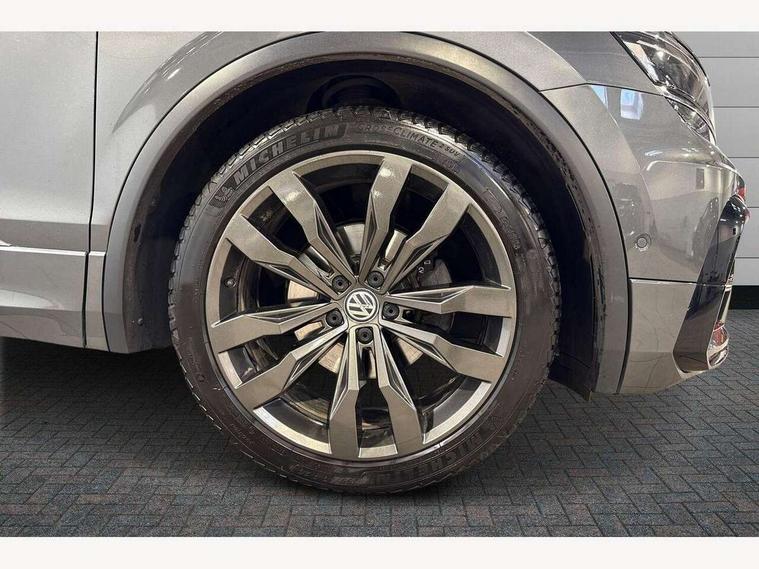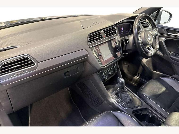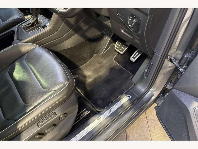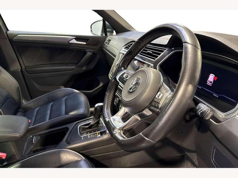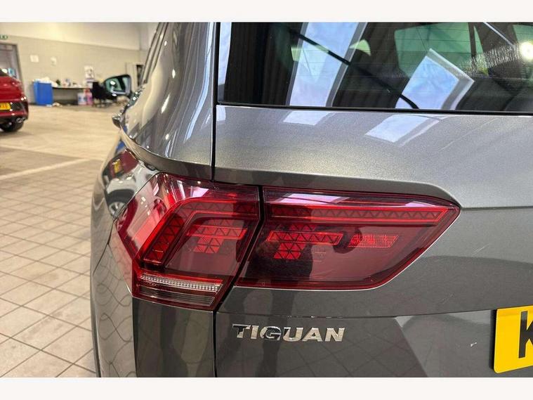 2D/3D map view, Active information display, Adaptive cruise control, App-Connect, Area view with park assist steering and front and rear parking sensors, Bluetooth phone integration system, Car information display, Distance control assist, Driver alert system with fatigue detection, Driver profile selection, Front assist, radar sensor controlled distance monitor, city emergency braking + predictive pedestrian protection, Fully electric tailgate + keyless entry and start, Instrument cluster, Lane assist, Lights on warning, Multifunction computer with visual gear change recommendation for fuel consumption, Outside temperature display, Progressive power assisted steering, Service interval indicator, Speed limiter, Start/Stop function, Warning sound and light for doors and tailgate open, Battery regeneration during braking, Diesel particulate filter, Misfuel prevention device for diesel engine, XDS electronic differential lock for improved traction and handling, 2 x USB connection + USB charging socket, 4 X 20 watt output, DAB Digital radio, SD card slot, Simultaneous pairing of 2 compatible mobile devices, SMS functionality - read, compose and send SMS messages using touch-screen display, Title and cover art display, 3D effect cherry red LED rear tail lights, Aluminium decorative inserts in dash and door panels, Auto dimming interior mirror, Automatic activation of hazard warning lights, Body colour door handles, Body colour door mirrors, Body colour rear spoiler, Body colour side skirt, Body coloured bumpers, Chrome side window surrounds, Chrome trimmed radiator grille, Coming/leaving home lighting function, Dusk sensor + auto driving lights, Electric panoramic sunroof with sunblind, Electrically heated and foldable door mirrors, door mirror puddle lights and reverse activated kerb view adjustment on passenger's door mirror, Front and rear electric windows, Heated rear window, High level 3rd brake light, LED headlights with dynamic light assist daytime running lights and cornering front fog lights, LED rear number plate lights, Piano black front air intake and rear diffuser, R Line body kit, R Line side sills, Rain sensor windscreen wipers, Rear tinted glass from B-pillar backwards approx 65% tinted, Rear windscreen washer and wiper with interval delay, Side skirts and rear bumper with chrome insert, Silver front underbody protection and rear diffuser, Silver roof rails, Trailer Stability Programme, Unique R Line badging, Windscreen wipers/ intermittent wipe + 4 position delay, 12V socket in centre console storage area, 2 cup holders in front, 3 rear headrests, 3 zone climate control, 4 load lashing points, 40:20:40 split folding rear seats, Bag hook in luggage compartment, Black headlining, Foldable front passenger seat backrest, Front + rear carpet mats, Front centre armrest with 12v socket, Front centre armrest with storage + rear 2 air vents, Front seat back storage pockets, Front seat R Line logo with rear seat backrest, Front seatback folding tables, Height/reach adjust steering wheel, Illuminated driver/passenger vanity mirrors, Illuminated scuff plates, Instrument lighting white adjustable panel illumination, Interior light with delay, Isofix Preparation 2 Rear child seats, Leather gear knob, Load through provision with 2 cupholders when folded, Lockable cooled glovebox, Luggage compartment lighting, Map pockets on front seats, Passenger seat height adjuster, Removable luggage cover, Sliding/reclining rear seats, Stainless steel pedals, Storage compartment in driver's door, Storage compartment in passenger's door, Storage compartment in rear doors, Storage compartments in luggage area left and right, Storage tray on dashboard, Sunglasses storage, Three spoke leather trimmed multifunction steering wheel with aluminium inserts and R Line Logo including paddle shift, Unique R Line door sill protectors, Variable boot floor, height adjustable and removable, Ambient lighting pack - Tiguan, R Line styling pack - Tiguan, 3 rear 3 point seatbelts, ABS+EBD+Brake assist, Active bonnet, Active pedestrian safety system, Curtain airbags, Driver/Front Passenger airbags, Driver/Passenger whiplash optimised head restraints, Drivers knee airbag, DTC - Drag torque control, Electronic parking brake with auto hold, ESC with EDL, ASR, EDTC and trailer stabilisation function, First aid kit, Front seat side impact airbags, Front side airbags, Front ventilated disc brakes and rear disc brakes, Head airbag system, Height adjustable front 3 point seatbelts + pretensioners, Hill hold control, Passenger airbag deactivate switch, Passenger knee airbag, Pre crash preventive occupant protection, Rear side airbags, Rigid safety cell with front and rear crumple zones, Two tone horn, Warning sound and light for front seat belts if unfastened, Warning triangle, Alarm with interior protection, Electronic engine immobiliser, Remote central locking with 2 remote folding keys, Chrome door trim inserts, Dark grey decorative inserts in dash and door panel, Piano black decorative inserts in centre console, 20" Suzuka alloy wheels with mobility self sealing tyres + anti theft wheel bolts, Steel space saver spare wheel,