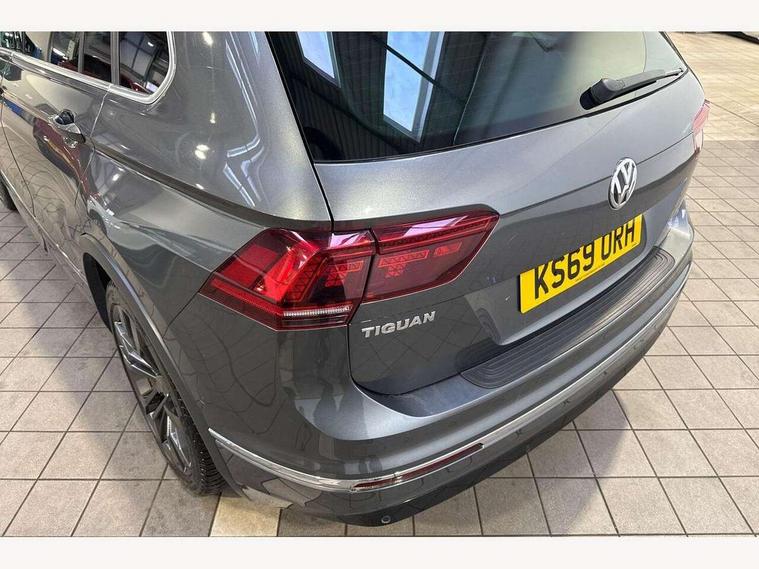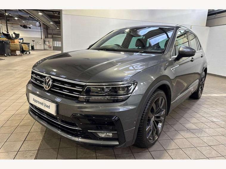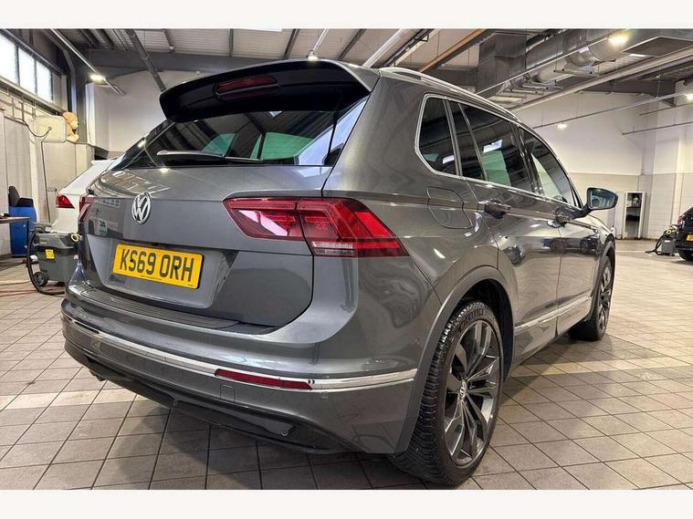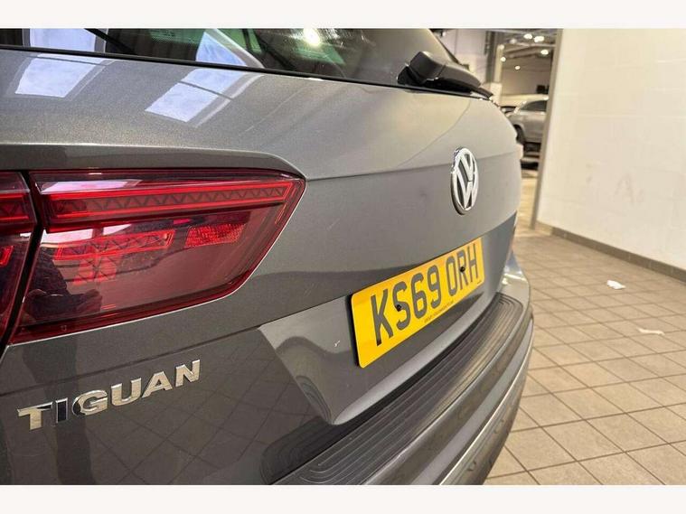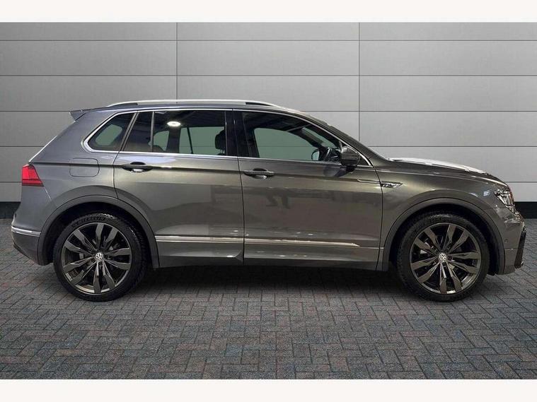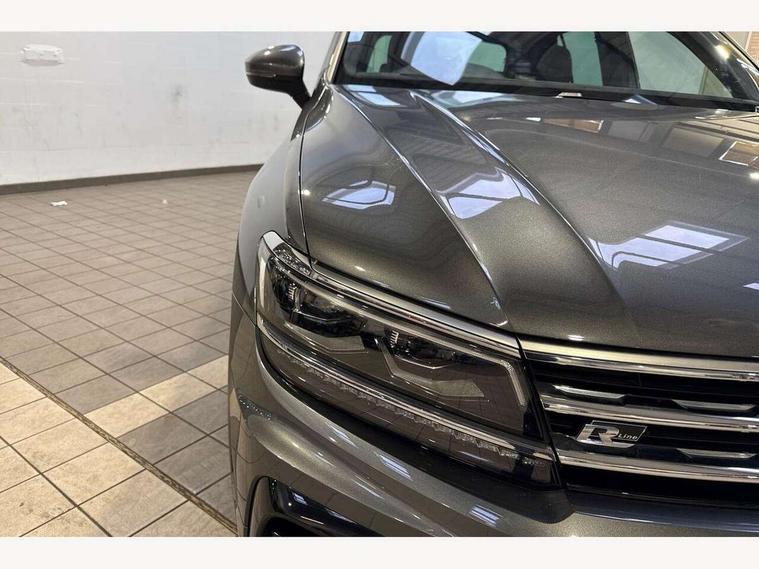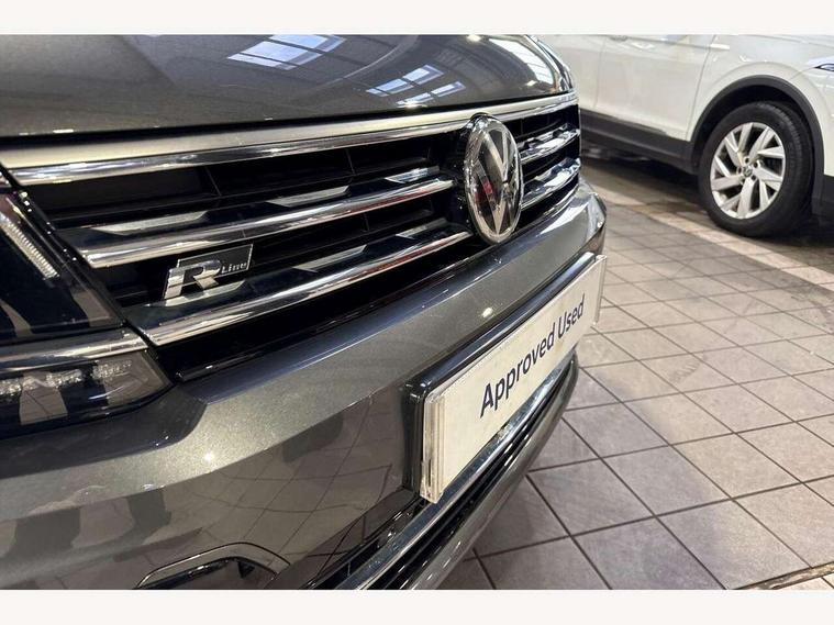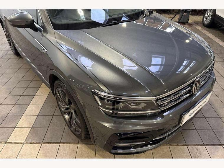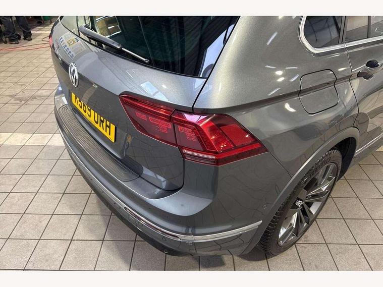 2D/3D map view, Active information display, Adaptive cruise control, App-Connect, Area view with park assist steering and front and rear parking sensors, Bluetooth phone integration system, Car information display, Distance control assist, Driver alert system with fatigue detection, Driver profile selection, Front assist, radar sensor controlled distance monitor, city emergency braking + predictive pedestrian protection, Fully electric tailgate + keyless entry and start, Instrument cluster, Lane assist, Lights on warning, Multifunction computer with visual gear change recommendation for fuel consumption, Outside temperature display, Progressive power assisted steering, Service interval indicator, Speed limiter, Start/Stop function, Warning sound and light for doors and tailgate open, Battery regeneration during braking, Diesel particulate filter, Misfuel prevention device for diesel engine, XDS electronic differential lock for improved traction and handling, 2 x USB connection + USB charging socket, 4 X 20 watt output, DAB Digital radio, SD card slot, Simultaneous pairing of 2 compatible mobile devices, SMS functionality - read, compose and send SMS messages using touch-screen display, Title and cover art display, 3D effect cherry red LED rear tail lights, Aluminium decorative inserts in dash and door panels, Auto dimming interior mirror, Automatic activation of hazard warning lights, Body colour door handles, Body colour door mirrors, Body colour rear spoiler, Body colour side skirt, Body coloured bumpers, Chrome side window surrounds, Chrome trimmed radiator grille, Coming/leaving home lighting function, Dusk sensor + auto driving lights, Electric panoramic sunroof with sunblind, Electrically heated and foldable door mirrors, door mirror puddle lights and reverse activated kerb view adjustment on passenger's door mirror, Front and rear electric windows, Heated rear window, High level 3rd brake light, LED headlights with dynamic light assist daytime running lights and cornering front fog lights, LED rear number plate lights, Piano black front air intake and rear diffuser, R Line body kit, R Line side sills, Rain sensor windscreen wipers, Rear tinted glass from B-pillar backwards approx 65% tinted, Rear windscreen washer and wiper with interval delay, Side skirts and rear bumper with chrome insert, Silver front underbody protection and rear diffuser, Silver roof rails, Trailer Stability Programme, Unique R Line badging, Windscreen wipers/ intermittent wipe + 4 position delay, 12V socket in centre console storage area, 2 cup holders in front, 3 rear headrests, 3 zone climate control, 4 load lashing points, 40:20:40 split folding rear seats, Bag hook in luggage compartment, Black headlining, Foldable front passenger seat backrest, Front + rear carpet mats, Front centre armrest with 12v socket, Front centre armrest with storage + rear 2 air vents, Front seat back storage pockets, Front seat R Line logo with rear seat backrest, Front seatback folding tables, Height/reach adjust steering wheel, Illuminated driver/passenger vanity mirrors, Illuminated scuff plates, Instrument lighting white adjustable panel illumination, Interior light with delay, Isofix Preparation 2 Rear child seats, Leather gear knob, Load through provision with 2 cupholders when folded, Lockable cooled glovebox, Luggage compartment lighting, Map pockets on front seats, Passenger seat height adjuster, Removable luggage cover, Sliding/reclining rear seats, Stainless steel pedals, Storage compartment in driver's door, Storage compartment in passenger's door, Storage compartment in rear doors, Storage compartments in luggage area left and right, Storage tray on dashboard, Sunglasses storage, Three spoke leather trimmed multifunction steering wheel with aluminium inserts and R Line Logo including paddle shift, Unique R Line door sill protectors, Variable boot floor, height adjustable and removable, Ambient lighting pack - Tiguan, R Line styling pack - Tiguan, 3 rear 3 point seatbelts, ABS+EBD+Brake assist, Active bonnet, Active pedestrian safety system, Curtain airbags, Driver/Front Passenger airbags, Driver/Passenger whiplash optimised head restraints, Drivers knee airbag, DTC - Drag torque control, Electronic parking brake with auto hold, ESC with EDL, ASR, EDTC and trailer stabilisation function, First aid kit, Front seat side impact airbags, Front side airbags, Front ventilated disc brakes and rear disc brakes, Head airbag system, Height adjustable front 3 point seatbelts + pretensioners, Hill hold control, Passenger airbag deactivate switch, Passenger knee airbag, Pre crash preventive occupant protection, Rear side airbags, Rigid safety cell with front and rear crumple zones, Two tone horn, Warning sound and light for front seat belts if unfastened, Warning triangle, Alarm with interior protection, Electronic engine immobiliser, Remote central locking with 2 remote folding keys, Chrome door trim inserts, Dark grey decorative inserts in dash and door panel, Piano black decorative inserts in centre console, 20" Suzuka alloy wheels with mobility self sealing tyres + anti theft wheel bolts, Steel space saver spare wheel,