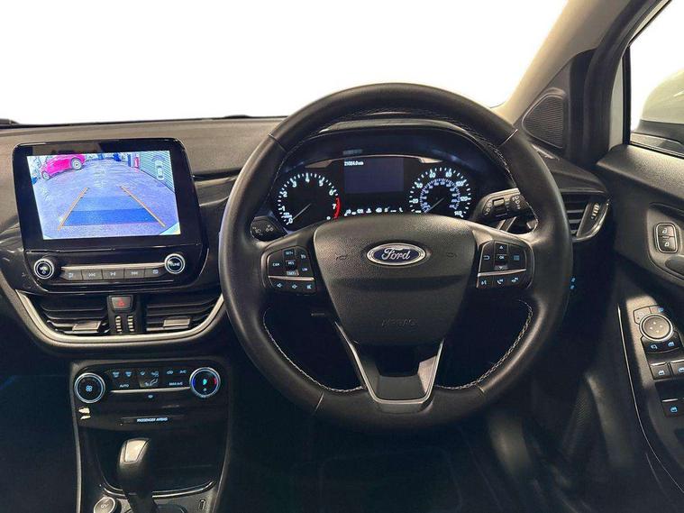 Ford easy fuel, Lane keeping aid with lane departure warning, Power assist steering, Rear parking sensor, Selectable drive modes(Normal, sport, Eco, trail, slippery), Body coloured door mirrors, Front fog lights with cornering lights and LED rear lamps, Power foldable heated door mirrors with puddle lamps, Quickclear heated windscreen, Rear wiper, Centre console with armrest and stowage, Cloth upholstery, EATC - Electronic Auto Temperature control, Ford megabox extended bootspace, Front and rear head restraints, Front floor mats, Leather steering wheel/gear knob/handbrake, 3 rear seatbelts, Electronic stability control (ESC) and hill start assist, Pre-collision assist with autonomous emergency braking, pedestrian/cyclist detection & post-collision braking, Tyre pressure monitoring system (TPMS), Thatcham alarm, 17" 10 spoke absolute black machined finish alloy wheel,