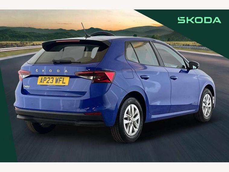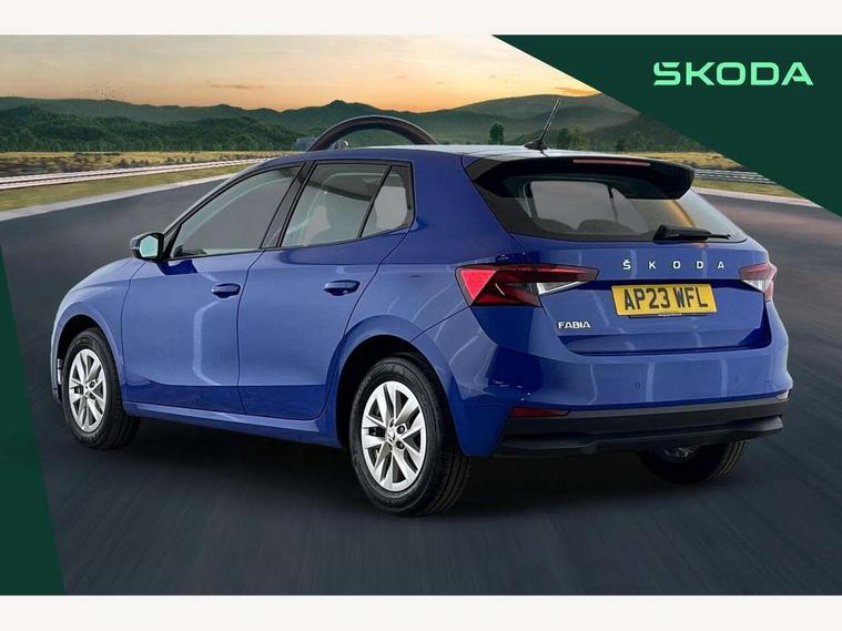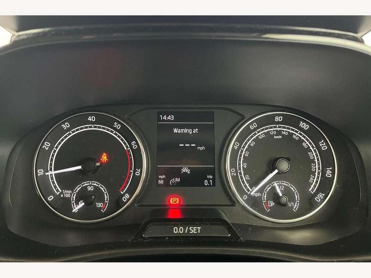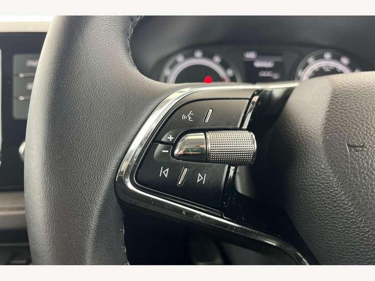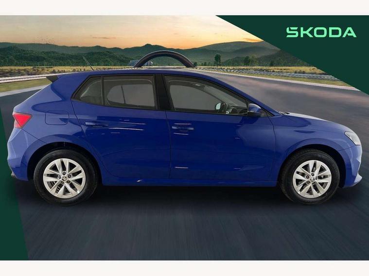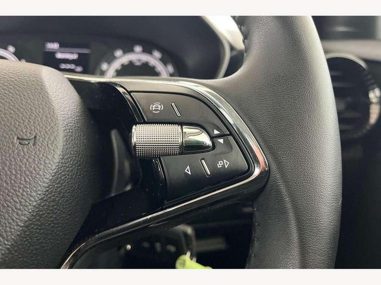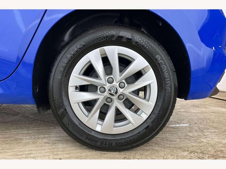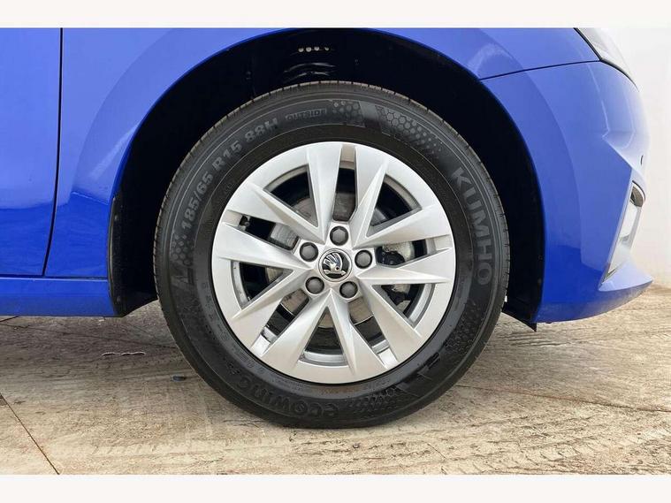 Bluetooth connection, Driver alert system - DAS, Electromechanical power steering, Exterior temperature gauge, Lane assist including road edge detection, Multifunction trip computer in black and white, Service interval indicator, Speed limiter, 2x USB-C in the front (for data transmission and charging), 4 speakers in front, Auxiliary socket for external MP3 player, DAB digital radio reception, Radio Swing with 6.5" colour display, Basic LED Headlights, Basic rear lights, Body colour door mirrors, Body coloured bumpers, Dimming rear view mirror with black frame, Door mirror integrated indicators, Electrically adjustable and heated door mirrors, Electrically adjustable front windows with function auto up/down, Front fog lights, Front window wiper intermittent control, Headlight range control - Automatic, Ice scraper in fuel cap, LED daytime running lights with coming and leaving home feature, Mechanical adjustable rear windows, Rain sensor, Rear LED fog light, Rear side wing doors, Rear window wiper with washing nozzles, Roof mounted spoiler, SKODA tailgate lettering in chrome, Third brake light, 2 reading lights in front and 2 reading lights in rear, 2 spoke leather multifunction steering wheel, 3 rear headrests, Backrest split and folding, Central console with fixed cup holder and storage box, Chrome handbrake release button, Fabric upholstery, Gearshift knob/handle in leather, Grain satin black interior door handles, Hand brake lever handle in leather, Height adjustable front headrests, Height adjustable front seats, Height adjustable steering wheel, ISOFIX and TopTether anchorage points to the outer rear seats, ISOFIX and TopTether on the front passenger seat, Luggage compartment lighting, Manual air conditioning, Manually adjustable lumbar support in front seats, Pollen filter, Rear seat bench unsplit, Single front passenger seat, Storm grey headlining, Sun visors with mirror and airbag label on passenger side, Ticket holder, 3-point height adjustable front seats belts with pretensioner and force limiter, Automatic warning lights in case of crash, Driver and passengers airbag with switch off function, e-Call+, ESC including ABS, MSR, ASR, EDS, HBA and XDS, Front and rear seat belt warning, FRONT ASSIST (AEB City and AEB Inter Urban), Front side airbags, Head airbags, One tone horn, Pedestrian protection, Three rear 3-points safety seat belts with pretensioner and force limiter including stop function for outer rear seat belts, Tyre pressure monitoring system, Anti-theft alarm system including immobiliser, interior monitoring, backup horn, and towing protection, Central locking with radio remote control, interior controls, SAFE function and 2 foldable keys, Black painted air vents, Glossy black decorative trim, Grain satin black central console cover, Grain satin black lower decorative trim, Satin black door and side trim panel in front, Anti-theft wheel bolts protection, Super-low rolling resistance tyres,