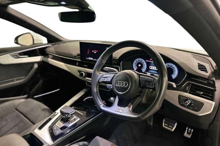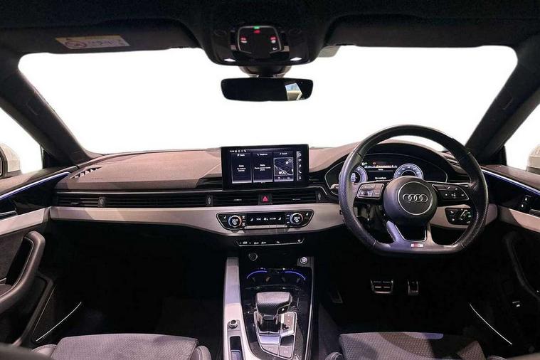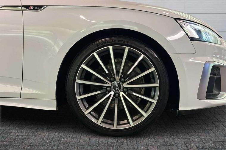 Audi connect safety and service (e-call), Audi connect with Amazon Alexa Integration, Audi drive select (Auto, Comfort, Dynamic and Individual), Audi parking system plus with front and rear sensors, Audi smartphone interface, Audi virtual cockpit - 12.3" full colour digital instrument cluster, vehicle/engine speed, Radio/media information+Driver assistance systems, Automatic start-stop system with coasting functionality and efficiency programme, Bluetooth interface, Electro-mechanical power steering, Email, calendar and text messages displayed via MMI, MMI nav+ with MMI touch - 10.1" high resolution MMI display, touch sensitive, 3D map, route/country info, dynamic route guide, personal route assist, Power operated tailgate, Rear view camera, Service interval indicator, Voice control system, Sports suspension lowered by 23mm, 8 passive loudspeakers, CD player, DAB digital radio reception, Two additional USB ports for rear passenger in rear centre console, Two SDXC card slots, Audi matrix LED headlights with LED rear lights + dynamic front and rear indicators, Auto dimming rear view mirror, Body colour bumpers, Body colour door handles, Body colour front spoiler lip, Body colour side sill trim, Body coloured door mirrors, Electric adjustable heated door mirrors, Electric folding door mirrors, Electric front windows, Front fog lights, Honeycomb structure radiator grille in grained matt black, LED daytime running lights, LED third brake light, Matt aluminium silver tailpipe trim, Privacy glass, Rain and light sensors, Rear side wing doors, S line badges on front wings, S line front and rear bumpers with side skirts, S Line rear diffuser in matt titanium black with trim strip in matt aluminium silver, Side air inlets in grained matt black with matt aluminium silver inlay, Variable front intermittent wipers, Windscreen with acoustic glazing, 4 way electric lumbar support for driver and front passenger, 40/20/40 split folding 3 seater rear bench seat, Adjustable steering column, Black cloth headlining, Black perforated leather gearknob, Contrast stitching on seats, steering wheel and gear lever gaiter, Deluxe 3 zone electronic climate control, Front centre armrest, Front head restraints, Front/rear floor mats, Heated front seats, Illuminated door sill trim with S logo, ISOFIX child seat mounting and top tether, Luggage compartment mat, Manual seat adjustment, Rear headrests, Single front passenger seat, Stainless steel pedals, Sunvisors with vanity mirrors, LED interior light pack - A5/RS5, 3x3 point rear seatbelts, 6 airbags - Driver, front passenger, curtain and side airbags, Electromechanical parking brake, Electronic Stabilisation Control (ESC) including ABS, ASR and EDL, Front passenger airbag deactivation, Height adjustable front seatbelts, Hill hold assist, Manual child lock in rear doors, Multi collision brake assist, Pop-up bonnet for pedestrian protection, Pre sense city, Seatbelt monitoring, Tyre pressure warning, Variable restraint system, Warning triangle and first aid kit, Anti theft alarm system, Anti theft wheel bolts, Immobiliser, Keyless Go, Remote central locking, Matt brushed aluminium inlays, Tool kit, Tyre repair kit,