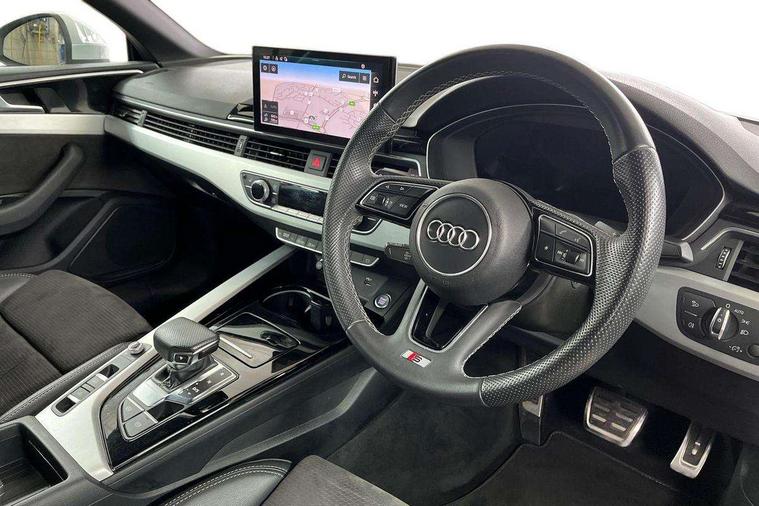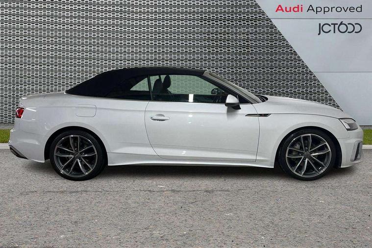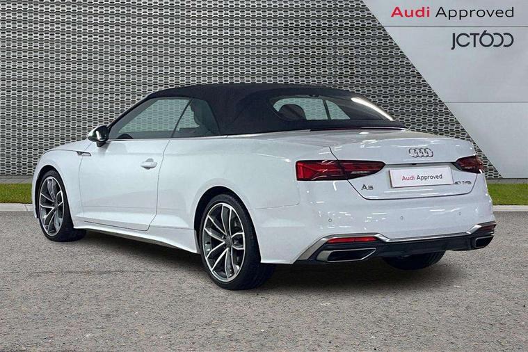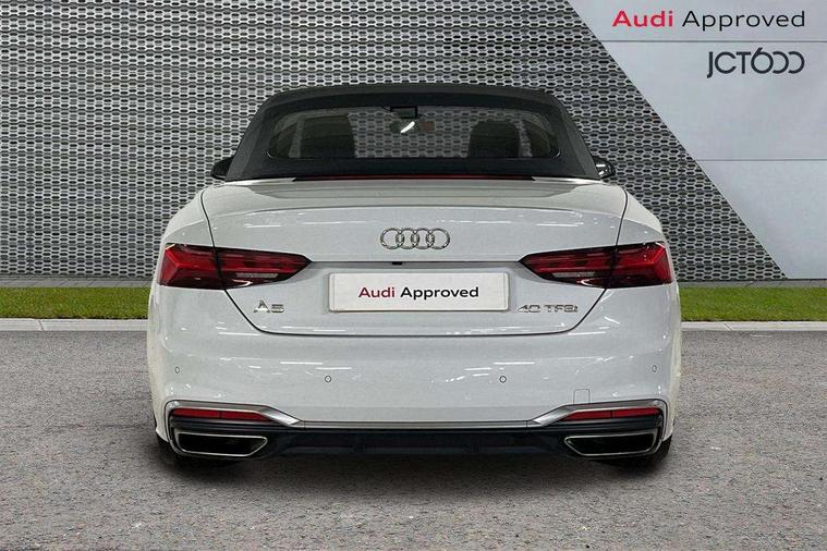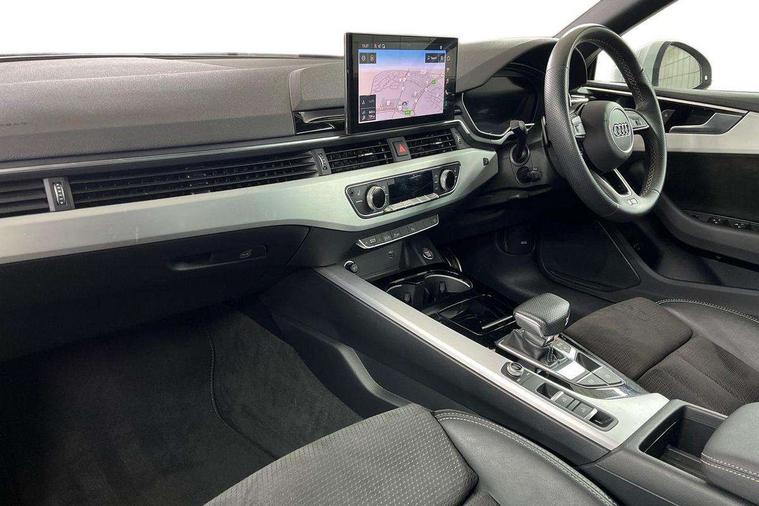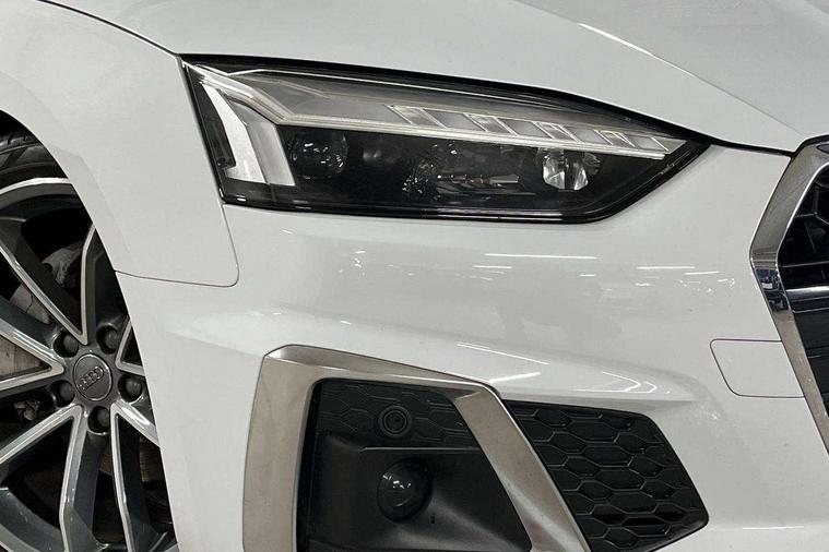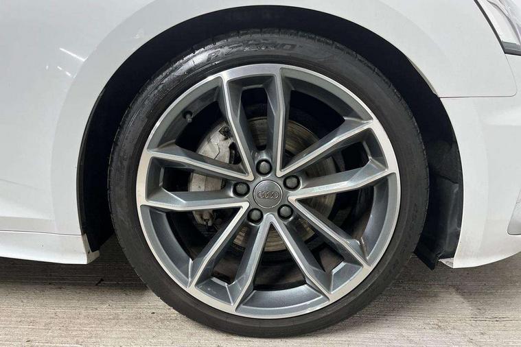 Audi connect safety and service (e-call), Audi drive select (Auto, Comfort, Dynamic, Efficiency and Individual), Audi parking system plus with front and rear sensors, Audi phone box with wireless charging, Audi smartphone interface, Audi virtual cockpit - 12.3" full colour digital instrument cluster, vehicle/engine speed, Radio/media information+Driver assistance systems, Automatic start-stop system with coasting functionality and efficiency programme, Bluetooth interface, Electric boot lid release, Electro-mechanical power steering, Email, calendar and text messages displayed via MMI, MMI nav+ with MMI touch - 10.1" high resolution MMI display, touch sensitive, 3D map, route/country info, dynamic route guide, personal route assist, Rear view camera, Service interval indicator, Voice control system, Sports suspension lowered by 23mm, 8 passive loudspeakers, CD player, DAB digital radio reception, Two additional USB ports for rear passenger in rear centre console, Two SDXC card slots, Audi matrix LED headlights with LED rear lights + dynamic front and rear indicators, Auto dimming rear view mirror, Body colour bumpers, Body colour door handles, Body colour front spoiler lip, Body colour side sill trim, Body coloured door mirrors, Electric adjustable heated door mirrors, Electric folding door mirrors, Electric front windows, Front fog lights, Honeycomb structure radiator grille in grained matt black, Matt aluminium silver tailpipe trim, Rain and light sensors, S line badges on front wings, S line front and rear bumpers with side skirts, S Line rear diffuser in matt titanium black with trim strip in matt aluminium silver, Side air inlets in grained matt black with matt aluminium silver inlay, Towbar preparation, Windscreen with acoustic glazing, 4 way electric lumbar support for driver and front passenger, 50/50 split folding 2 seater rear bench seat, Adjustable steering column, Black cloth headlining, Black perforated leather gearknob, Contrast stitching on seats, steering wheel and gear lever gaiter, Deluxe 3 zone electronic climate control, Front centre armrest, Front head restraints, Front/rear floor mats, Heated front seats, Illuminated door sill trim with S logo, ISOFIX child seat mounting and top tether, Luggage compartment mat, Manual seat adjustment, Rear headrests, Stainless steel pedals, Sunvisors with vanity mirrors, LED interior light pack - A5/RS5, 6 airbags - Driver, front passenger, curtain and side airbags, Electromechanical parking brake, Electronic Stabilisation Control (ESC) including ABS, ASR and EDL, Front passenger airbag deactivation, Height adjustable front seatbelts, Hill hold assist, Multi collision brake assist, Pop-up bonnet for pedestrian protection, Seatbelt monitoring, Tyre pressure warning, Variable restraint system, Warning triangle and first aid kit, Anti theft alarm system, Anti theft wheel bolts, Immobiliser, Keyless Go, Remote central locking, Matt brushed aluminium inlays, Tool kit, Tyre repair kit,