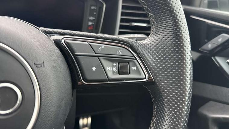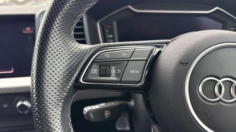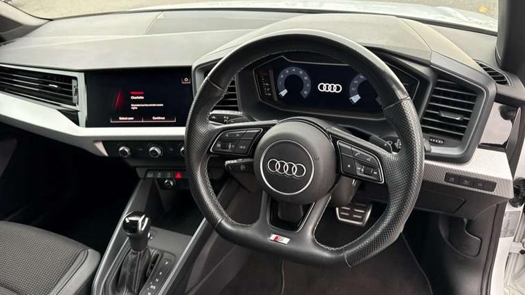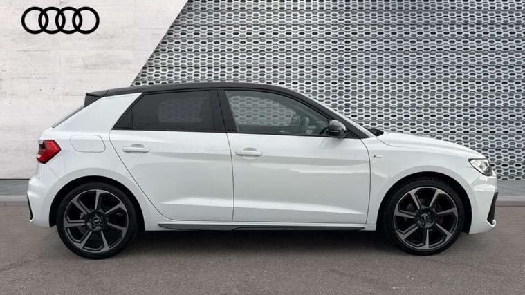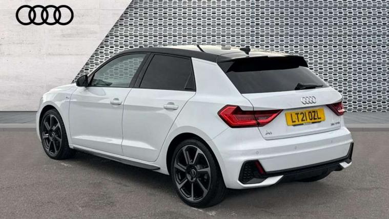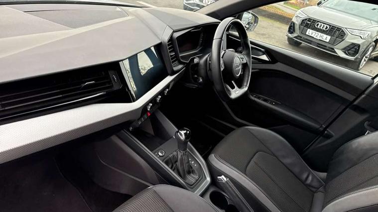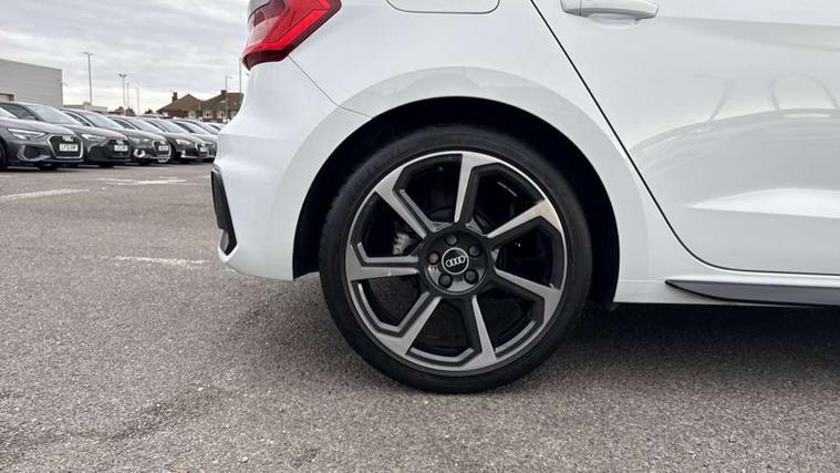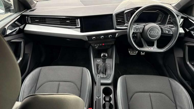 10.25" Digital instrument cluster display classis style instrument dials + speed, odometer, time, outside temperature, telephone menu + fuel level warning, Audi connect safety emergency and service including E-call, Audi drive select - power steering assistance + engine + gear shift 3 preset modes (auto, dynamic, efficiency and an Individual mode), Audi smartphone interface with connect compatible smartphone via USB directly MMI display + Nav, music, third party apps controlled via MMI controller, Automatic start/stop system, Bluetooth interface, Cruise control, Driver's information system, Electromechanical power steering, Lane departure warning system, Service interval indicator, Speed limiter, Voice control system, Washer fluid level indicator, Sports suspension, 1 x SDXC card reader, 2 x USB type C connection points, DAB Digital radio, MMI radio plus with 8.8" colour MMI display screen and MMI touch, Auto dimming rear view mirror, Black door mirrors, Black side skirts, Door sills with aluminium inlays and S Line logo, Electric front and rear windows, Electrically adjustable, heated, folding door mirrors with integrated LED side indicator, Front side air inlets in grained matt black and C frame in titanium black, Heat insulating glass windscreen and side windows, Heated rear windscreen, LED headlights with LED rear lights + dynamic rear indicators + headlight adjustment and high beam, turning light + LED daytime running lights, Radiator protective grille frame in matt aluminium silver, Rain and light sensors, Rear fog lights, Rear wiper, Side front spoiler lips in grained matt black, 12V socket in centre console with two cup holders, 3 rear seats with headrests, 3 spoke flat bottomed multi-function plus leather steering wheel with S badging, grips in preforated leather, contrast stitching and paddle shift, 40:60 Split folding rear seat or folded fully, Black cloth headlining, Driver and passenger seat with manual height adjust with forward and backwards adjustment, Front and rear black floor mats with contrast stitching in fine silver, Front head restraints, Height and reach adjustable steering wheel, ISOFIX child seat mounting for front passenger and outer rear seats including top tether attachment point of outer rear seats, Leather gear knob with aluminium trim, Luggage compartment light with front and rear reading lights, Manually adjustable lumbar support in front seats, Stainless steel pedals, Black styling pack - A1 Sportback Black Edition, LED interior lighting pack - A1, Luggage compartment pack - A1, 3x3 point rear seatbelts, Audi pre-sense front with pedestrain and cyclist recognition, Brake assist function, Driver and front passenger airbag with front side and head airbags, Electronic Stability Control including ABS, EBD, ASR and EDL, Front and rear seatbelt reminder, Front passenger airbag deactivation switch, Hill hold assist, Seatbelt height adjustment for front seats, Seatbelt monitoring, Tyre pressure warning light, Warning triangle and first aid kit, Anti theft alarm, Anti theft wheel bolts and loose wheel warning, Immobiliser, Remote central locking with 2 foldaway keys, Aluminium trim for control switches, air vents and digital instrument cluster, Silver grey inlays polygon structure in diamond paint finish, Structured grey accent areas including air vents, door handle recesses and centre console in quartz paint finish, 18" 7 spoke rotor design alloy wheels in gloss anthracite black, diamond cut finish,